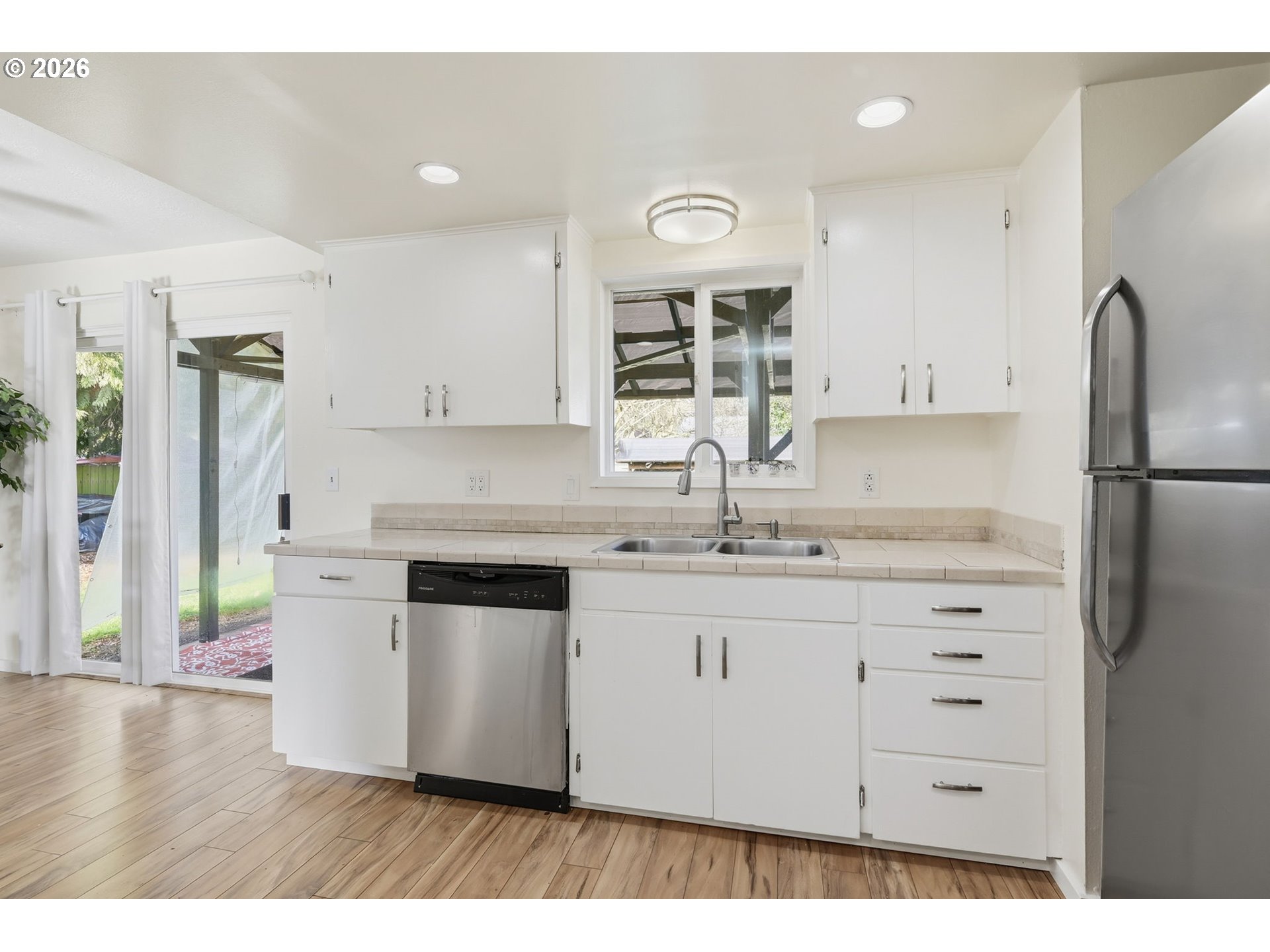 Nicely updated 3-bedroom, 2-bath ranch-style home in the desirable North Santa Clara area, tucked into a quiet cul-de-sac. This move-in-ready home features a primary ensuite, vinyl windows and slider, fresh interior paint, updated vinyl flooring, and stainless-steel appliances with gas range. Cozy up to the wood-burning fireplace and enjoy year-round comfort with a ductless heat pump in the living room and primary suite. New roof installed in 2019. Step outside to a large, covered deck overlooking a spacious, fenced backyard perfect for entertaining or relaxing. Low property taxes and a convenient location close to schools, parks, shopping, restaurants, and the bus line make this home a great find.