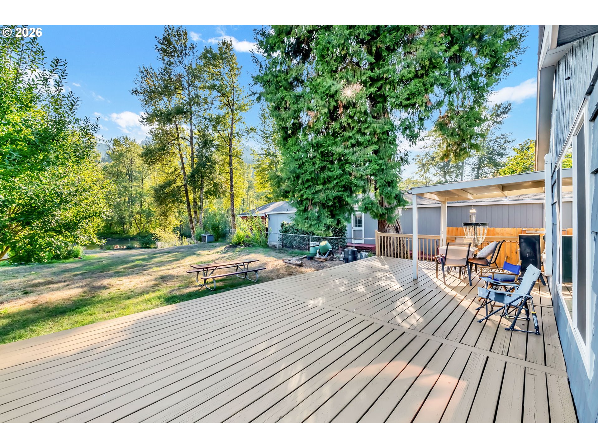 Rare opportunity to own riverfront property on the Willamette River with direct access and strong appeal for recreation or vacation rental use. Located in Oakridge, known for its extensive network of world class mountain biking trails and sunny climate, and just 30 minutes from Willamette Pass Ski Area, this home is ideally positioned for year round adventure. The home features a comfortable, functional layout with numerous updates already completed, including roof, electrical panel, heat pumps, wood stove, windows, and flooring. The outdoor space is thoughtfully designed with established herb and vegetable gardens, raised beds, blueberries, and fruit trees, while a spacious deck overlooks the river and surrounding landscape, creating a perfect setting to relax or entertain. Additional features include ample driveway parking, a one car garage, and a versatile workshop. With its prime location and strong recreational appeal, this property also offers excellent potential as a vacation rental or Airbnb, buyer to perform due diligence.