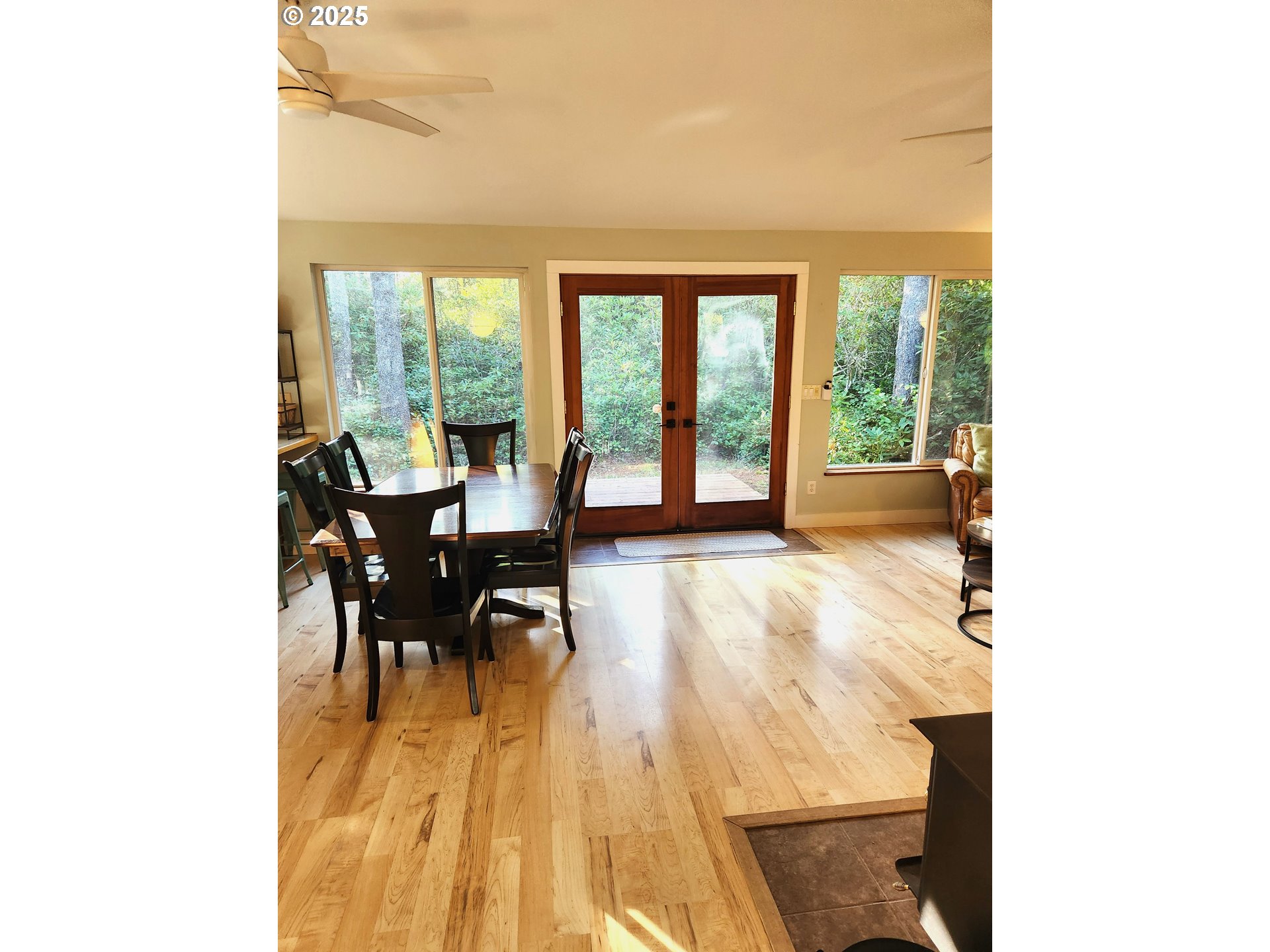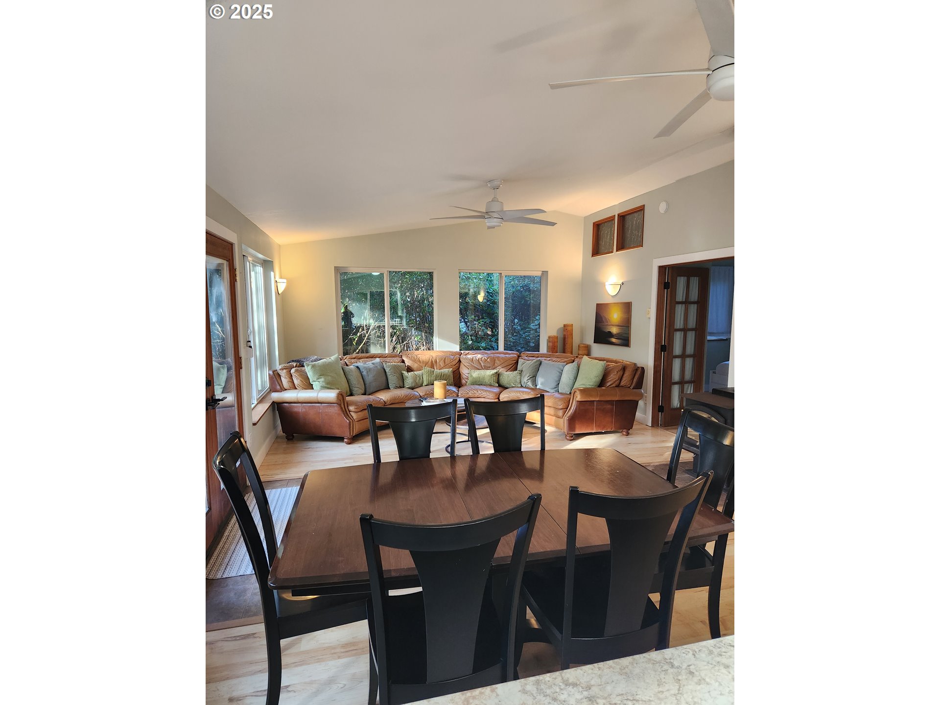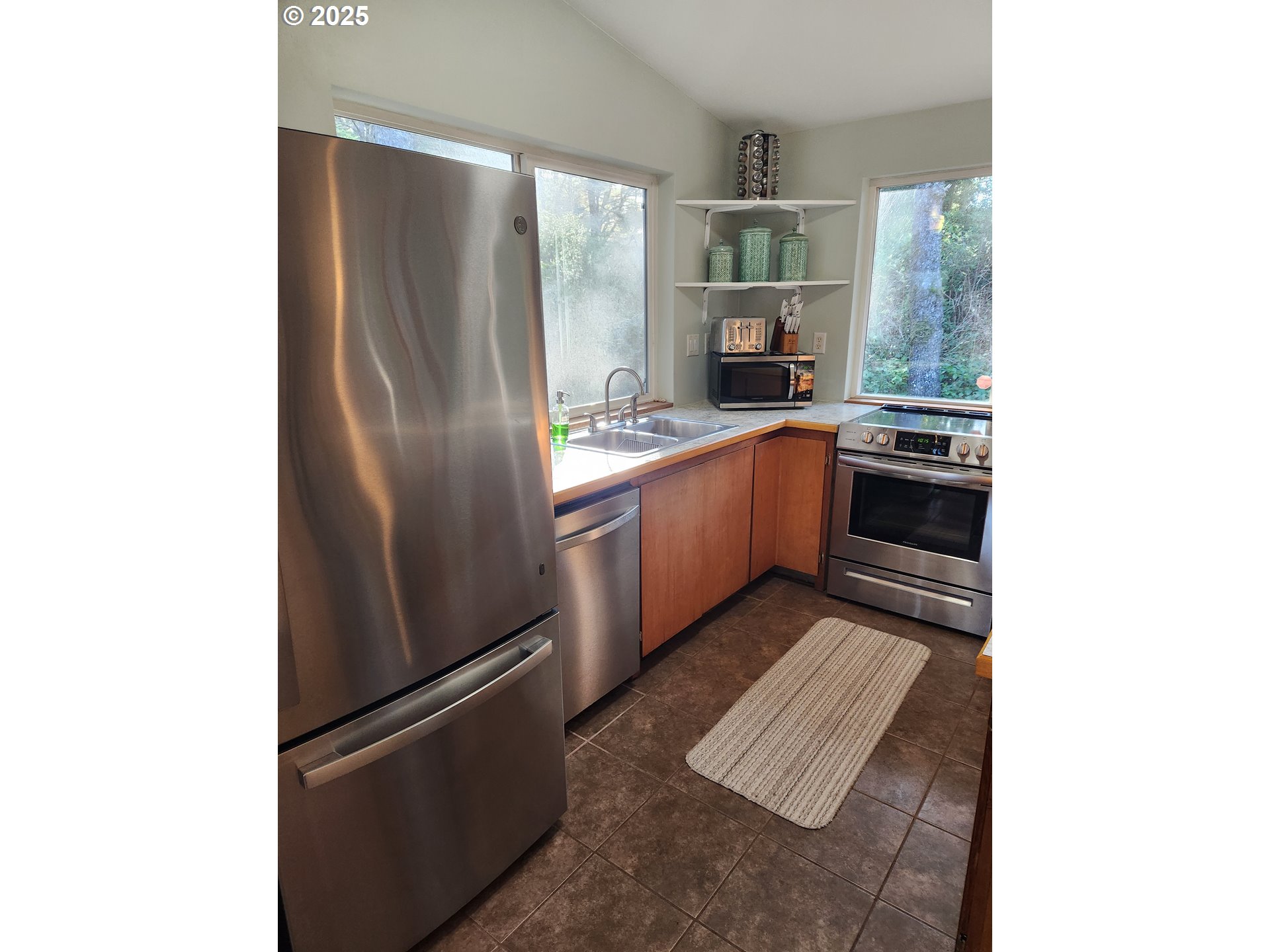 Heceta Beach Area! Furnished & MOVE IN ready. "Nicely secluded and Comfortable" describes this special property on .35 acre lot. You Walk inside to a Open Concept Kitchen, dining area, Roomy living room with large windows and vaulted ceilings throughout, bringing in all the natural, bright light and natural beauty of the wooded views. There is A Quadra-Fire woodstove for warmth on the chilly nights. The kitchen has ample cupboards, Stainless steel appliances, newer countertops with Eat Area and tile floor. French doors lead into each of the 2 bedrooms. the 1 bathroom has a New stackable washer/dryer. Laminate Flooring throughout. Off the living room leads out to a deck for BBQs and listening to the sound of the ocean. The backyard has the original studio cottage, endless possibilities for its use. Enjoy as a Vacation home, rental or full-time living. It Has been used by Furnish Finders, rentals for traveling nurses. Not only does the Natural greenery surround this property for privacy, You are close to the North Jetty for beach access.