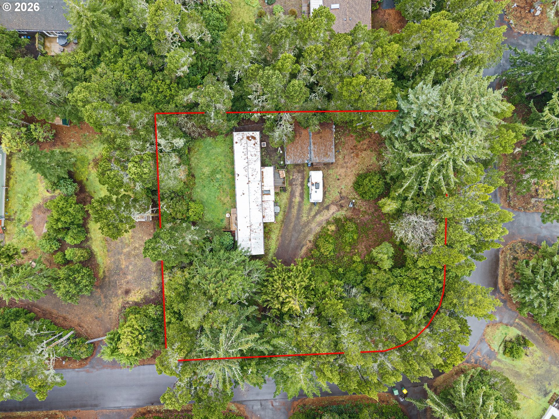 Looking for the perfect beach getaway? This private retreat is located less than two miles from Heceta Beach and less than a mile from the North Jetty, set on nearly half an acre of peaceful, secluded land. Inside, the home features newer laminate flooring throughout the kitchen, dining, and living areas, creating a bright and welcoming space. The spacious primary suite offers two large closets and a full bathroom complete with a garden tub and separate shower. A second bedroom and full guest bathroom are conveniently located on the opposite end of the home, providing ideal separation and privacy. Additional highlights include forced-air heating, double-pane vinyl windows, a detached sunroom off the back porch, newer siding and exterior paint, and an updated electrical panel. The property also boasts a large 24’ x 24’ detached garage with 220 power—perfect for projects or storage. With ample space for boats, RVs, and recreational toys, this very private homesite is ready for outdoor enthusiasts. Sellers have added a fenced area for dogs, and the septic tank was recently pumped in 2025. Low property taxes and NO HOA FEES make this home an exceptional coastal property.