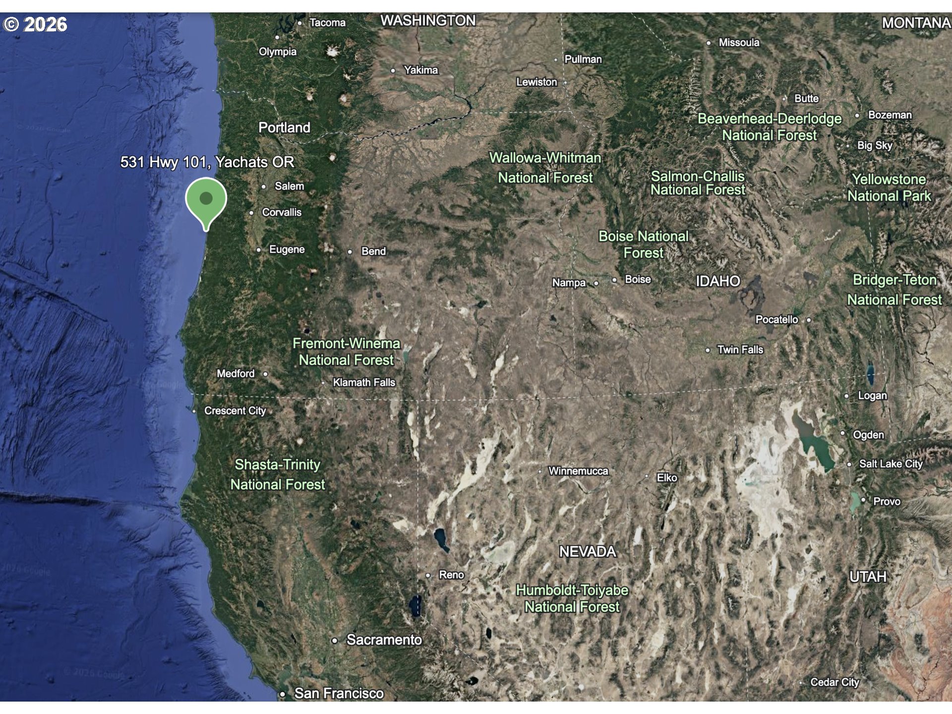 Set along one of the most dramatic stretches of the Oregon Coast, this extraordinary 2.35-acre oceanfront property is located just eight miles south of Yachats, affectionately known as the Gem of the Oregon Coast. Perched atop an approximately 80-foot ocean bluff, the property commands sweeping, unobstructed views of the Pacific and features an impressive 423 feet of ocean frontage.The landscape is as captivating as the views, with seasonal streams, cascading waterfalls, and a hiking trail that leads directly down to the beach, creating a rare blend of adventure, serenity, and natural beauty. From sunrise to sunset, the rhythm of the waves and ever-changing coastal light provide a front-row seat to one of the most mesmerizing environments on the Oregon Coast.This stretch of coastline is celebrated for its rugged cliffs, wildlife sightings, tide pooling, and unforgettable sunsets. Just minutes away, Cape Perpetua Scenic Area offers iconic viewpoints, old-growth forests, and miles of scenic trails. The nearby town of Yachats adds to the appeal with its vibrant arts scene, locally owned shops, and renowned coastal dining.Whether envisioned as a private coastal retreat or a legacy investment, this property presents a rare opportunity to own a significant piece of Oregon’s pristine shoreline. A setting this dramatic, private, and irreplaceable comes along only once in a generation. Experience the power, beauty, and tranquility of true Pacific Ocean living
