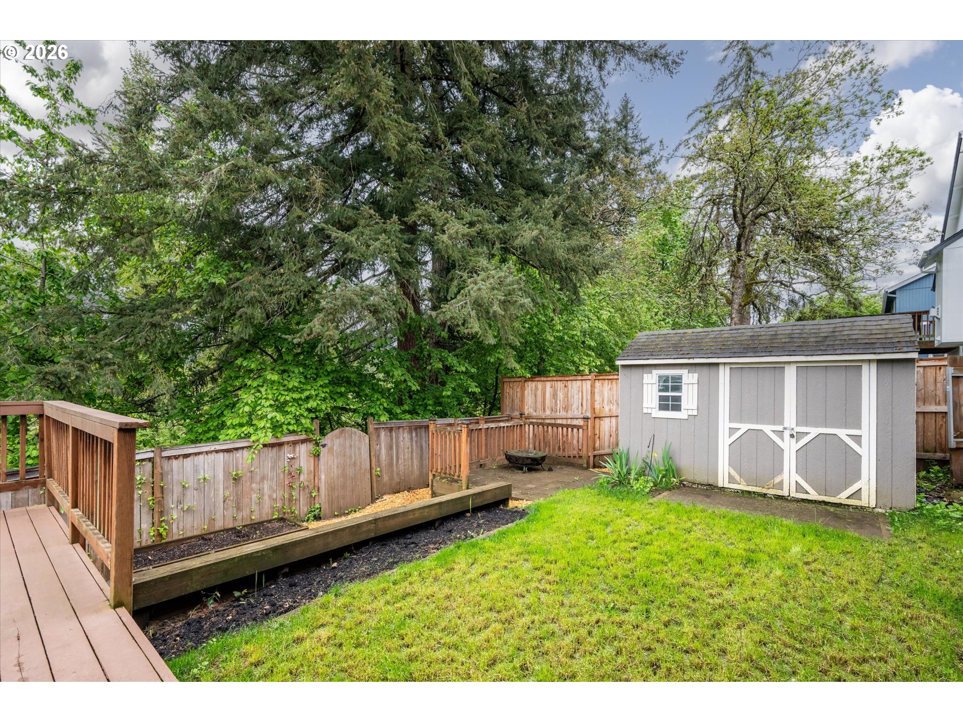 Deck, Fenced, RaisedBeds, ToolShed, Yard
