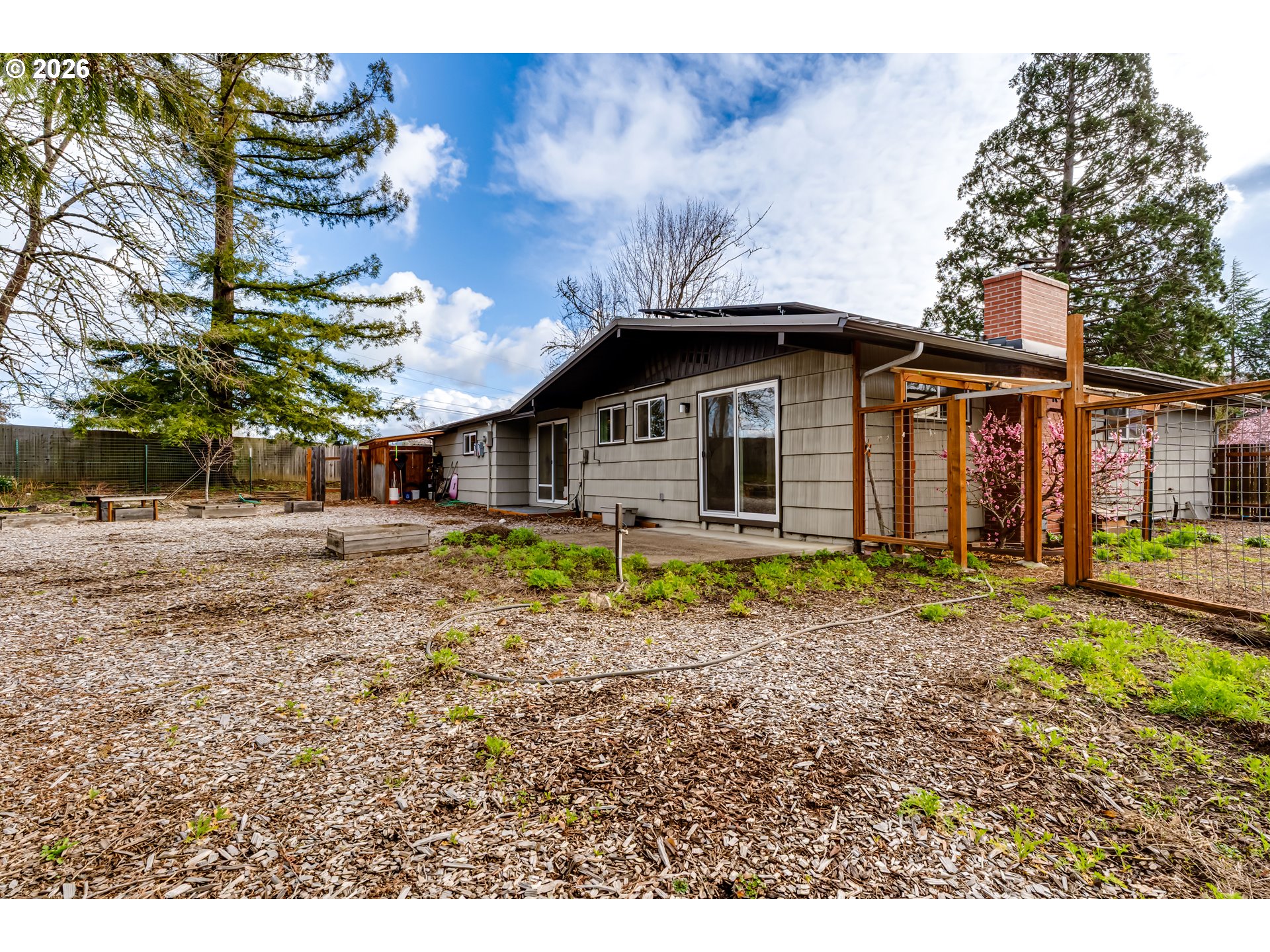 What a terrific and interesting property! It is a sweet one-level home with character and style, located on a sunny, .3 acre cul de sac lot. The improvements by the current owner are impressive. Quality materials were used, prioritizing energy efficiency and long-term sustainability. Hardwood floors, metal roof, solar panel with battery backup, exterior walls changed out to 2x6 to add insulation, pellet stove, ethernet throughout, repointed chimney, drainage, rock wool insulation, and all new interior doors are just a few of the projects (complete list attached). There are more projects to do. If you’re creative or skilled, this will be a very appealing opportunity. The interior has an open floor plan, with terrific, natural light and a Spencer Butte view from the front. There’s a 10x15 bonus room/breezeway and a spacious two car garage. The yard is ideal for gardening and outdoor fun. It includes raised beds, a chicken coop, and fruit trees. Most appealing is the setting and proximity to Tugman Park, bike path, bus service, and U of O, LCC, Willamette shopping & South Eugene restaurants. Given the quality, features, location, and opportunity to add your own touches, this is really a special property and a must see!