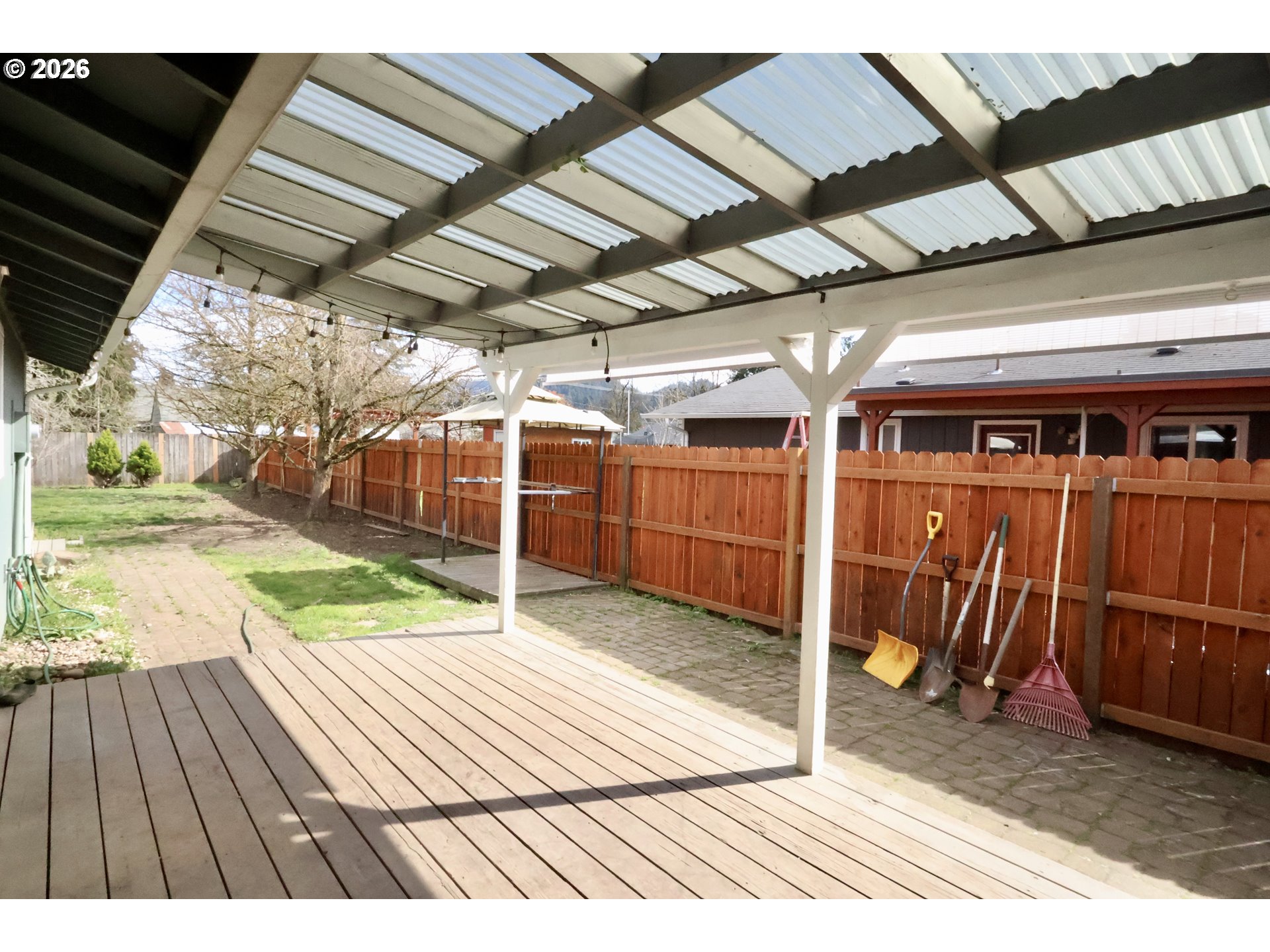 CoveredDeck, Deck, Fenced, RaisedBeds, Yard