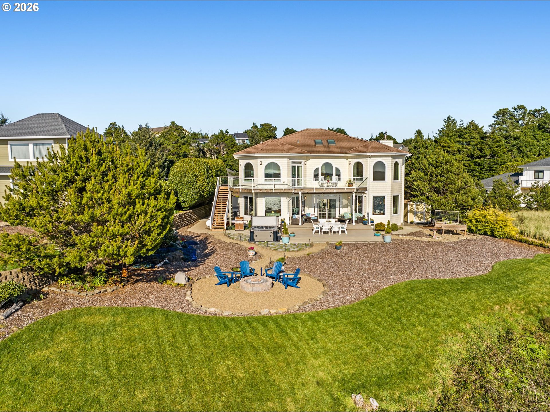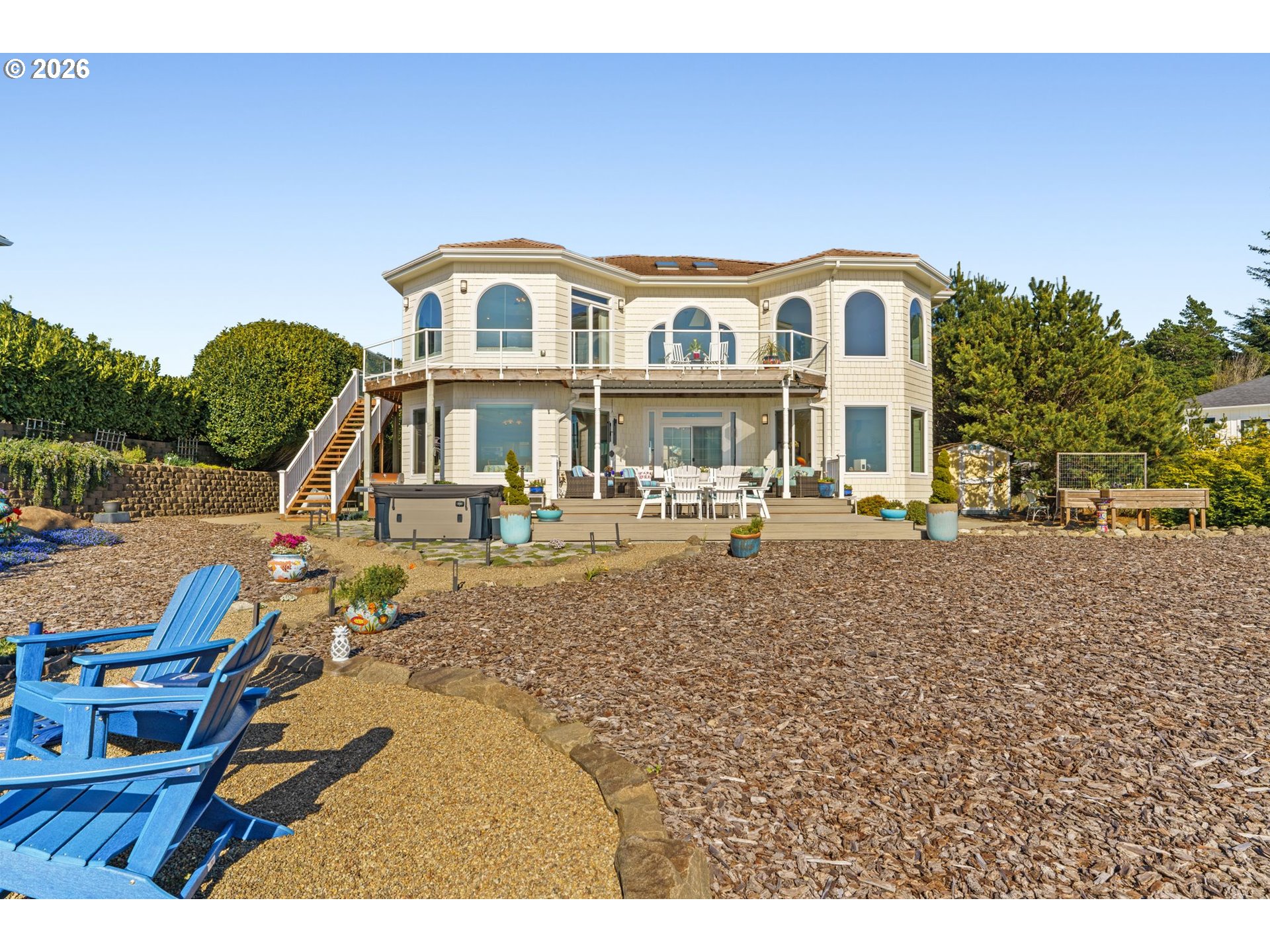 Welcome to the Cannery Point Home. Located on the south edge of historic cannery point, this spacious home offers sweeping views of the Siuslaw River, South Jetty and Ocean beyond. Situated to maximize the westward view and maintain privacy from neighbors, one can be mesmerized by the ever-changing landscape with abundant aquatic and wildlife. The soaring great room is bathed in light and focuses your attention on the river beyond. The sitting area in the primary suite overlooks the river and ocean - the perfect spot for morning coffee - while the expansive primary bath boasts heated floors. The kitchen and eating areas are also designed to highlight the amazing view. Each room is spacious and well appointment and there have been many updates. Smart features are present throughout the property controlled by voice or the touch of a finger. One can step outside via either the lower or upper decks and into the easy-to-maintain yard. A charming potting shed, garden boxes and herb garden will keep green-thumbs busy. The gas-lit fire pit is a wonderful spot to spend an evening with friends and family. For an evening alone, slip into the hot tub gazing at the stars and watching the water slip by. The cul-de-sac location is private and a custom-made dolphin gate screens a boat/RV parking spot. Shelter Cove is a gated community set at the edge of town and minutes away from Sandpines Golf Links known for its unique coastal experience, walking beach access and local tennis/pickleball courts. Florence is set on the Central Oregon Coast where endless adventures await. ATV or horseback on the vast Oregon Dunes, visit the famous Heceta Head lighthouse or the sea lion caves, go whale watching, fish or crab from the nearby jetty, hike the verdant Hobbit trail, bike or enjoy some of the freshest seafood you'll find. Just a scenic drive away to Oregon's second largest city, Oregon Ducks Division 1 football and the convenient regional airport. Waterfront living at its best!