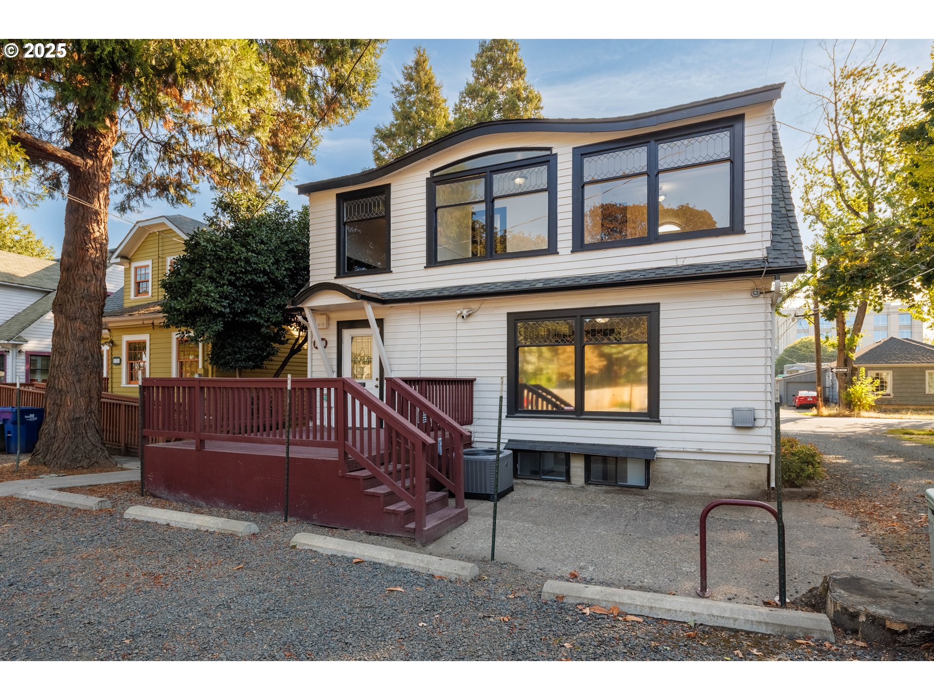 Light-filled restored craftsman located in the downtown district on quiet street, between 6th and 7th. Keeping the charm of this 1925 craftsman--while adding modern conveniences--these spaces have been thoughtfully and comprehensively thought out, providing tenant amenities while offering great business visibility. This well-maintained sophisticated building includes 2 Brand New Bathrooms, 2025 forced air Furnace and air conditioning heat pump, re-finished hardwood floors, newer outside deck and 5 hard-wired security cameras. Updated electrical and plumbing, new interior and exterior paint & gutters finish out the completely renovated property. The oversized rooms offer flexibility to lend to your particular use.The main level features large reception area, 2 private offices, one featuring a cozy fireplace and private break room/kitchen. Upstairs you will find 3 private offices/work spaces. Downstairs features a private workspace room that includes a private ensuite (attached) bathroom. Additionally, downstairs you will find an abundant separate storage space for even more workspace. Utility sink and washer/dryer hook ups finish out the space. This property has functioned for many commercial uses, including most recently as a Salon, Chiropractic and Wellness Center and attorney's office.The Property is zoned C-2 which broadly allows most commercial uses. Property has 4 on-site parking spots with potential to rent additional or purchase from building owner the adjacent 16,000 sq. ft. parking lot currently for sale. This building/office space is move-in ready. For disclosure purposes, owner has an active Oregon Real Estate license.