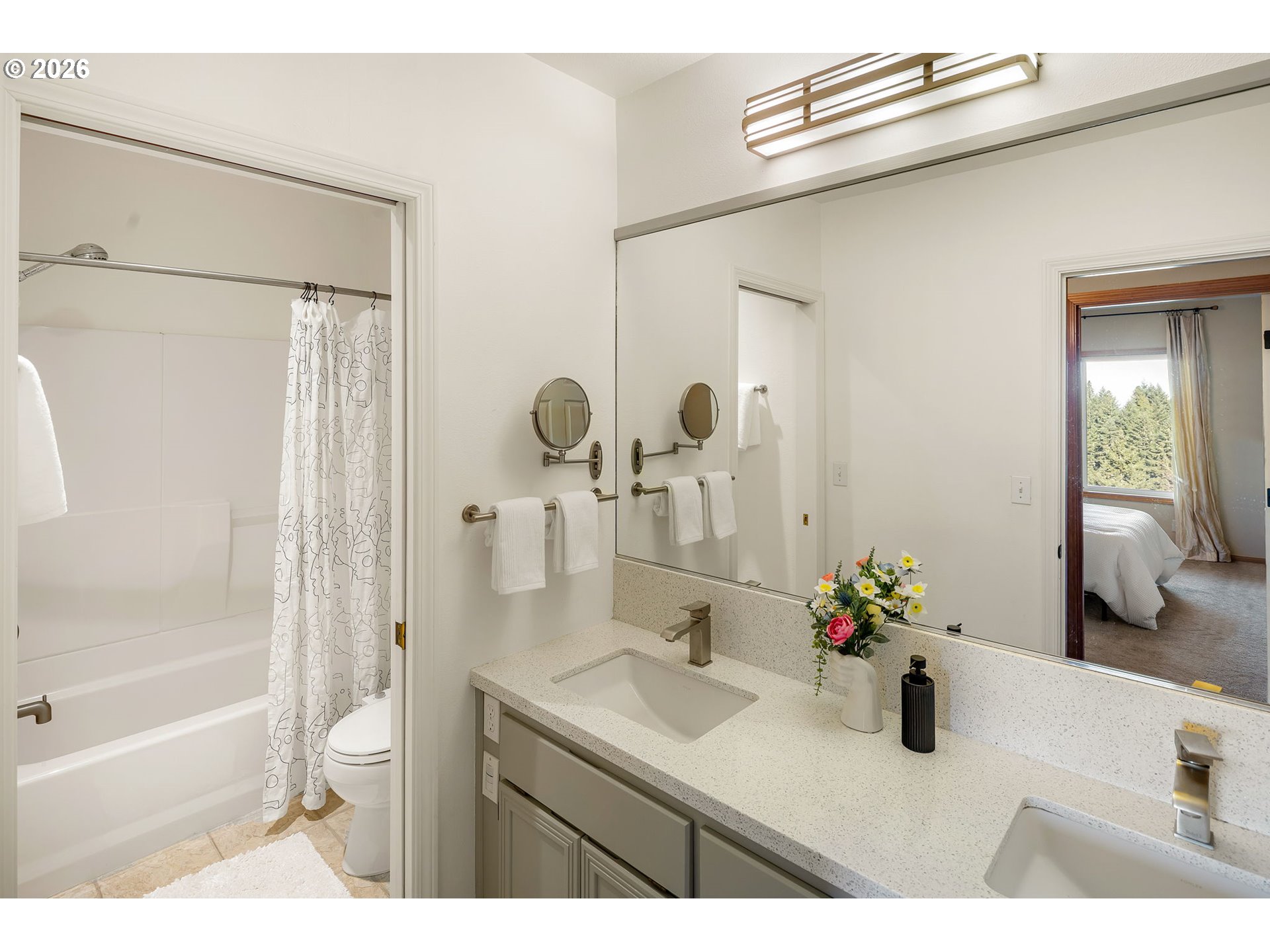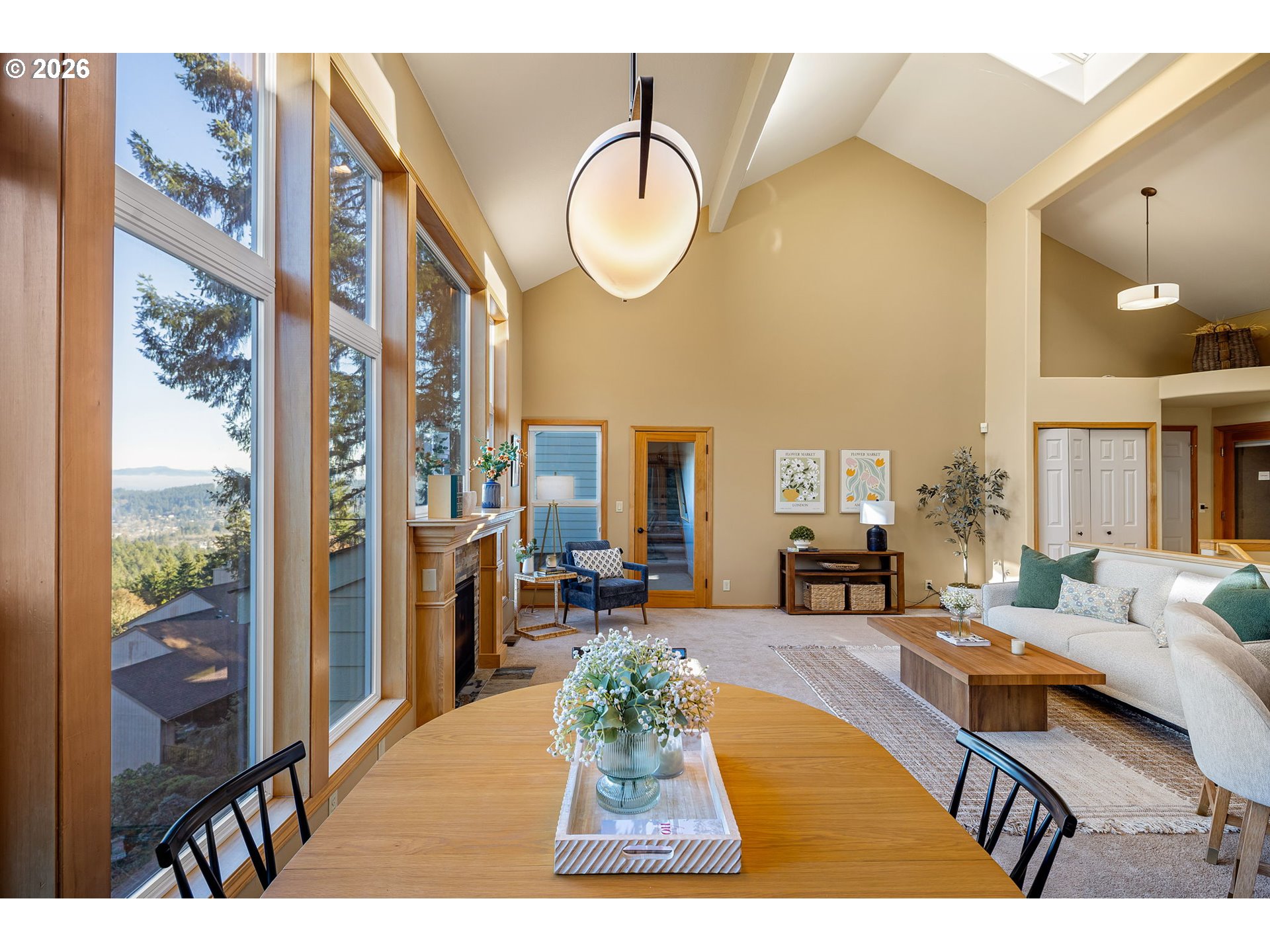 This beautifully cared-for home in Edgewood Hills has truly incredible panoramic views from every level. Vaulted ceilings, large north-facing windows, and three gas fireplaces give the home a warm, comfortable feel while still feeling special and elevated. All of the bedrooms are located on the lower level and are easily accessed by elevator. The primary suite feels like a private getaway, with its own deck, gas fireplace, walk-in closet, and a spa-like bathroom featuring a jetted tub, heated floors, and a step-in shower. Two additional bedrooms are just down the hall and share those same stunning views. You’ll wake up to sunrise and birdsong every morning. Upstairs, a large bonus room addition adds flexible space that works well for a home office, playroom, or guest area. The boutique HOA makes day-to-day life simple, covering exterior maintenance from the studs out, including deck maintenance, gutter cleaning, landscaping, driveway upkeep, cable TV, roofing, trash and recycling, and regular pest control. It’s ideal for lock-and-leave living. It’s hard to find another home in Eugene that offers this combination of views, ease, and thoughtful care.