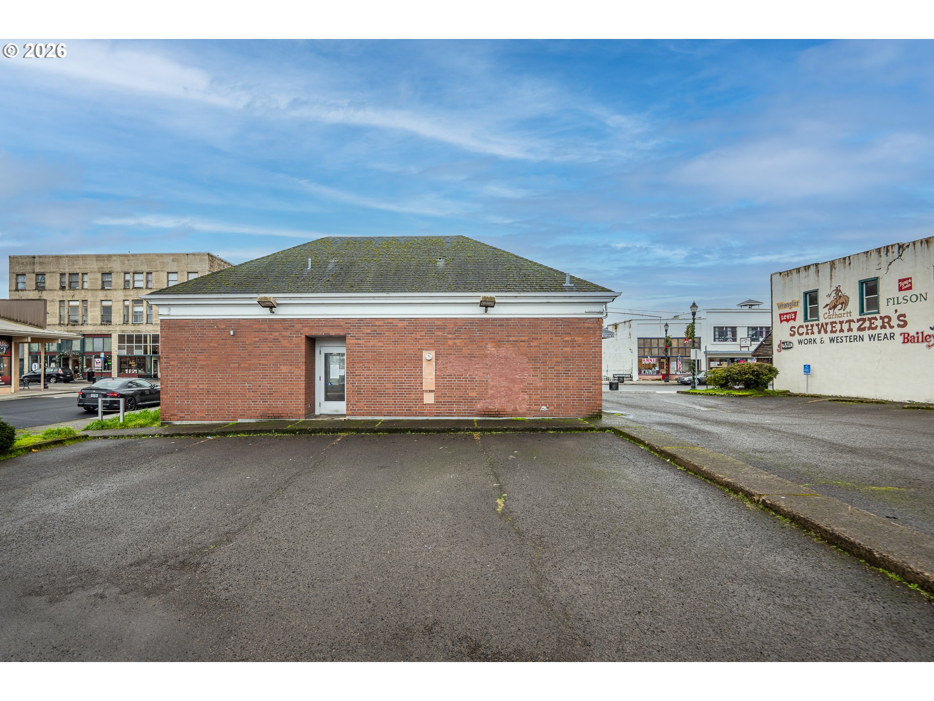 Distinctive 1,925 sq ft commercial property has pride of place in historic downtown Cottage Grove, Oregon. Formerly a Bank of America branch, this stand-alone building boasts classic brick-and-column architecture that exudes professionalism as well as attractive curb appeal—perfect for retail, office, financial services, or professional use. Key features include: Spacious open interior with existing teller stations and vault (ideal for secure operations). Back room equipped with cabinets & small sink—ideal for a break room, office, kitchenette, or storage. Ample on-site parking and excellent street frontage for maximum visibility. Prominent corner location with great signage opportunities. Former bank drive through window, currently non-operational. Positioned in the heart of Cottage Grove, which is known for its timeless charm, covered bridges, and easy access to I-5, this property offers unparalleled exposure in a growing & revitalizing area just south of Eugene. Don't miss this rare chance to establish or expand your business in a prime spot.