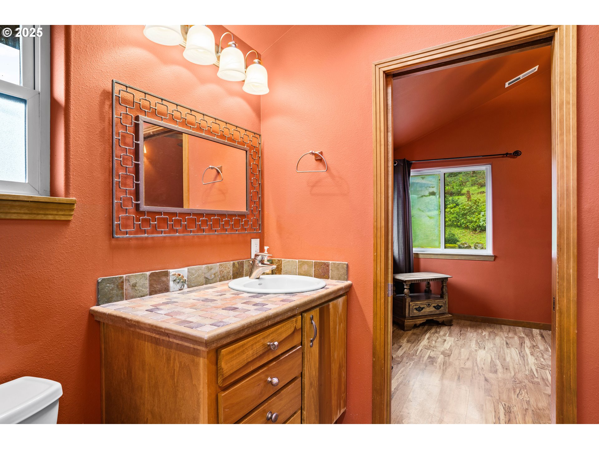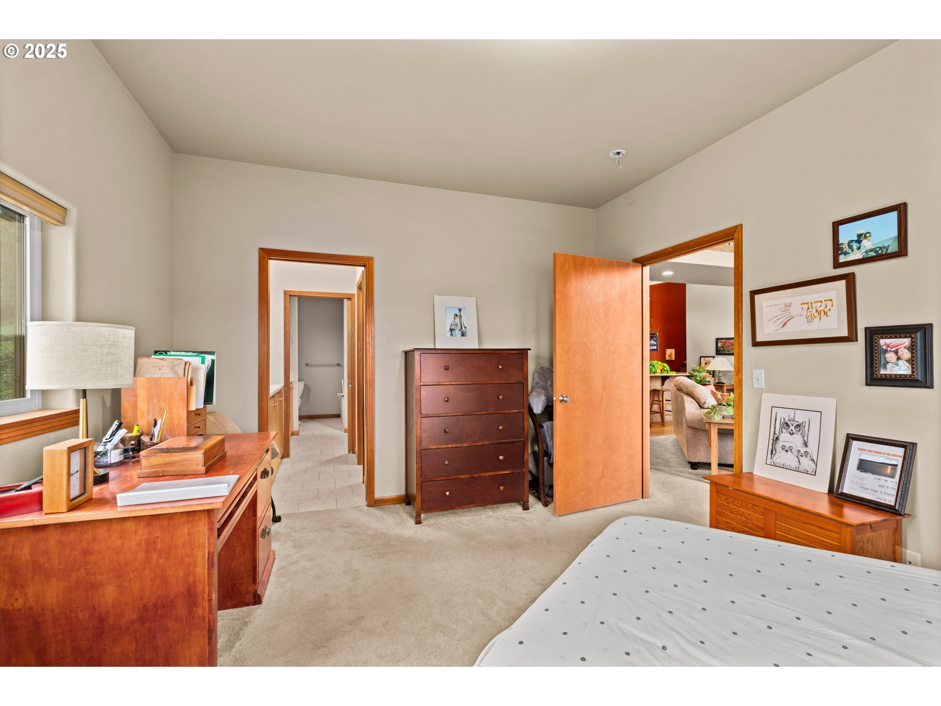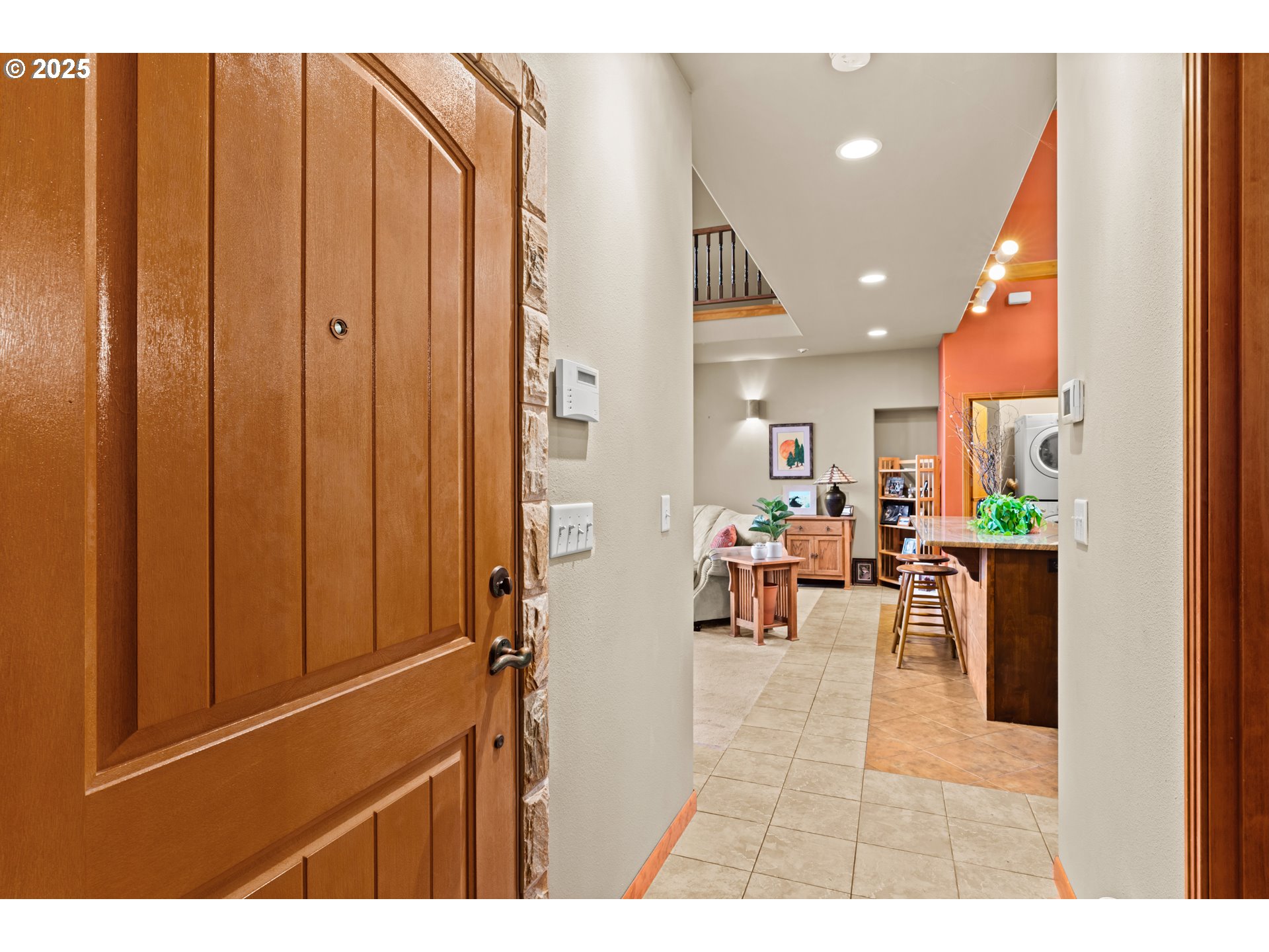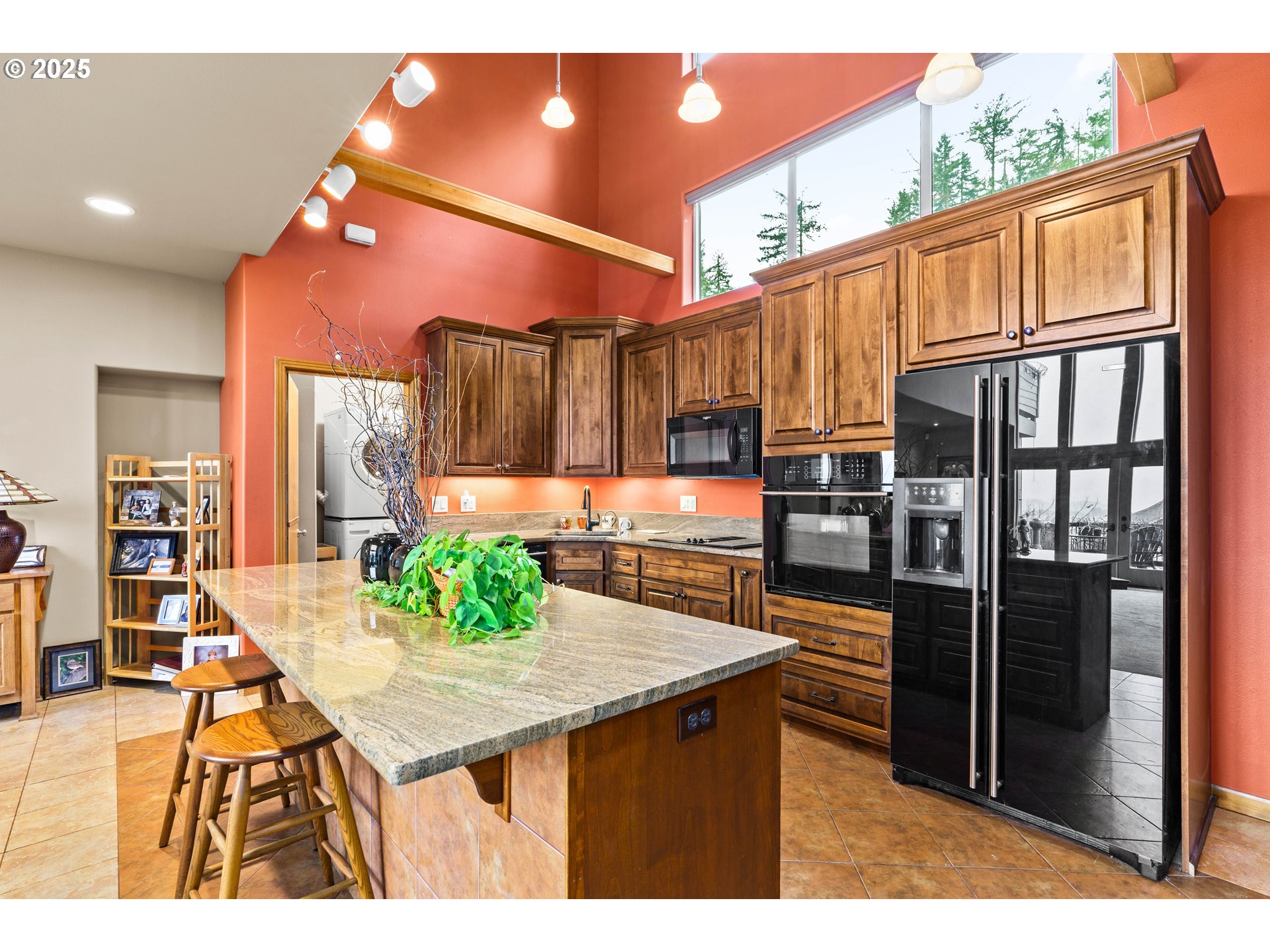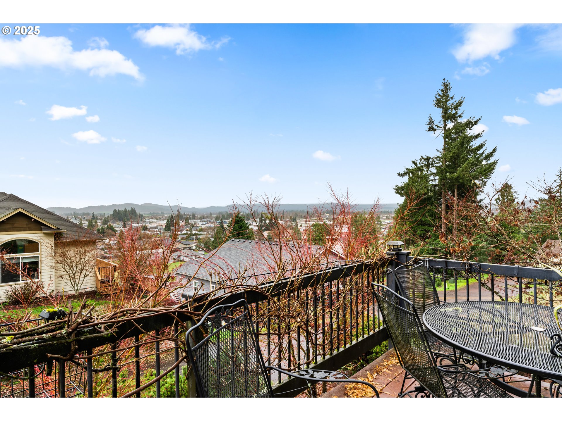 This custom built two story home is positioned above the valley with expansive views of the treetops and clear day views of the Three Sisters mountains. Vaulted ceilings and large windows flood the home with natural light and highlight the scenery from nearly every room.The kitchen is designed for both everyday living and entertaining, featuring granite countertops custom cabinets, a massive island ideal for cooking and gathering, and a natural gas fireplace nearby that adds warmth and comfort to the main living space. Upstairs, a unique sky bridge creates visual interest and connects the upper level, while a huge bonus room over the garage offers flexible living options.The office was thoughtfully designed to easily convert into a third bedroom if desired. Additional features include walk-in closets in both bedrooms, natural gas service and a whole home generator with an automatic transfer switch, providing peace of mind year round. A well planned home that blends custom design, flexibility, and unforgettable views.
