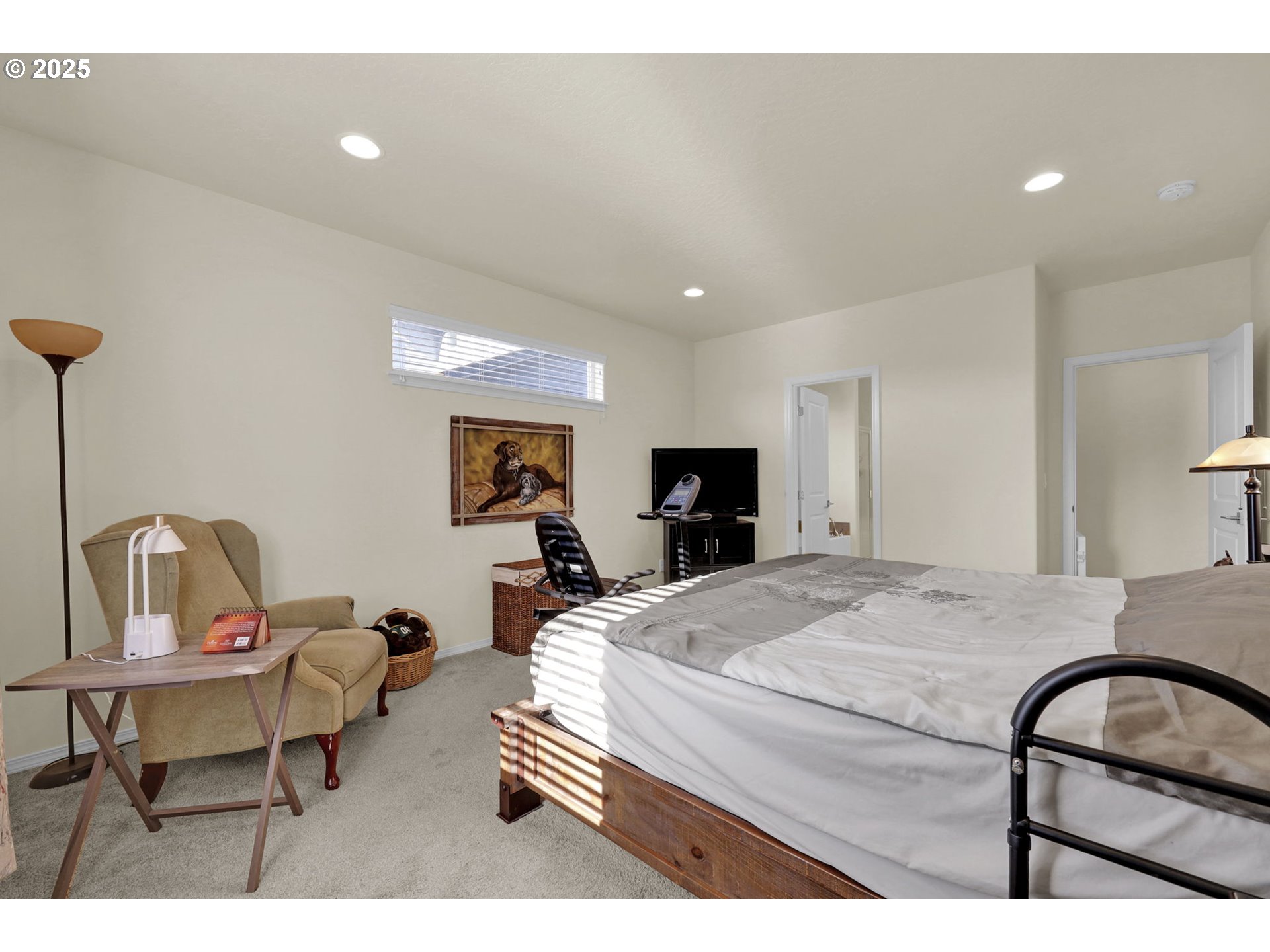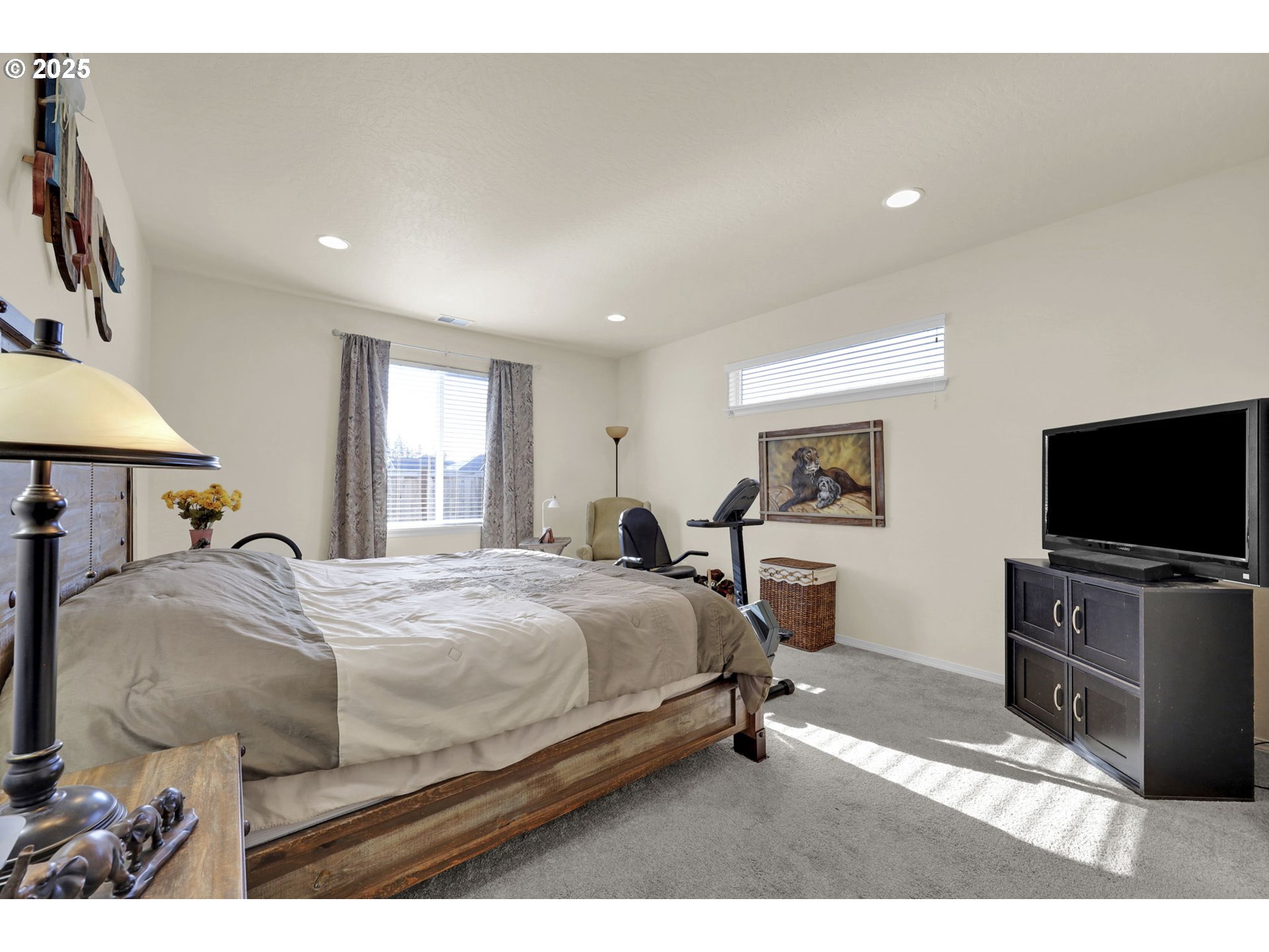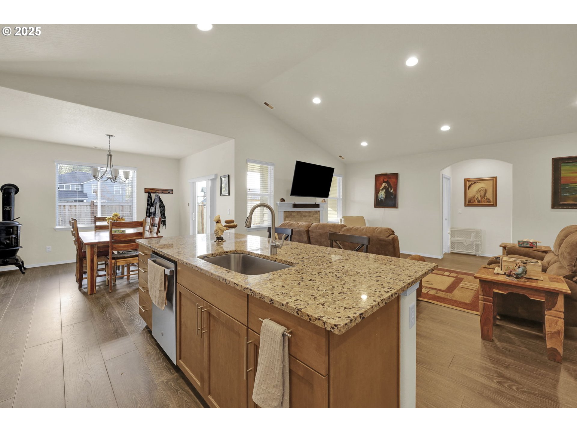 Built in 2022, this single-level 3 bed/2 bath home in the Woodland Ridge Community is the largest one-story home in the neighborhood! Upon arrival, you will notice a 12' x 20' gated concrete pad that can store an RV, boat, extra vehicles or toys. The hallway entry leads up to a spacious great room with laminate flooring, vaulted ceilings and a cozy gas-burning fireplace. The kitchen boasts stainless steel appliances, an island, walk-in pantry, and a 2' x 5' wine bar with built-in wine fridge. The dedicated dining nook flows right off the kitchen and has ample space for a large table. The primary bedroom has a spacious ensuite with double sinks, soaking tub, freestanding shower and walk-in closet. There are two additional guest bedrooms separated by a guest bathroom, and an added den that serves as the perfect flex space. Through the laundry room you'll find an extra deep 2-car garage, great for parking, working, storage and more. Step into the nicely landscaped backyard with a brand-new back deck and enjoy the sunshine of Oregon summers or keep dry from the rain under the covered patio and let the home's French drains do their work. Come see all this wonderful property has to offer, call now to schedule your tour today!