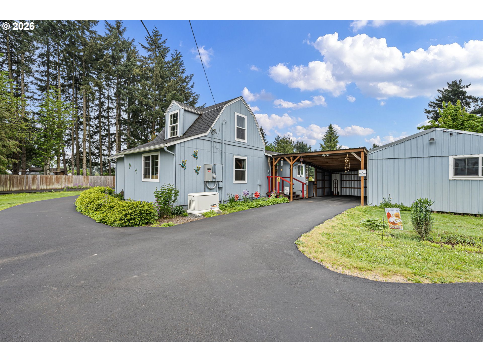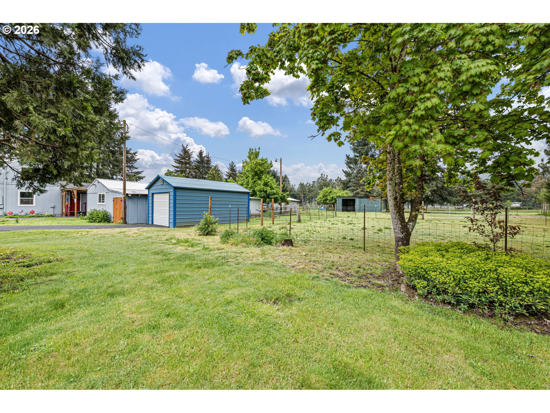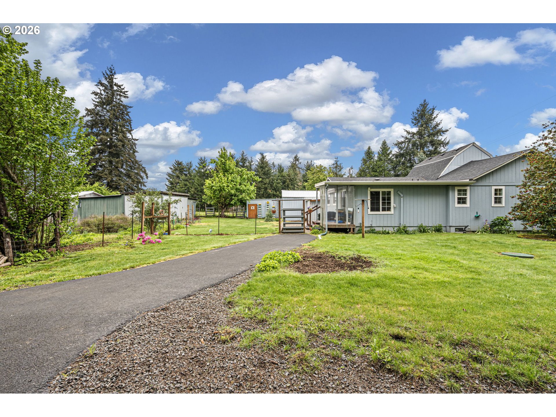This 3 bed, 2 bath farmhouse sits on nearly 5 fully fenced acres, ideal for farm animals, gardening, or small-scale farming. Property features multiple gated pastures, farm stalls, a fenced garden area, and several outbuildings for storage and use.Recent major improvements within the last 5 years include a new roof, entirely new well w/ UV filtration, new septic and drain field, fresh interior and exterior paint,vinyl windows throughout and ductless mini-split systems provide efficient heating and cooling throughout the home. A Generac generator (2025), connected to natural gas, offers reliable backup power for the entire house.Additional features include an asphalt driveway, RV/boat parking, covered carport, and a 20x12 metal structure for parking or storage. The kitchen showcases beautiful hickory cabinets, adding warmth and character to the home. 2 tax lots both zoned residential, possibility to build additional dwelling, buyers to do their own due diligence. Great opportunity for buyers seeking usable land, functional infrastructure, and the peaceful feel of country living with convenient access to nearby amenities.