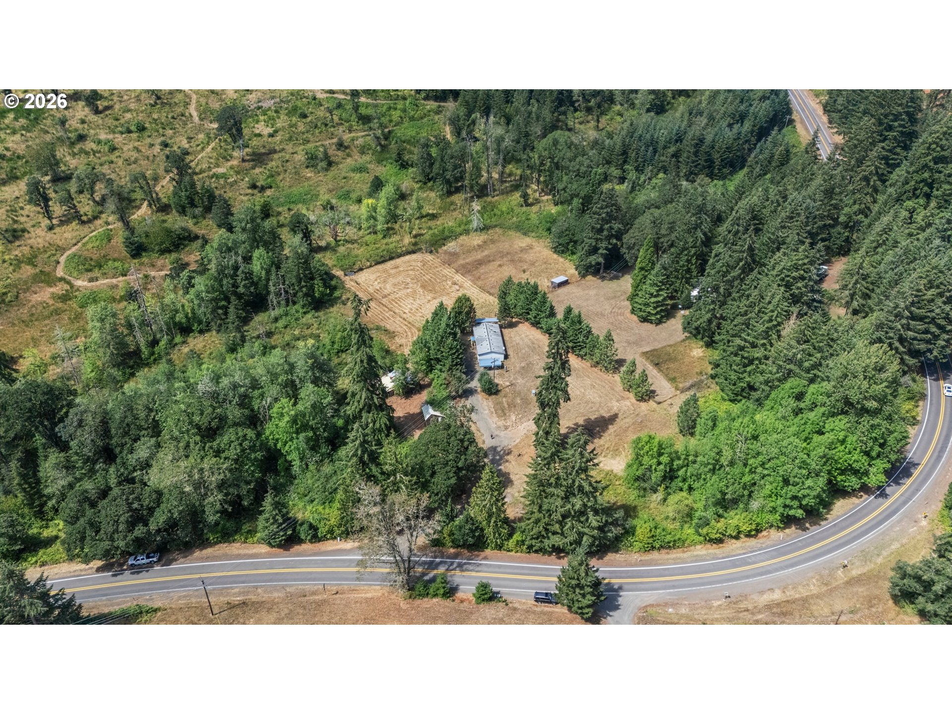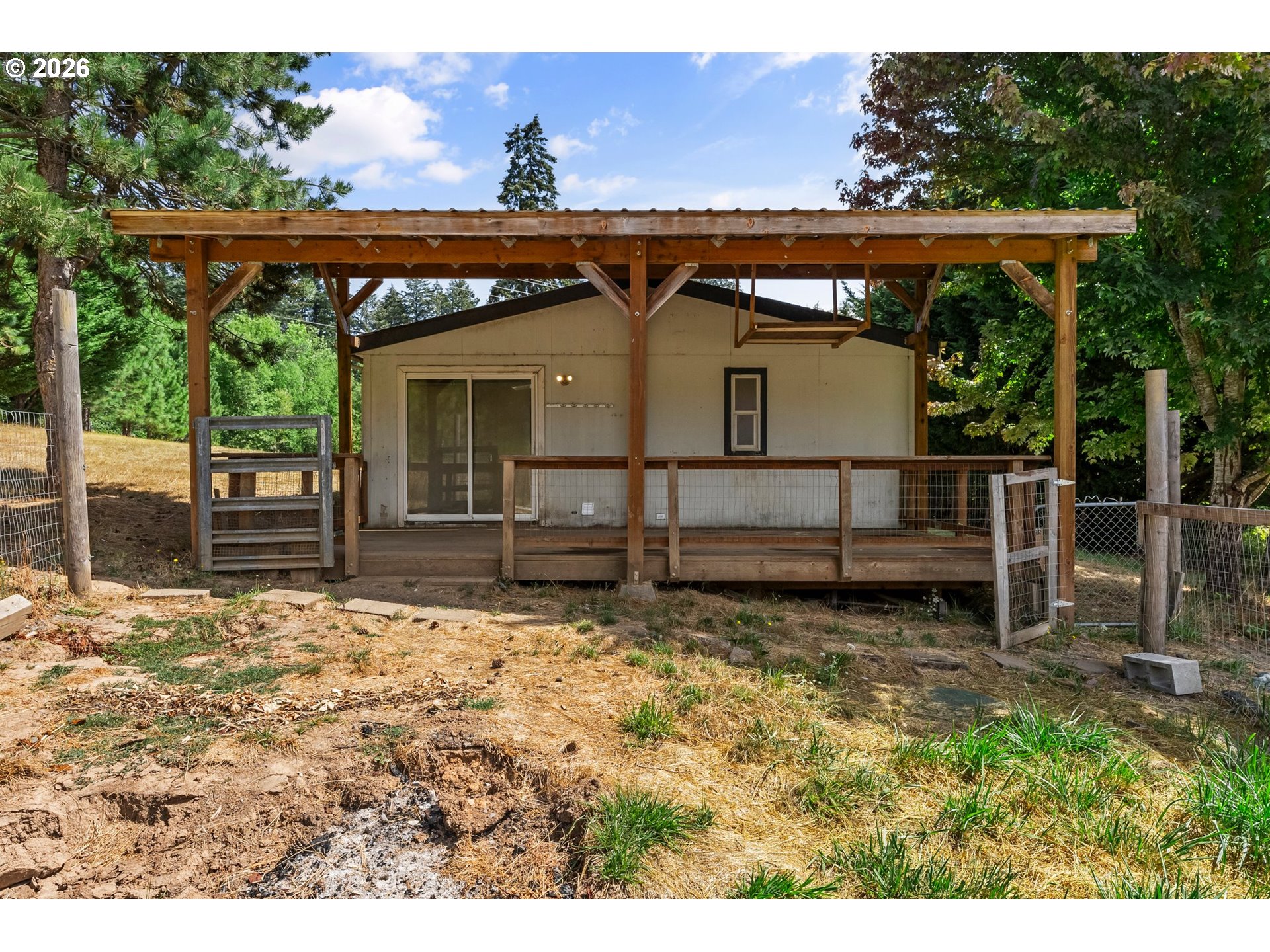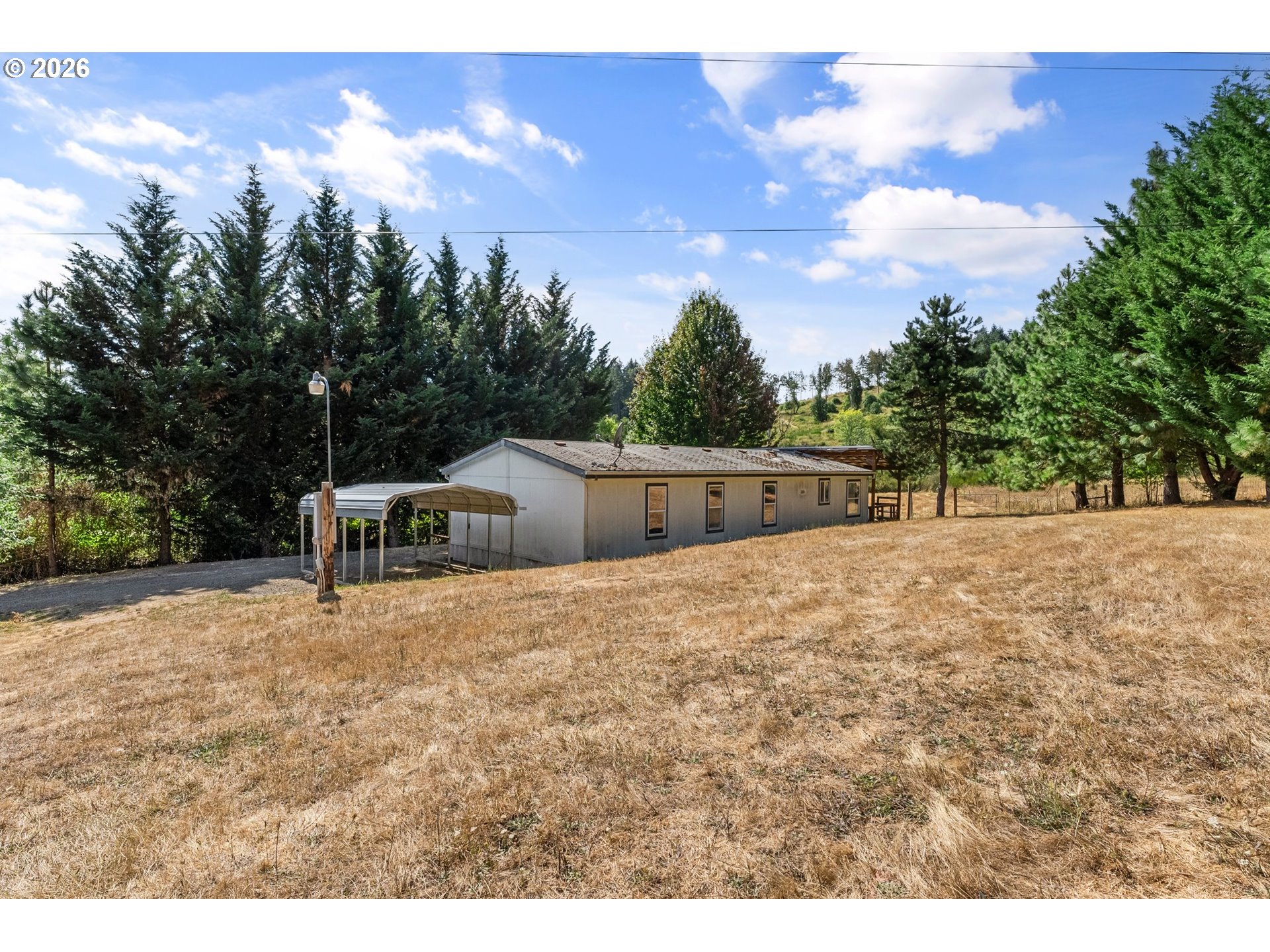 Experience the space, privacy, and potential of this 25+ acre country property in an ideal rural location. The twice-moved manufactured home offers 3+ bedrooms and 2 bathrooms, with fresh interior paint, brand new carpet (photos were taken prior to new carpet install), a spacious living area, two dining areas, and a functional indoor laundry room. Take in the surrounding scenery from the southwest-facing covered deck, perfect for relaxing evenings and enjoying the natural beauty of the land. Whether you’re looking to personalize the existing home or build something new, this property provides a versatile foundation to bring your vision to life. Designed with usability in mind, the property includes a covered carport, a fenced garden with raised beds, two tool sheds, and two small barns, one already equipped with water and electricity. A fenced pasture adds flexibility for animals, while a trail leads you to the top of the property, where sweeping views of the Cascade Range await. On clear days, you can even spot the Three Sisters in the distance. Conveniently situated just minutes from Veneta, approximately 12 minutes to Beltline Highway, and less than a quarter mile from nearby schools, this property offers the perfect balance of peaceful country living and accessibility.