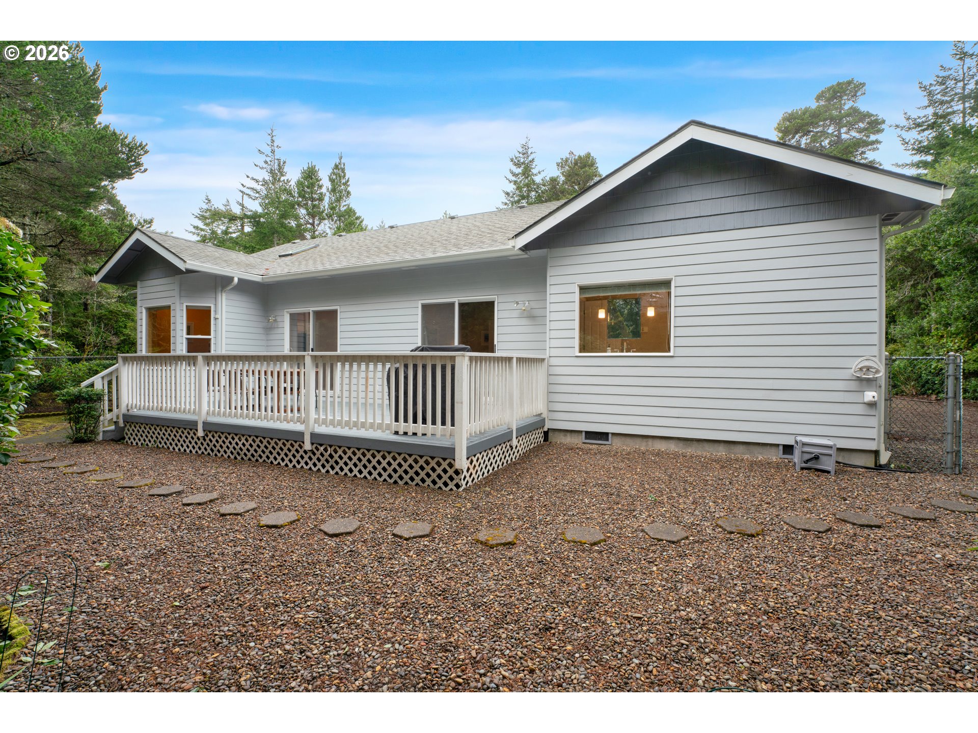 Lovely and move-in ready home located in the coveted Heceta South neighborhood in the desirable beach area of Florence. Recent updates include all new luxury vinyl flooring, fresh interior paint, and updated light fixtures throughout.The welcoming entry opens to a bright living room featuring a large picture window that fills the space with natural light. Just beyond, the family room sits off the kitchen and offers a comfortable gathering space with a glass slider leading to the spacious deck complete with a smart heater for year-round enjoyment.The beautifully remodeled kitchen features abundant cabinetry, new stainless steel appliances, a skylight for added brightness, and a charming breakfast nook.The primary suite is a relaxing retreat with French doors, a walk-in closet, and a private bath featuring quartz countertops, tile flooring, new fixtures, dual separate sinks, and a walk-in shower. A glass slider provides direct access to the deck. The second bathroom has also been completely remodeled with quartz countertops, tile flooring, and updated fixtures.A second bedroom is ideal for guests, while the third bedroom makes a perfect office or study.Set back from the road for added privacy, the nicely landscaped backyard offers a large deck, fenced yard, and tool shed. Additional features include gated side parking for an RV or boat.Being sold furnished, this is a true turnkey coastal opportunity.