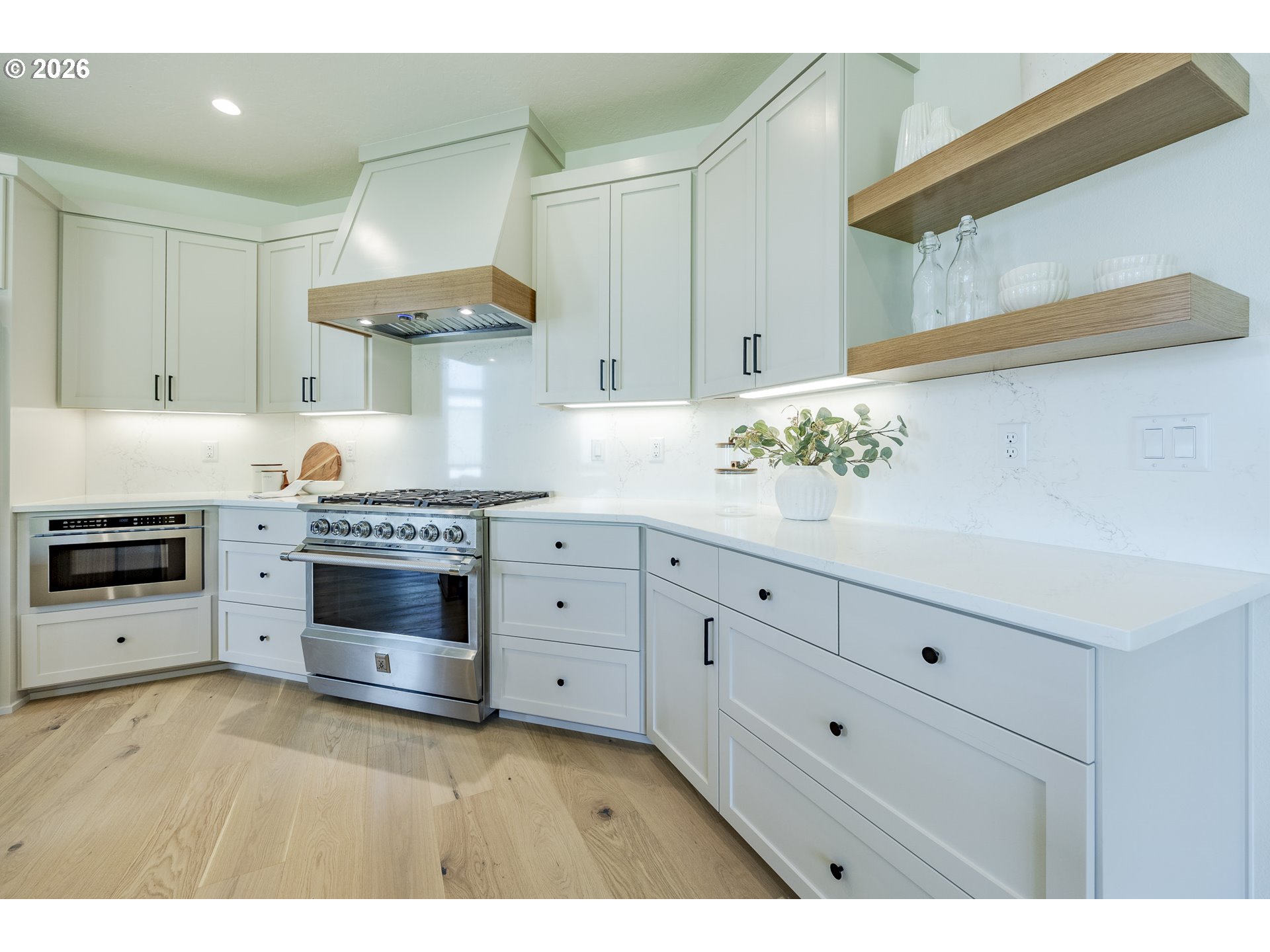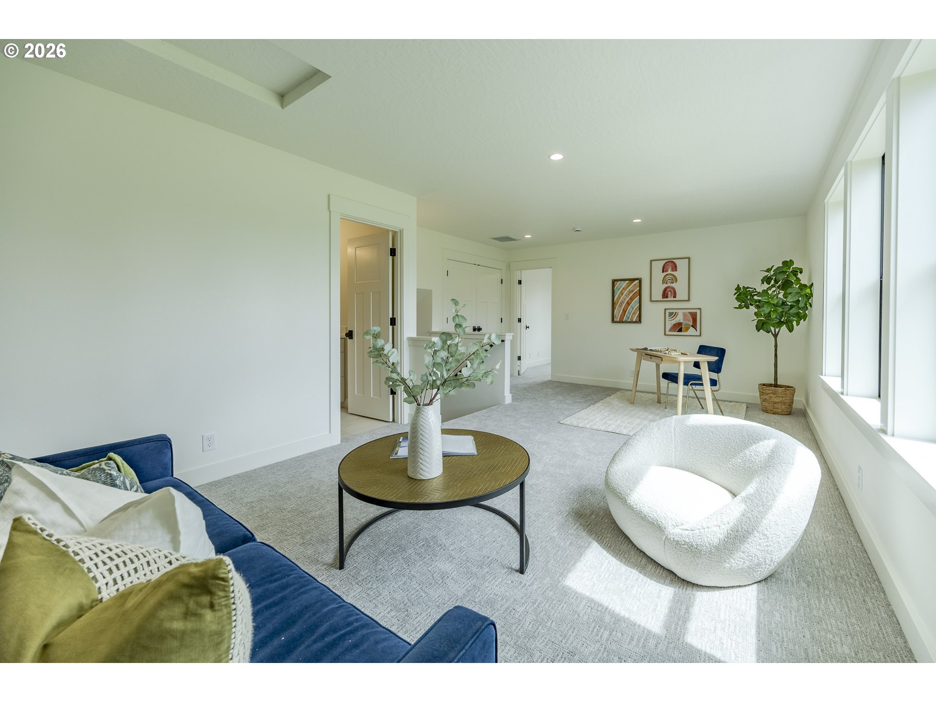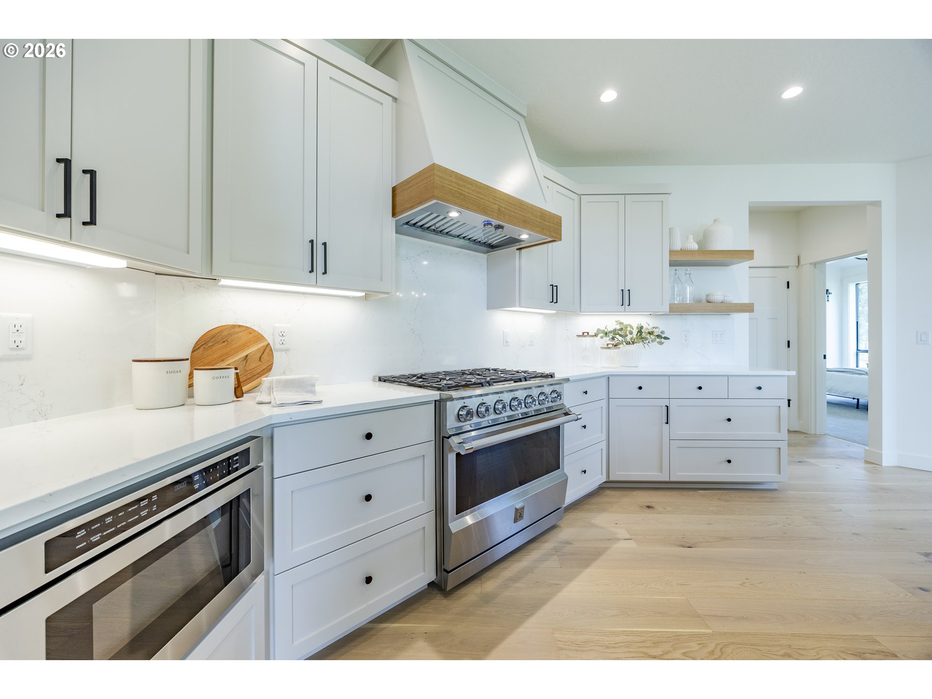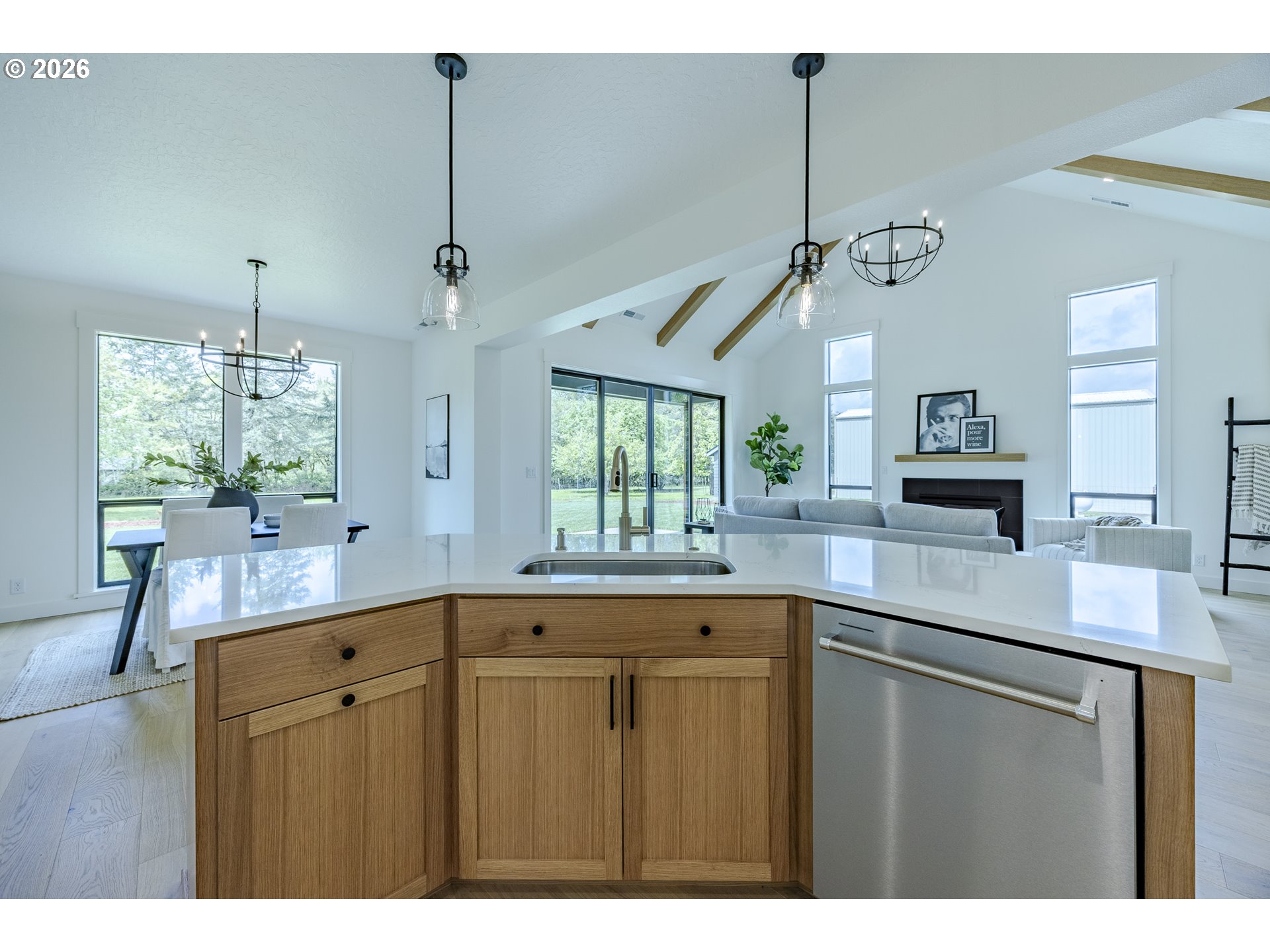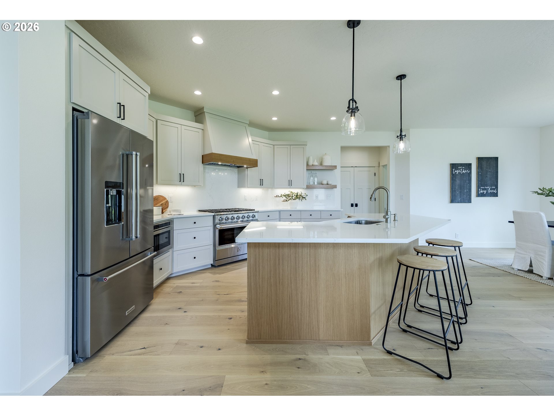 Tucked at the end of a quiet dead-end street in Veneta, this 2026 new construction by builder Bruce Weichert delivers the kind of quality you can feel the moment you walk through the door. Step inside to a striking entry. Just off the foyer, a thoughtfully placed office offers true separation—ideal for focused work or a little peace and quiet. Beyond that, the home opens up beautifully into a light-filled living and dining space that truly steals the show. Vaulted, beamed ceilings and floor-to-ceiling windows create a sense of volume and warmth, while the glass slider invites effortless indoor-outdoor living for summer evenings and weekend gatherings. The kitchen is designed to impress and perform. An oversized quartz island anchors the space, perfect for dining or entertaining, complemented by top-of-the-line KitchenAid appliances and a chef-worthy Hestan gas range. A dedicated dining area offers the perfect setting for more formal occasions. Privately positioned in its own wing at the back of the house, the primary suite is a true retreat with vaulted ceilings, a generous walk-in closet, a spa-like ensuite complete with soaking tub and walk in shower. Two additional main-level bedrooms, a full bathroom, a well-appointed laundry room with sink, storage, exterior access—and yes, a coveted Speed Queen set included—round out the main floor.Upstairs, a flexible bonus room, full bath, and additional bedroom create space for guests and hobbies.Every detail has been considered: tankless on-demand hot water, generator readiness, an extra-deep garage with storage, and a well pump house equipped with heat and power. Even future plans are accounted for, with septic and water lines already extended for a potential shop. This dreamy new build sits on a flat, usable 2-acre parcel—offering space, privacy, and possibility. This isn’t just a home; it’s your next chapter.