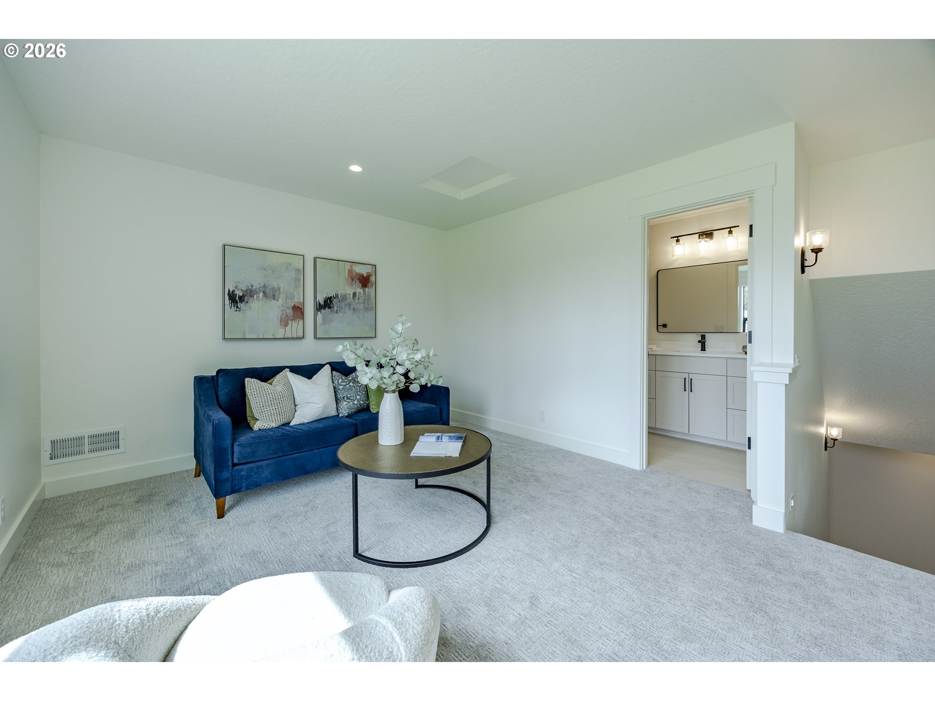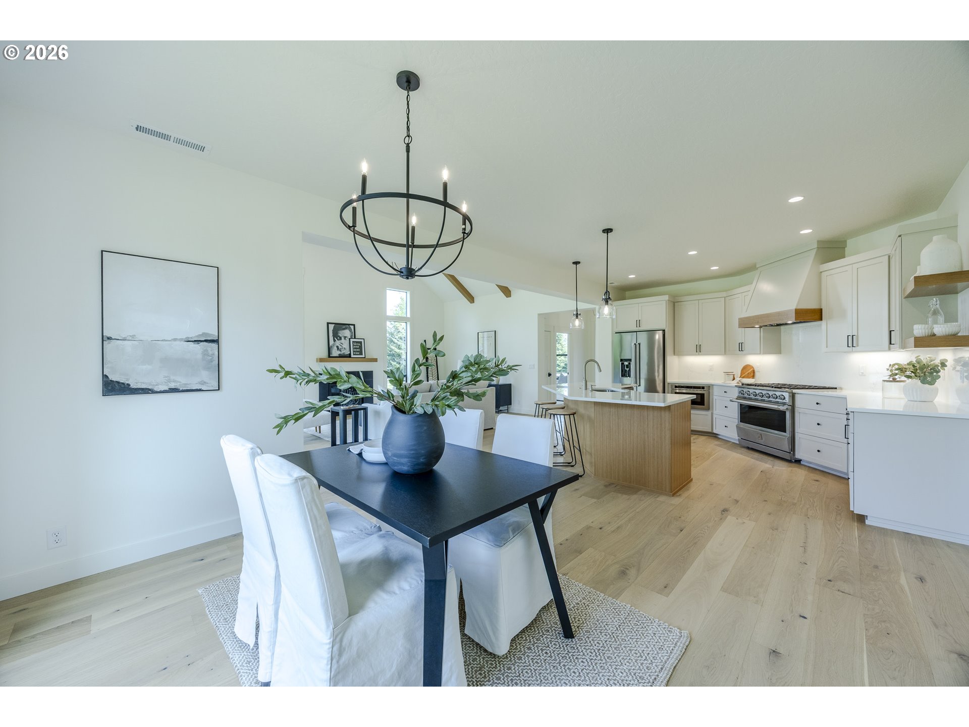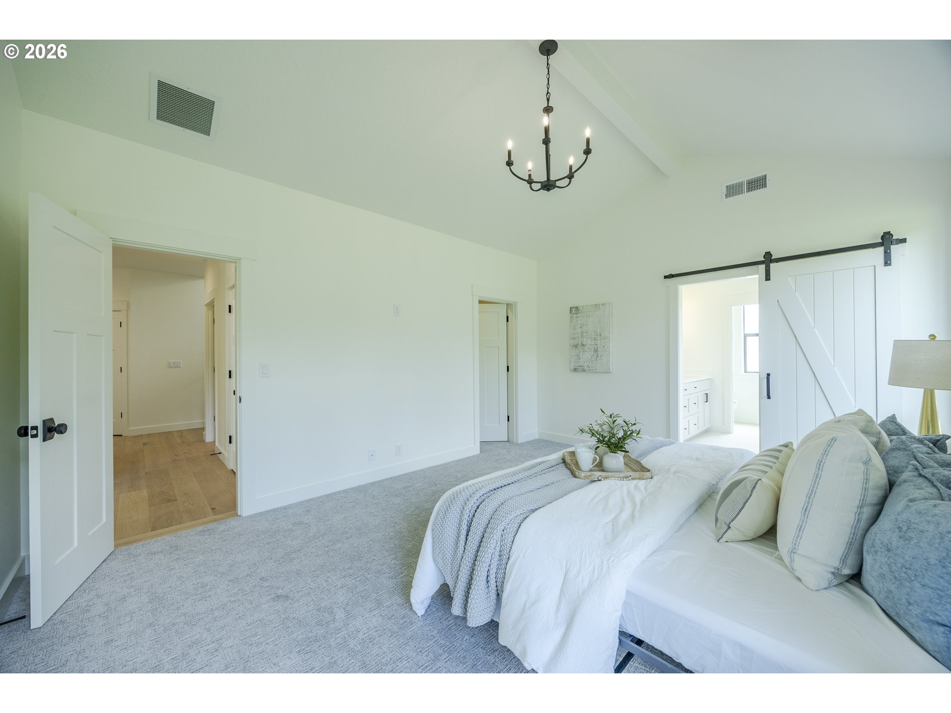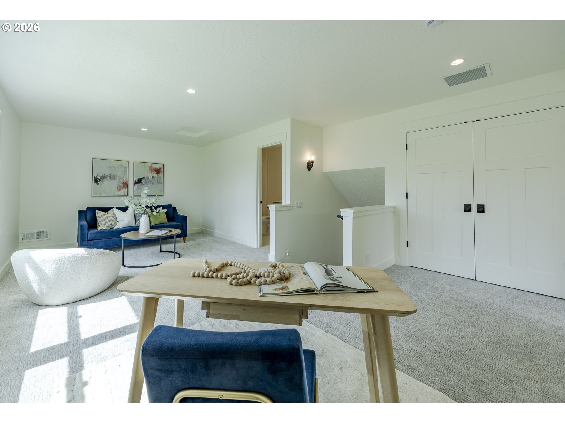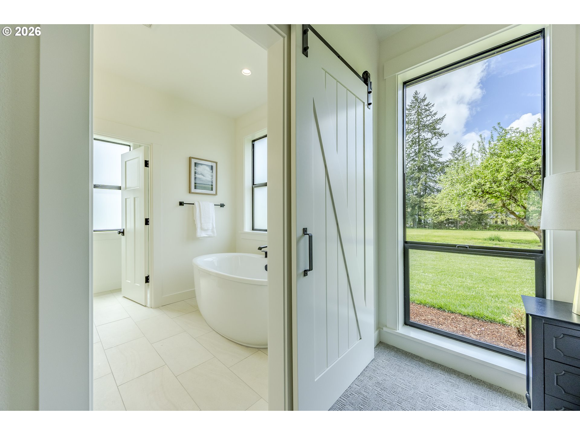 Tucked at the end of a quiet dead-end street in Veneta, this 2026 new construction by builder Bruce Weichert delivers the kind of quality you can feel the moment you walk through the door. Step inside to a striking entry. Just off the foyer, a thoughtfully placed office offers true separation—ideal for focused work or a little peace and quiet. Beyond that, the home opens up beautifully into a light-filled living and dining space that truly steals the show. Vaulted, beamed ceilings and floor-to-ceiling windows create a sense of volume and warmth, while the glass slider invites effortless indoor-outdoor living for summer evenings and weekend gatherings. The kitchen is designed to impress and perform. An oversized quartz island anchors the space, perfect for dining or entertaining, complemented by top-of-the-line KitchenAid appliances and a chef-worthy Hestan gas range. A dedicated dining area offers the perfect setting for more formal occasions. Privately positioned in its own wing at the back of the house, the primary suite is a true retreat with vaulted ceilings, a generous walk-in closet, a spa-like ensuite complete with soaking tub and walk in shower. Two additional main-level bedrooms, a full bathroom, a well-appointed laundry room with sink, storage, exterior access—and yes, a coveted Speed Queen set included—round out the main floor.Upstairs, a flexible bonus room, full bath, and additional bedroom create space for guests and hobbies.Every detail has been considered: tankless on-demand hot water, generator readiness, an extra-deep garage with storage, and a well pump house equipped with heat and power. Even future plans are accounted for, with septic and water lines already extended for a potential shop. This dreamy new build sits on a flat, usable 2-acre parcel—offering space, privacy, and possibility. This isn’t just a home; it’s your next chapter.