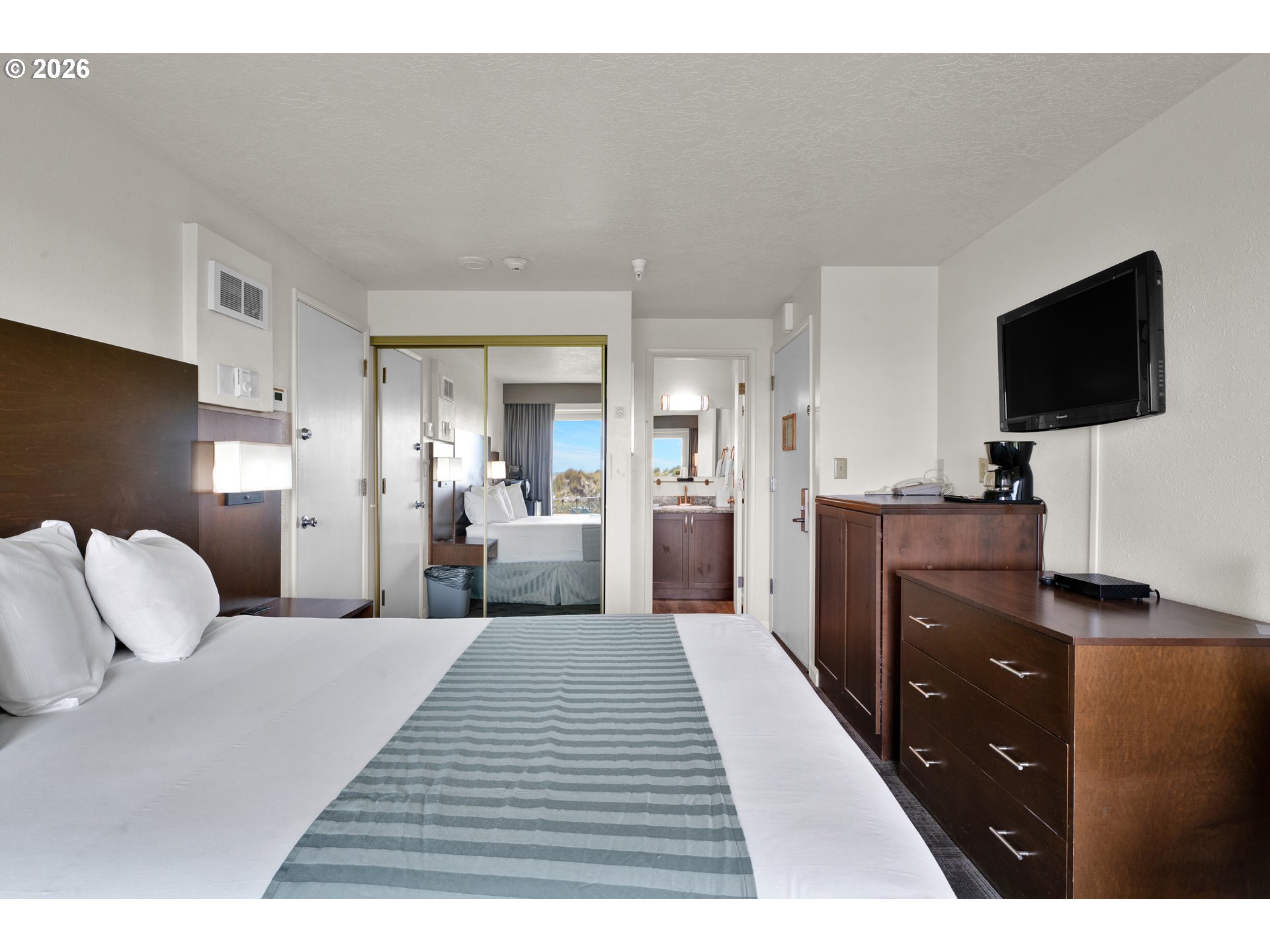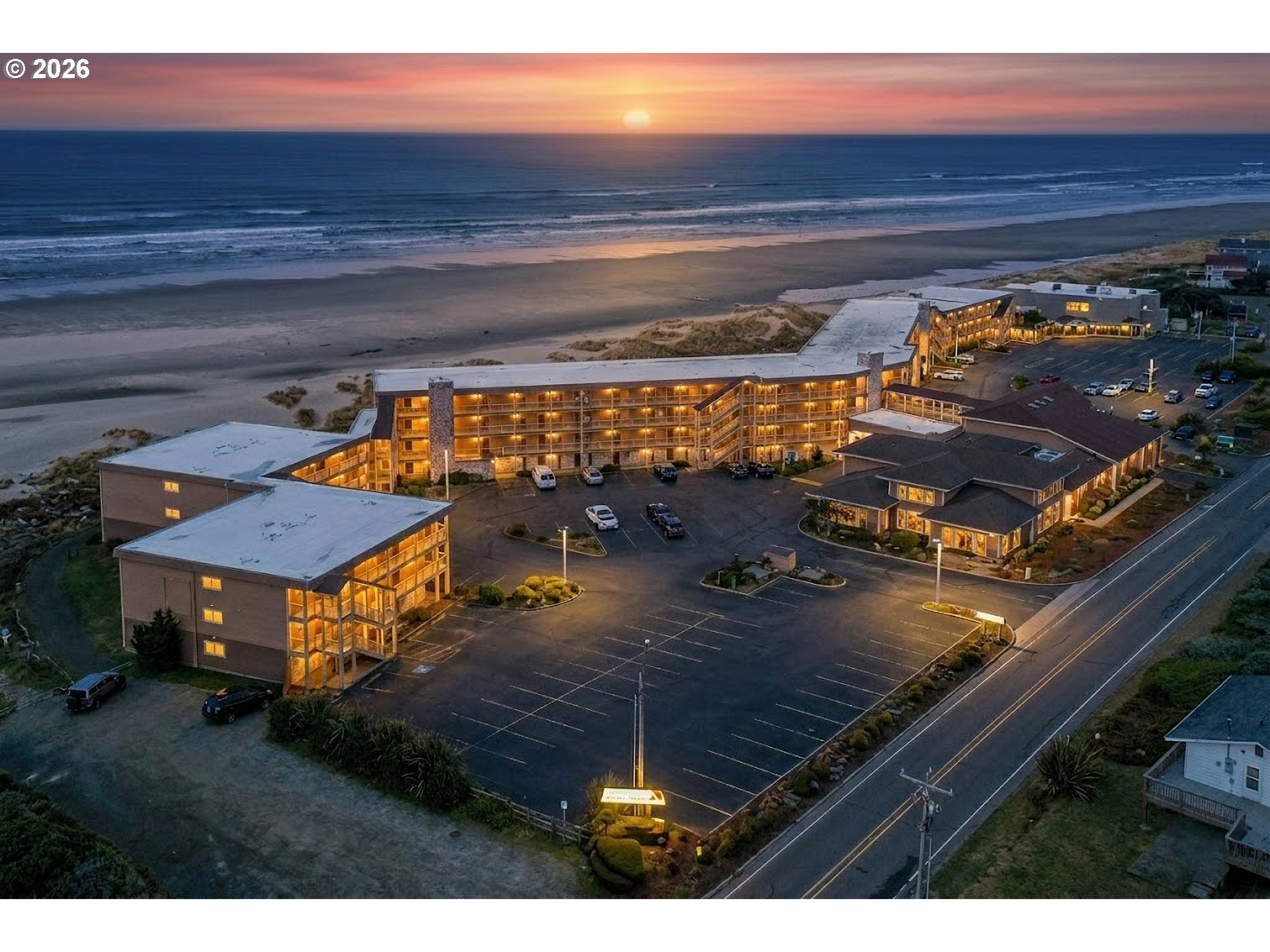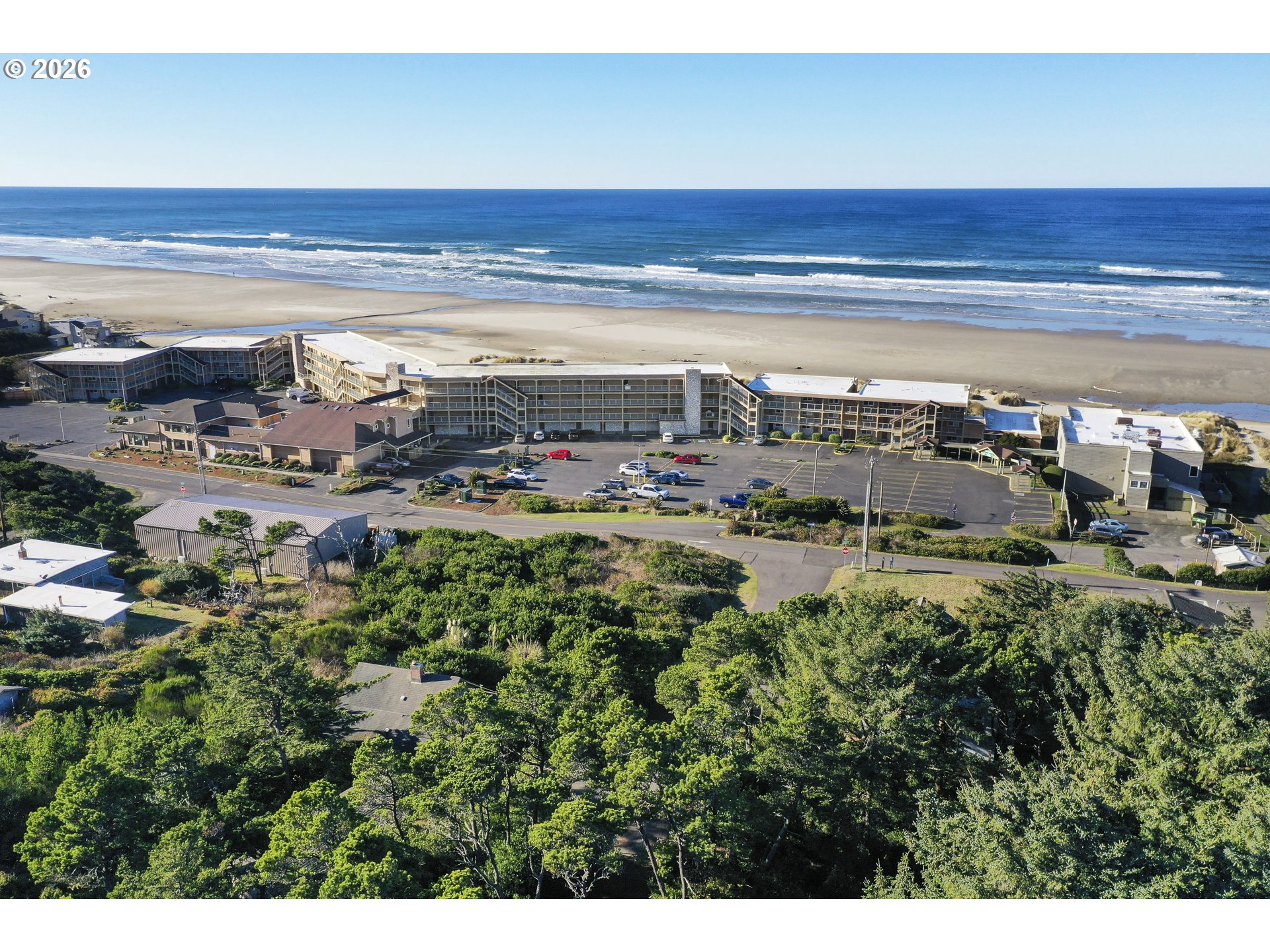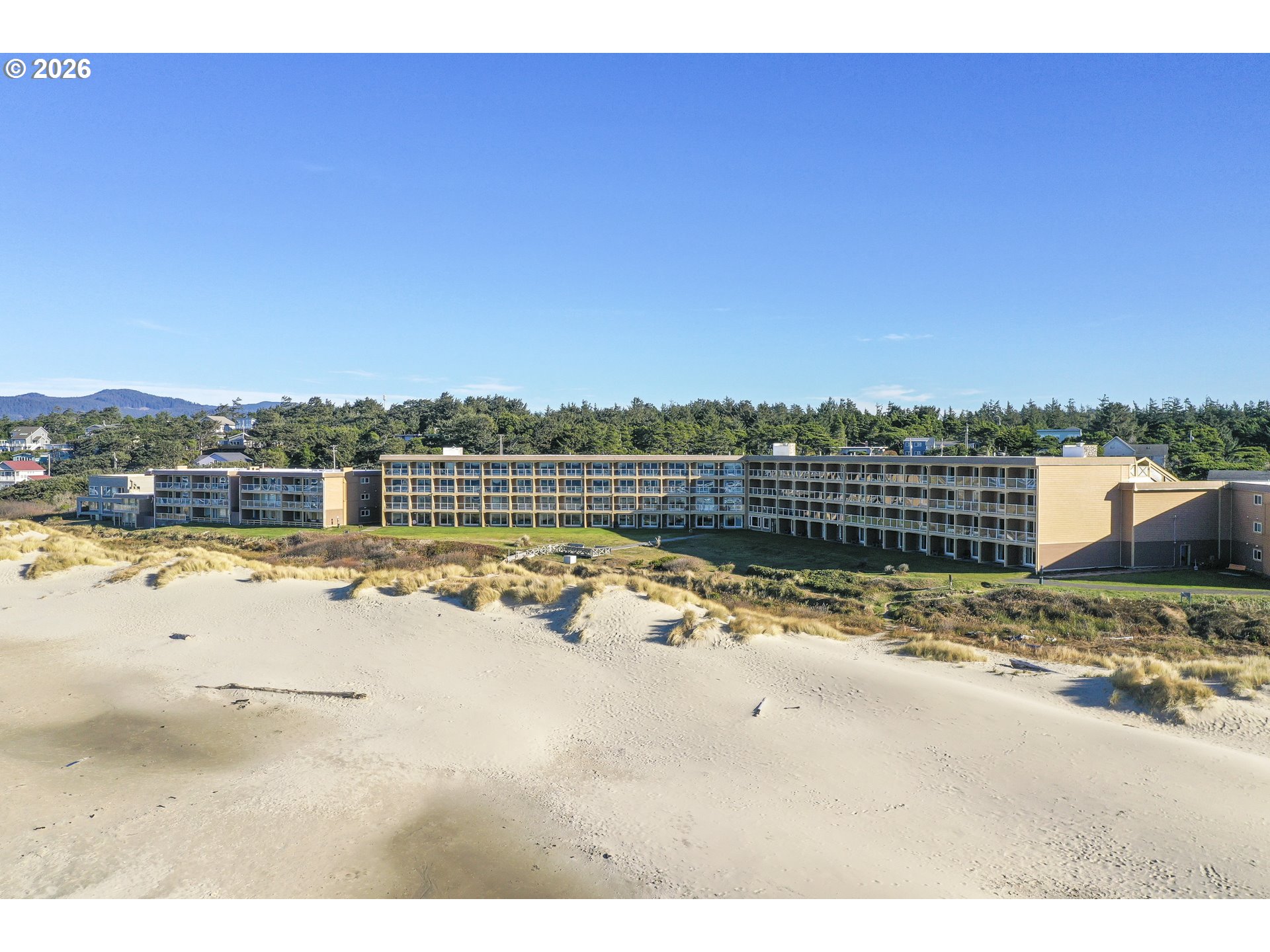 Only Ocean front Condo development in the Florence area! This is a ground floor unit featuring two rooms with a privacy door in-between. One side has a full Kitchen, Full bath and two queen beds. The other side has an additional queen bed, kitchenette and full bath. Both units have direct access to out to the beach! Amenities include an onsite restaurant, Lounge, Indoor pool and hot tub and also banquet facilities. Make this your go to vacation place! This unit is in the rental pool, however, an owner could remove it from the rental pool and occupy the unit.