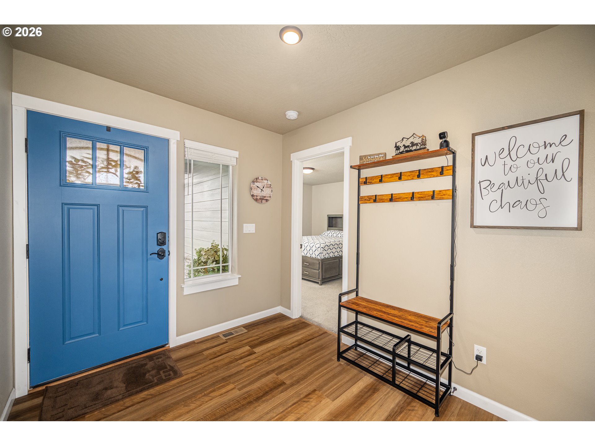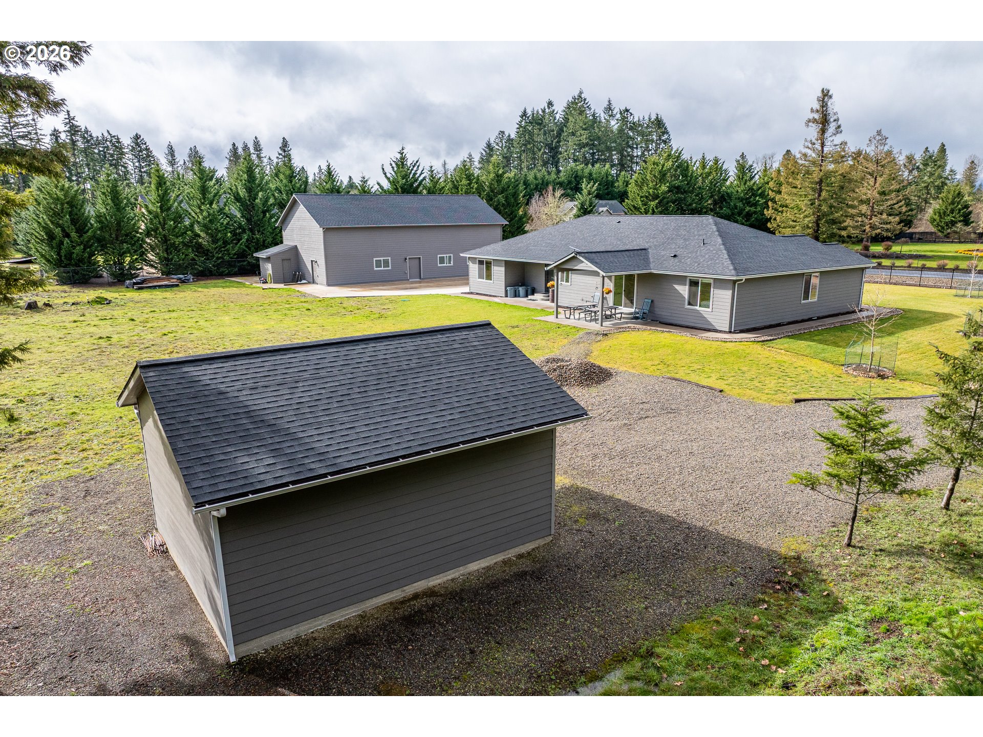 Rarely available and highly sought after, this exceptional single-level home at 88669 Promise Pkwy in Veneta offers the perfect blend of space, function, and convenience just minutes from Eugene, shopping, dining, and nearby lake recreation—all set on 2 fully usable acres and only about 45 minutes from Florence and the stunning Oregon Coast. Featuring 5 bedrooms, 2.5 bathrooms, and approximately 2,564 sq ft of open living space, the home showcases vaulted ceilings across the kitchen, dining, and living areas, durable LVP flooring, rich alder cabinetry with soft-close features, and a thoughtfully designed kitchen complete with a butler’s pantry ideal for both daily living and entertaining. What truly sets this property apart is the impressive 1,960 sq ft shop equipped with double RV garage doors, a 125-amp subpanel, pre-wired 30-amp power, reinforced concrete for a future lift, and full RV hookups alongside, plus an additional 400 sq ft detached garage on slab with a roll-up door for even more versatility. Built for efficiency and long-term value, the property includes Hardie plank siding, aluminum and stainless steel lifetime fencing, a sprinkler system with drip-line stub ups, a strong 15 GPM well, and EPUD power supporting lower utility costs. Offering peaceful Veneta living with quick access to Eugene’s amenities and year-round outdoor recreation, this rare combination of true single-level living, expansive shop space, acreage, and prime accessibility creates an outstanding opportunity for buyers seeking both lifestyle and practicality.