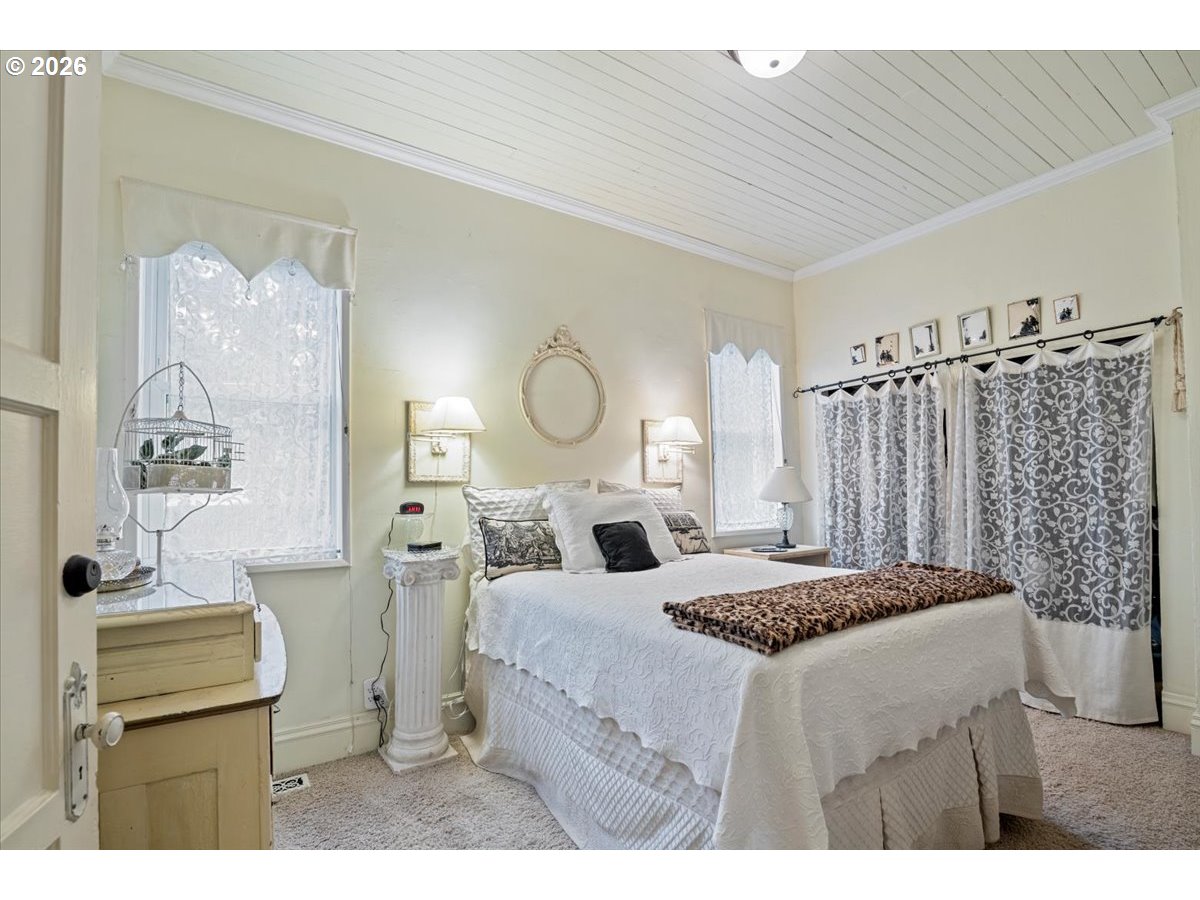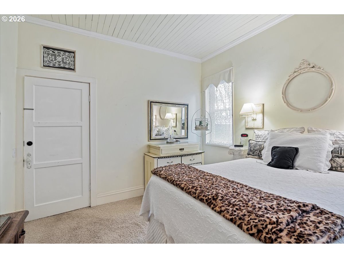 Own a unique piece of Coburg history. Originally built in 1929 as an annex to the Methodist Church, this structure was purchased in 1949 as a wedding gift, moved to its current site, and remodeled into a private residence. Located within the Coburg National Historic District, it beautifully blends preserved 1920s character with modern comfort. Oak hardwood floors run throughout, complemented by high ceilings and abundant natural light. The kitchen features stainless steel appliances, and the family room includes a cozy gas fireplace. The primary bedroom and bathroom are located on the main floor, and central heating and air conditioning provide year-round comfort. This home offers 1,587 sq ft of living space, plus a 432 sq ft detached garage with a fully finished bonus room — ideal for a studio, office, or guest space. A covered patio connects the home and garage, creating the perfect setting for outdoor entertaining. Situated on a generous 0.44-acre lot, Enjoy established grapes, fig, cherry, Bartlett and Asian pear trees, apple trees, and a stunning maple tree complete with a swing. There is ample room for gardening, expansion, or future possibilities. The landscaped yard includes a welcoming front porch and a fenced side yard with patio space for relaxing or entertaining. Investor potential — lot may have the possibility to subdivide (buyer to perform due diligence). A rare opportunity to own a home with history, charm, space, and flexibility in the heart of Coburg.