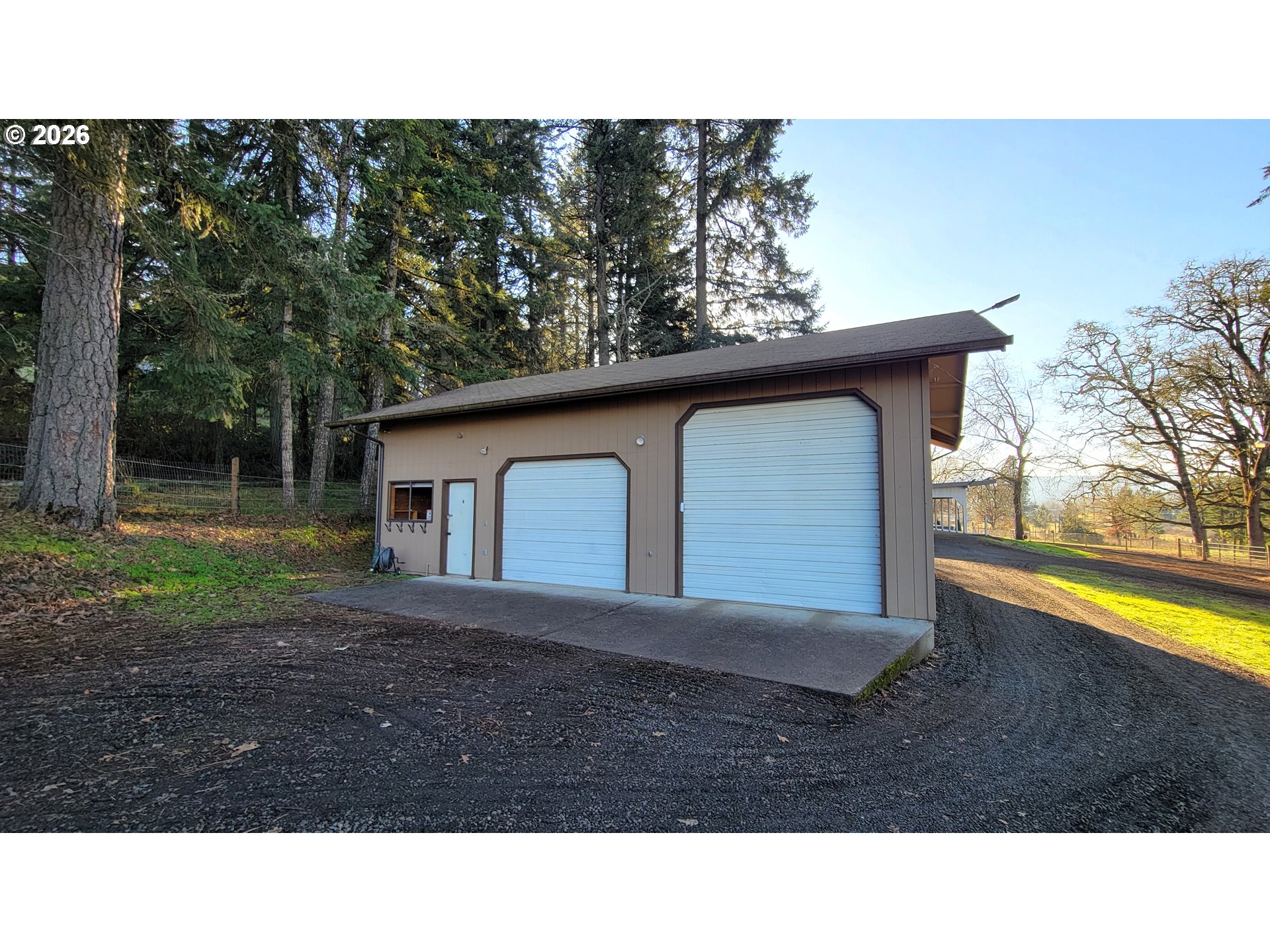 2 HOMES on 3.76 wooded acres! Set up perfectly for sustainable living or a hobby farm. The thoroughly UPDATED main home offers tons of windows and high ceilings for a bright and airy feel. The kitchen features an abundance of CUSTOM cabinets, beautiful granite counters, and stainless steel appliances. Enjoy sweeping valley VIEWS from the peaceful front deck, or relax out back next to the water feature and built-in fire pit. The detached 34x10 BONUS room with its own separate entrance would make a great home office! Fully fenced and gated grounds including cross-fenced pastures, a huge garden, and an abundance of fruit trees, including apple, cherry, pear, peach, and fig. The fully RENOVATED 2nd home/ADU with its separate address, electric panel, septic system, and parking could be an ideal setup for multi-generational living or an additional income stream! Insulated and heated 38x32 SHOP with a 10.5' RV garage door, 48x30 BARN, abundant storage, automatic backup generator, fiber optic internet and more! Don't miss this one-of-a-kind property!