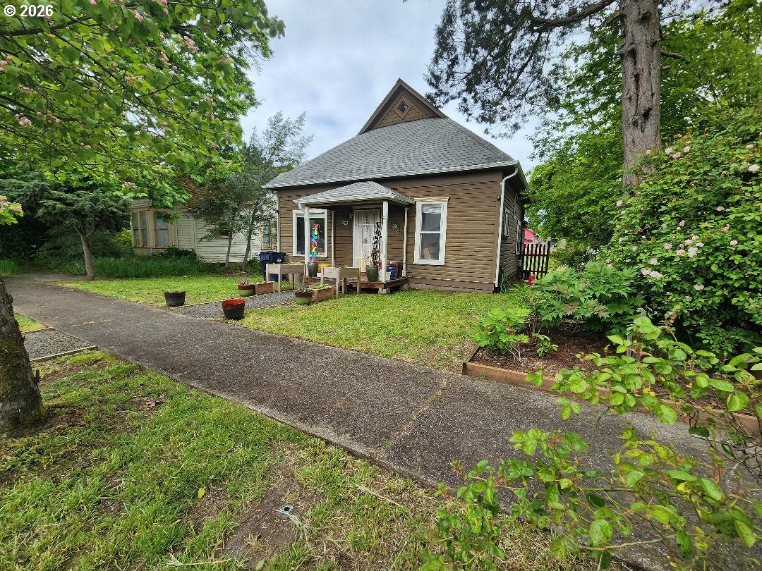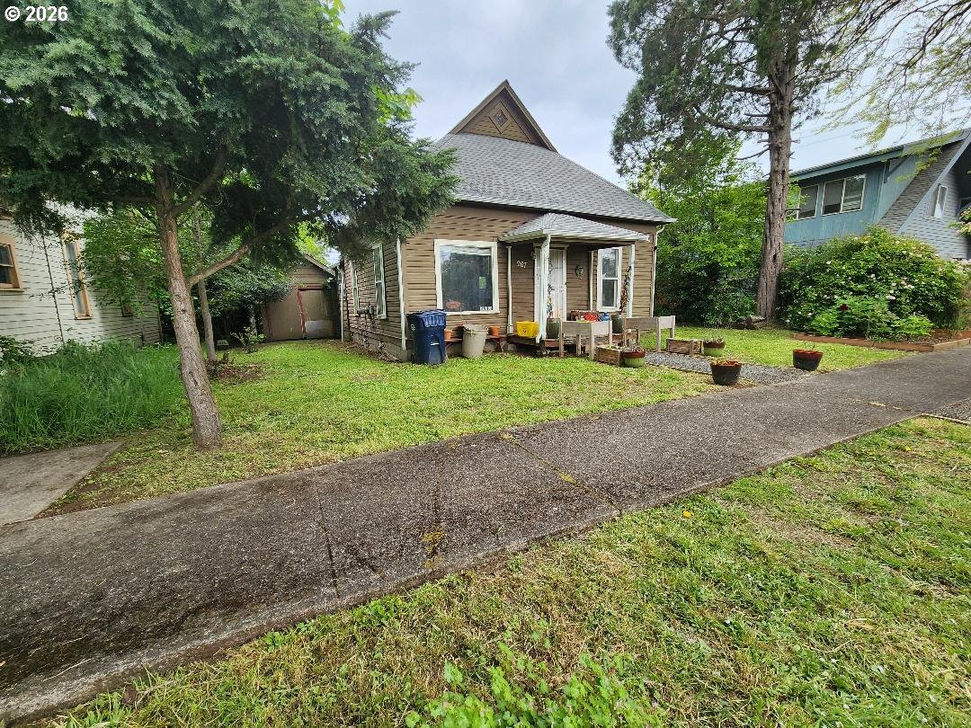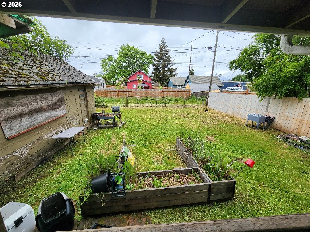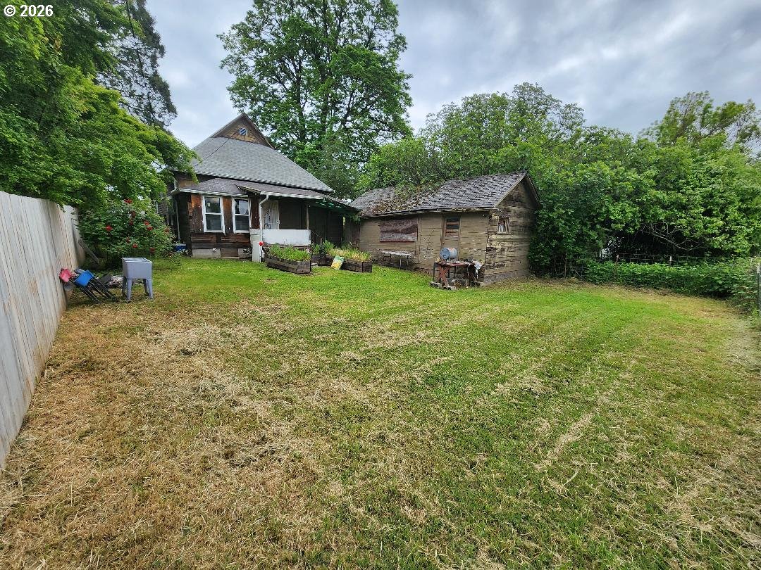 Fixer-upper Danish-style farmhouse in Junction City! The home is on a nice block foundation with plenty of life in the roof. It's ready for your updates and vision. Features include 9 1/2 ft ceilings, a 10x30 storage shed, fenced backyard with alley access, and walkable proximity to shops and restaurants. 3rd room space is an upstairs large unfinished area without closet or window. Zoned General Commercial (GC), providing potential for residential or business use (buyer to verify). Needs TLC, a heat source, and electrical panel update. Great opportunity for investors or buyers looking to customize!