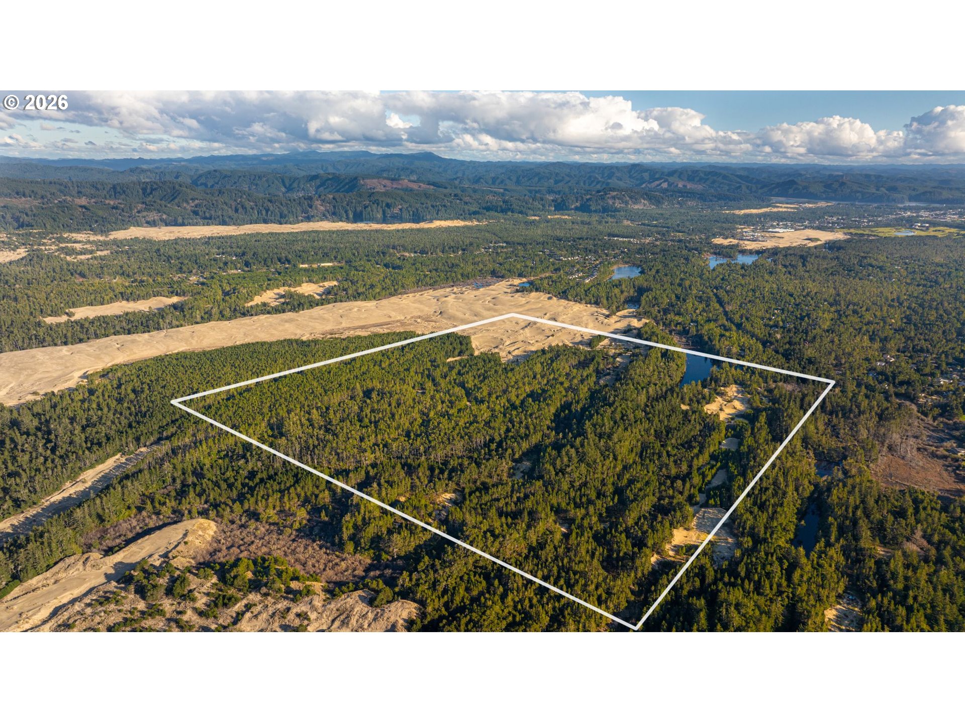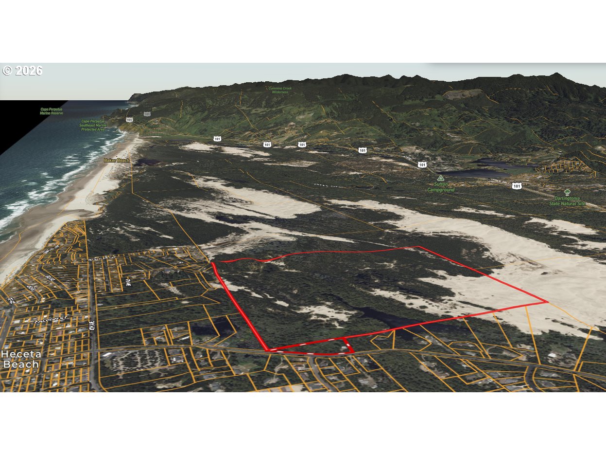 155.66± acres of coastal dune and forest land north of Florence, Oregon. Zoned F2 (Impacted Forest) with Beaches & Dunes overlay. This beautiful, contiguous tract lies adjacent to federally managed lands within the Oregon coastal dune system, offering a rare opportunity to acquire a significant private holding in a tightly controlled landscape. Past reports of bear and deer sightings on the property.There is currently no recorded vehicular access to the parcel and this is not a buildable residential parcel. Physical access appears to be walk-in only, potentially across adjoining BLM lands. Any maintained ingress/egress across BLM property would require application for and approval of a federal right-of-way grant, subject to BLM review and regulations. Buyer to perform all due diligence regarding legal access, zoning, land use, and regulatory feasibility. Terrain consists primarily of sand dune and stabilized coastal vegetation. No utilities, improvements, well, or septic are in place. Located outside incorporated city limits and outside the urban growth boundary. Given its size, habitat context, and adjacency to public lands, the property may be suited for conservation-minded buyers, or those seeking a long-term land holding. Lane County 2025 Real Market Value: $558,881 and the property is being offered at $399,000. Seller is motivated so bring your offers.Property sold as-is. Buyer responsible for verifying all aspects of access and intended use. REQUEST DRONE TOUR VIDEO FROM YOUR FAVORITE AGENT.
