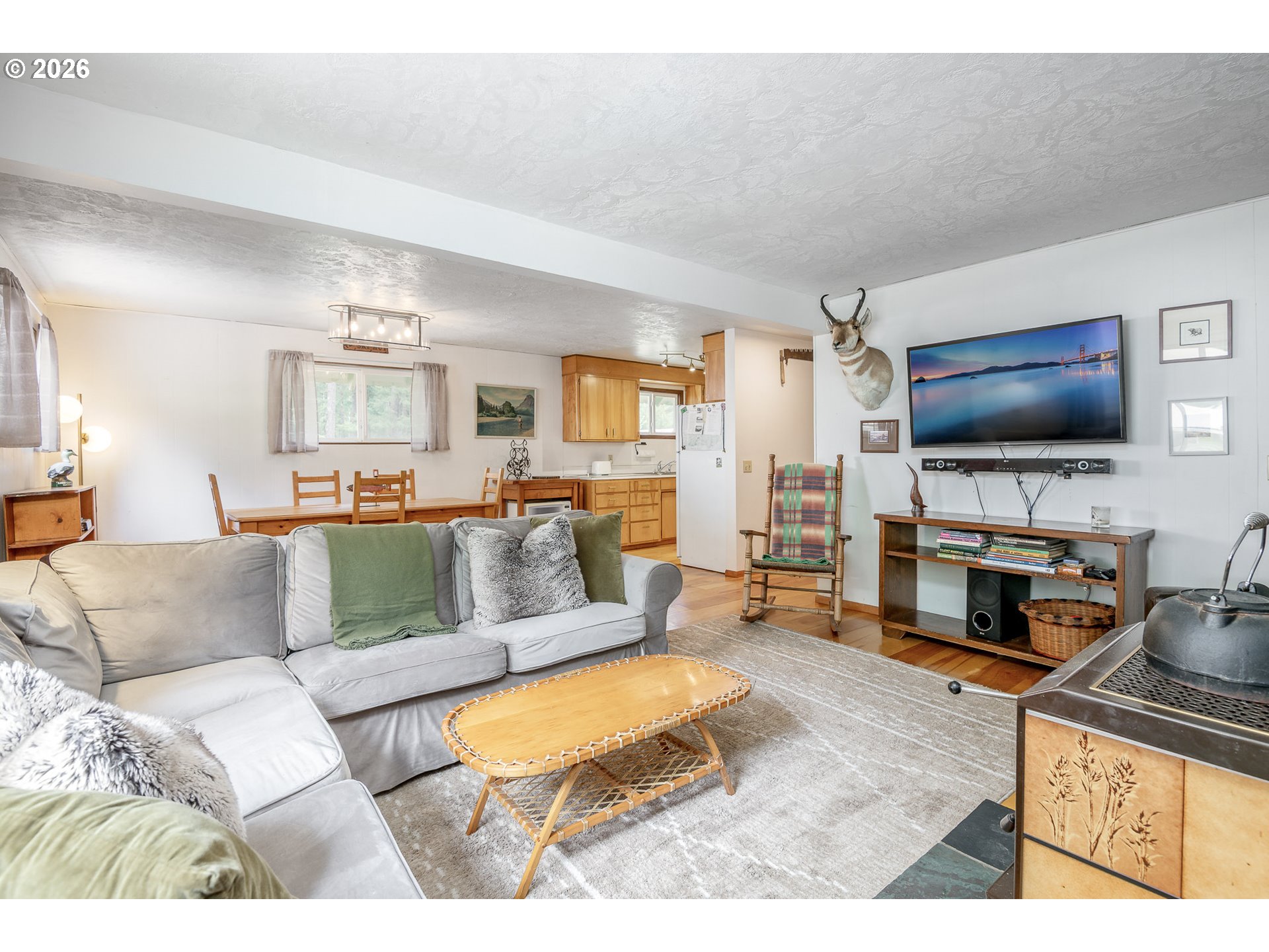 Your mountain basecamp awaits! This fully-furnished Packwood chaletsits on a large lot surrounded by national forest, alpine rivers, and some of the PNW's best outdoor recreation- White Pass Ski Area, Mt Rainier & The Goat Rocks Wilderness. Inside, the main level features an open living, dining & kitchen with wide plank hardwoods, a wood-burning stove crackling at the heart of it all, a ductless mini split & double-pane vinyl windows for year-round comfort. Primary bedroom, 3/4 bath w/ laundry & a mudroom/storage room are also on the main floor - perfect for kicking off ski boots & hunkering down. Upstairs, two large bedrooms with new carpet & an added half bath sleeps multiple guests in comfort. Outside: fresh paint & a metal roof built to last. An oversized 3-car garage/shop offers serious storage & workspace for vehicles, skis & gear. The attached rec room is a perfect apres-ski hangout space. Cornerlot with pull-through driveway accommodates RV's & large vehicles. STR friendly, with strong income potential- sleeps up to 8 people. High Valley HOA includes golf, pool, clubhouse & water. Nearby Packwood shops, breweries & dining. ~25 min to Mt. Rainier National Park, ~30 min to White Pass Ski Area, 2.5 hrs to Seattle or Portland. Fishing, hiking, skiing & mountain living — four seasons of adventure all out your front door!