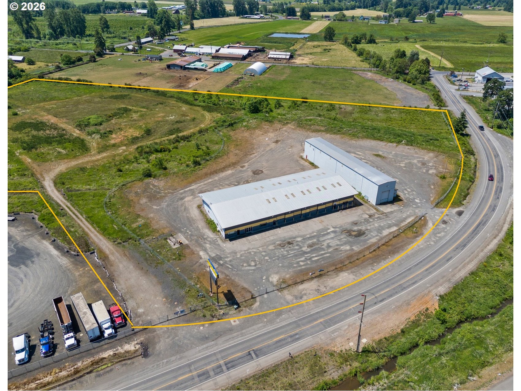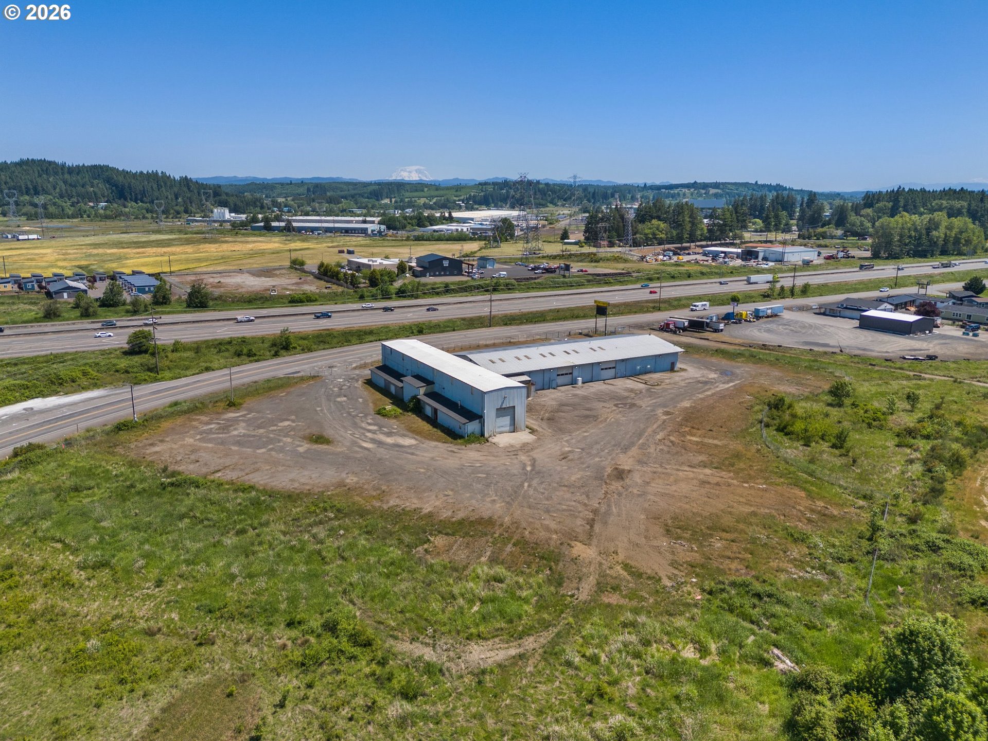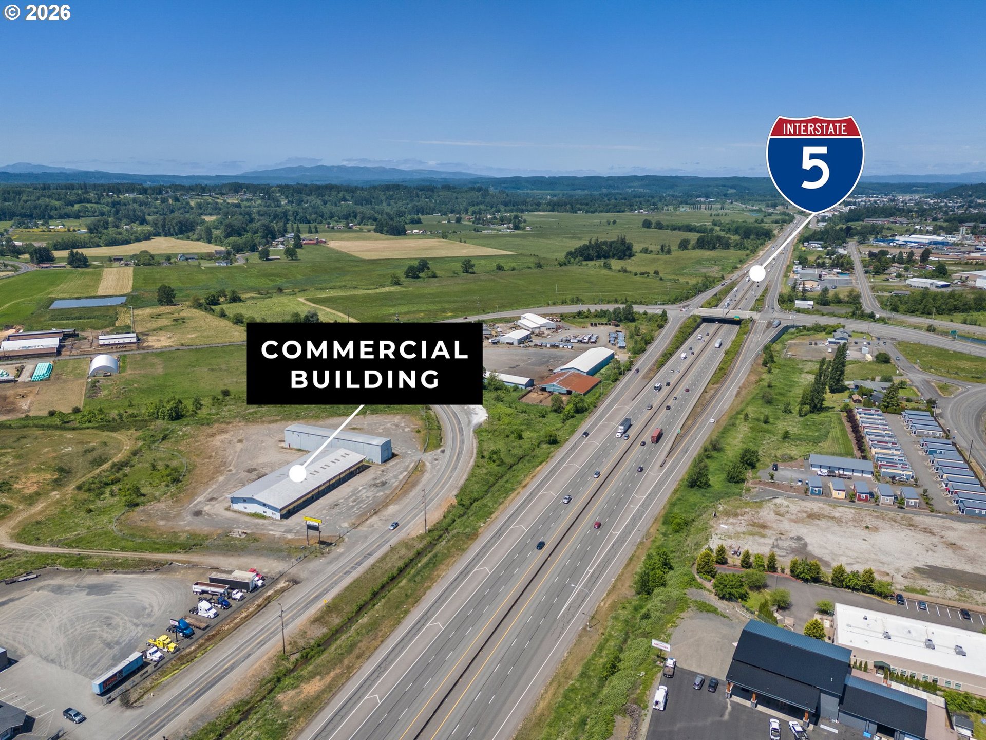 21+ acres with commercial zoning, great I-5 visibility, on city water, with city sewer near-by. 15,000+/- sq foot building with approximately 5,000 sq feet of office space (7 private offices) and a retail / showroom space. There is loft storage above the office / retail area and an apartment in the loft area. The balance is shop area with radiant heat, multiple pull-through service bays and a concrete floor built for heavy equipment. Wide roll-up doors allow for oversized equipment. A second building is approximately 180' by 30' with a tall walls and concrete floors. Property has a large existing programable sign, easily readable from the freeway. All this and within 1/4 mile of one of the largest capacity I-5 interchanges in the state (exit 74). Potential uses are almost unlimited.