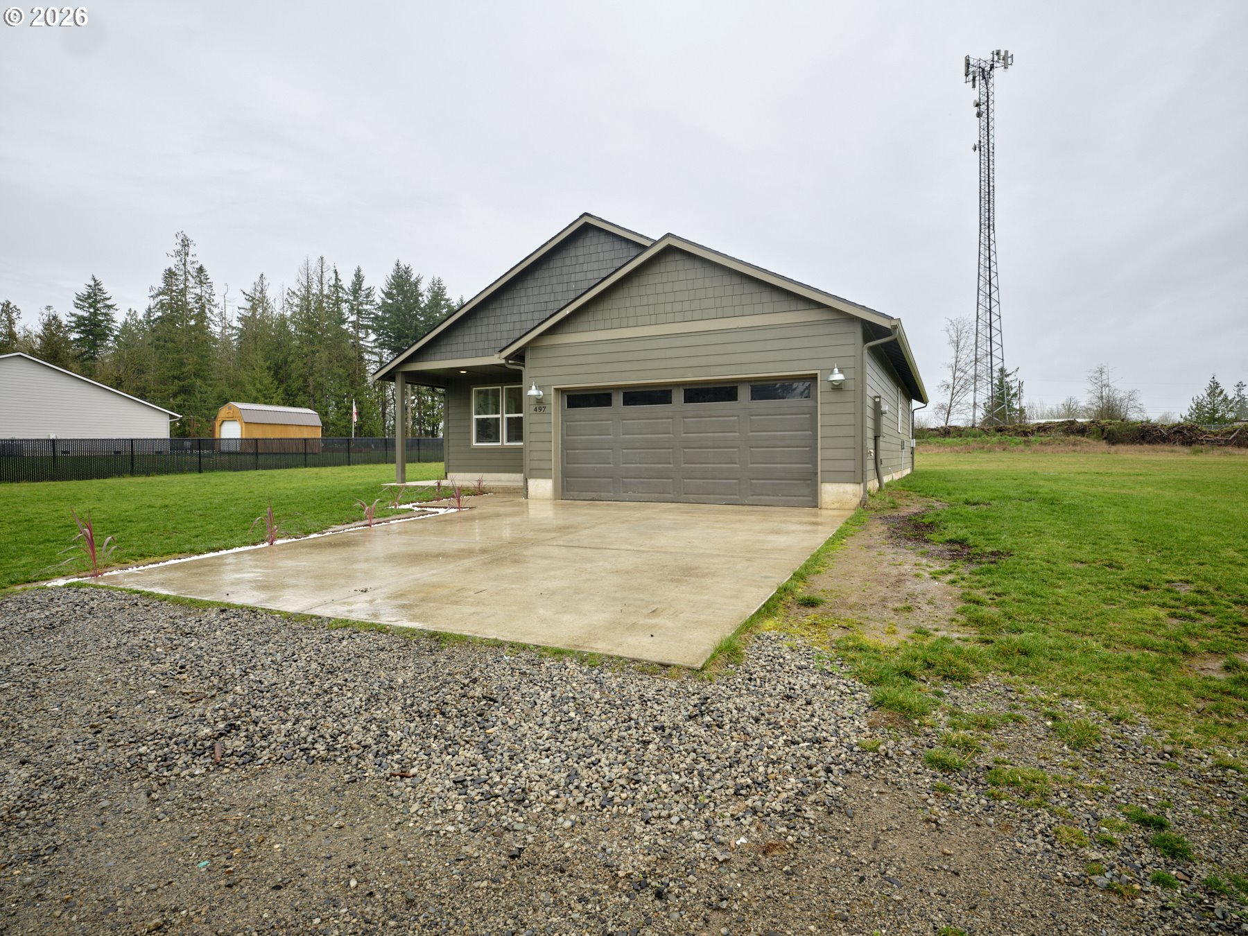 Sparkling clean and ready to move in, this almost new one level home sits on 2 flat acres in Winlock. Covered porch greets you as you enter the home. Living room is filled with windows and opens to the kitchen/dining area. Luxury vinyl plank floors throughout as well as 9' ceilings- giving a light & bright feel. Kitchen is equipped with a full stainless steel appliance package and eat bar-island providing a host of entertaining possibilities. Primary Suite has attached 3/4 bath. Large utility room ideal for extra storage. Covered back porch for enjoying year round. Property is served by an individual great producing well (60 gpm!). Lots of room for additional outbuildings, ADU, parking and gardens. Excellent fiber internet. Less than 3.5 miles to I5 access. Best of both worlds: close-in country living!