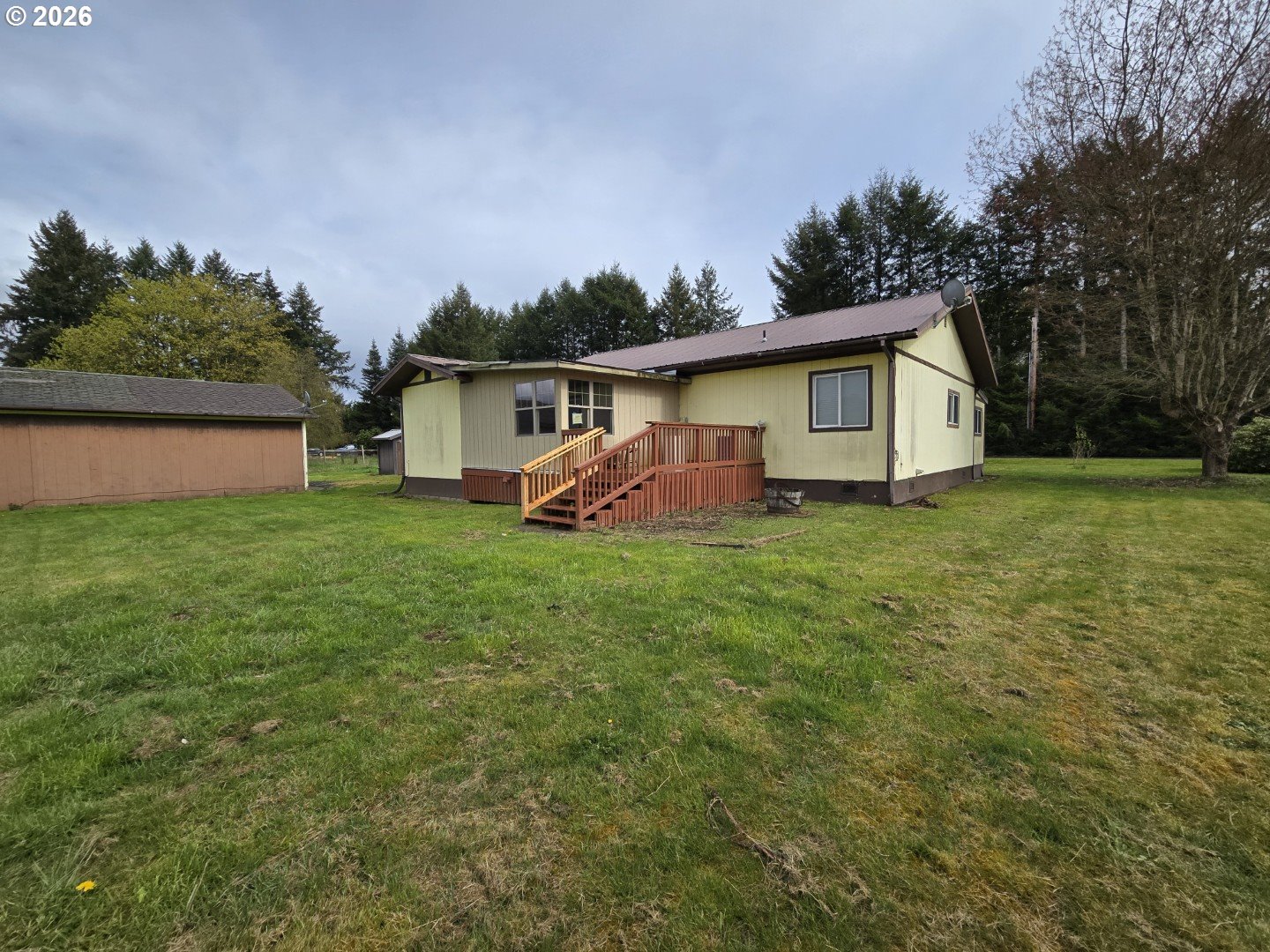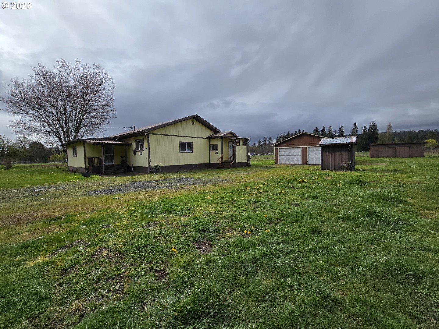 Home situated on approximately 2.8 flat, usable acres in a rural Onalaska setting. 2-bedroom layout with multiple living spaces, including a spacious main living area and additional flex room. Kitchen offers ample storage and workspace. Primary bedroom includes attached bath and walk-in closet. Central heating provides year-round comfort. Metal roof for added durability. Property features a detached 2-car garage with workshop space, multiple outbuildings, and fenced areas suitable for a variety of uses. Deck overlooks the back portion of the property with territorial views. Opportunity to further personalize while enjoying acreage and move-in functionality. Non RMLS agents reach out for full agent side info and easy viewing setup. If property was built prior to 1978, Lead Based Paint Potentially Exists.