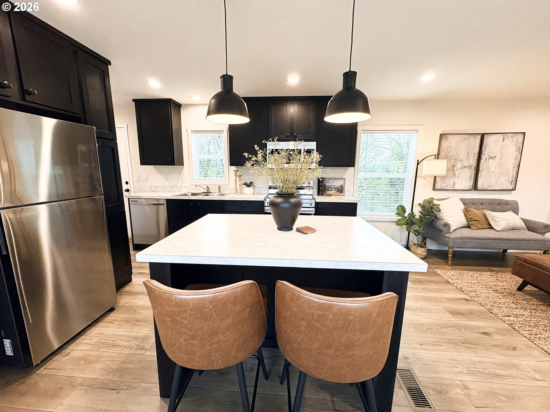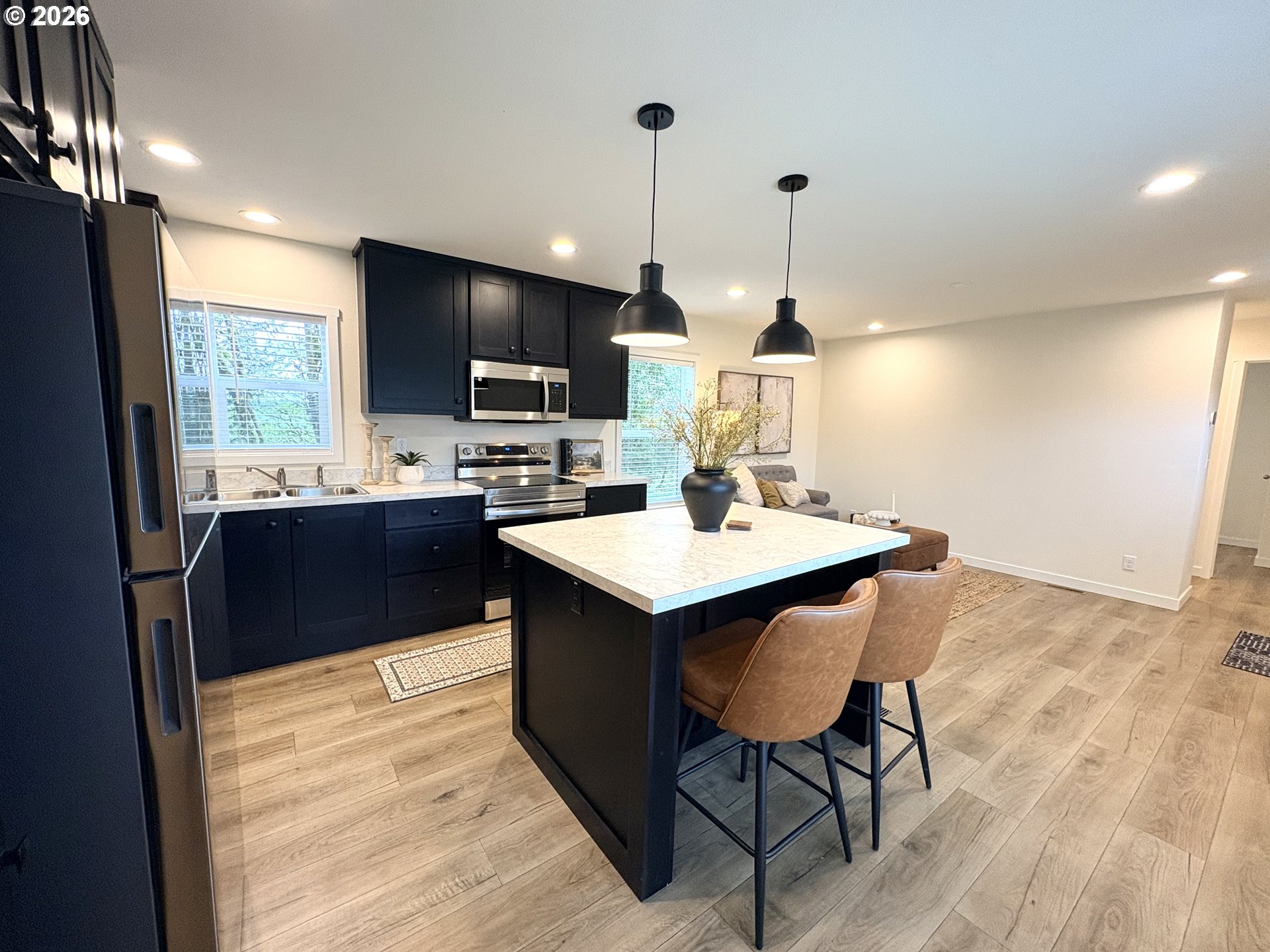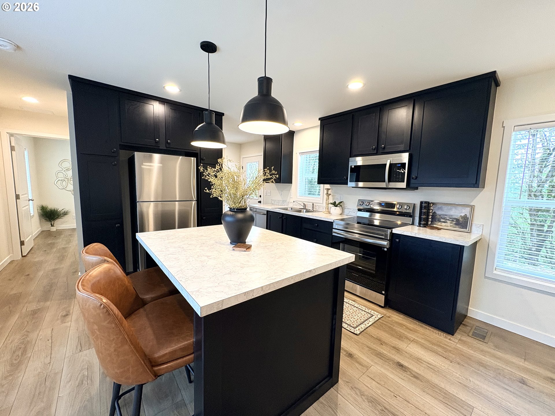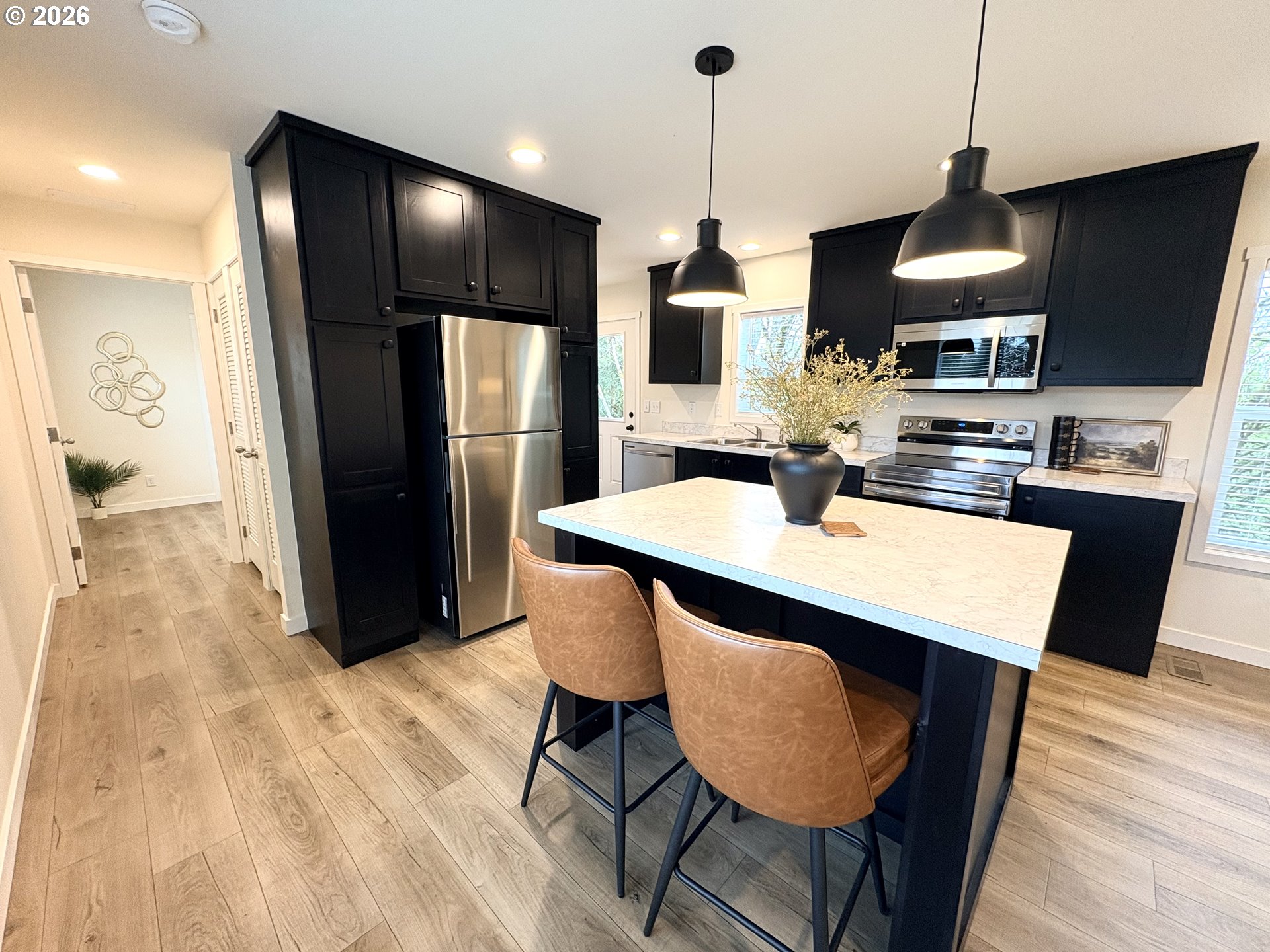 Dishwasher, FreeStandingRange, FreeStandingRefrigerator, Island, Microwave, Pantry, StainlessSteelApplianc