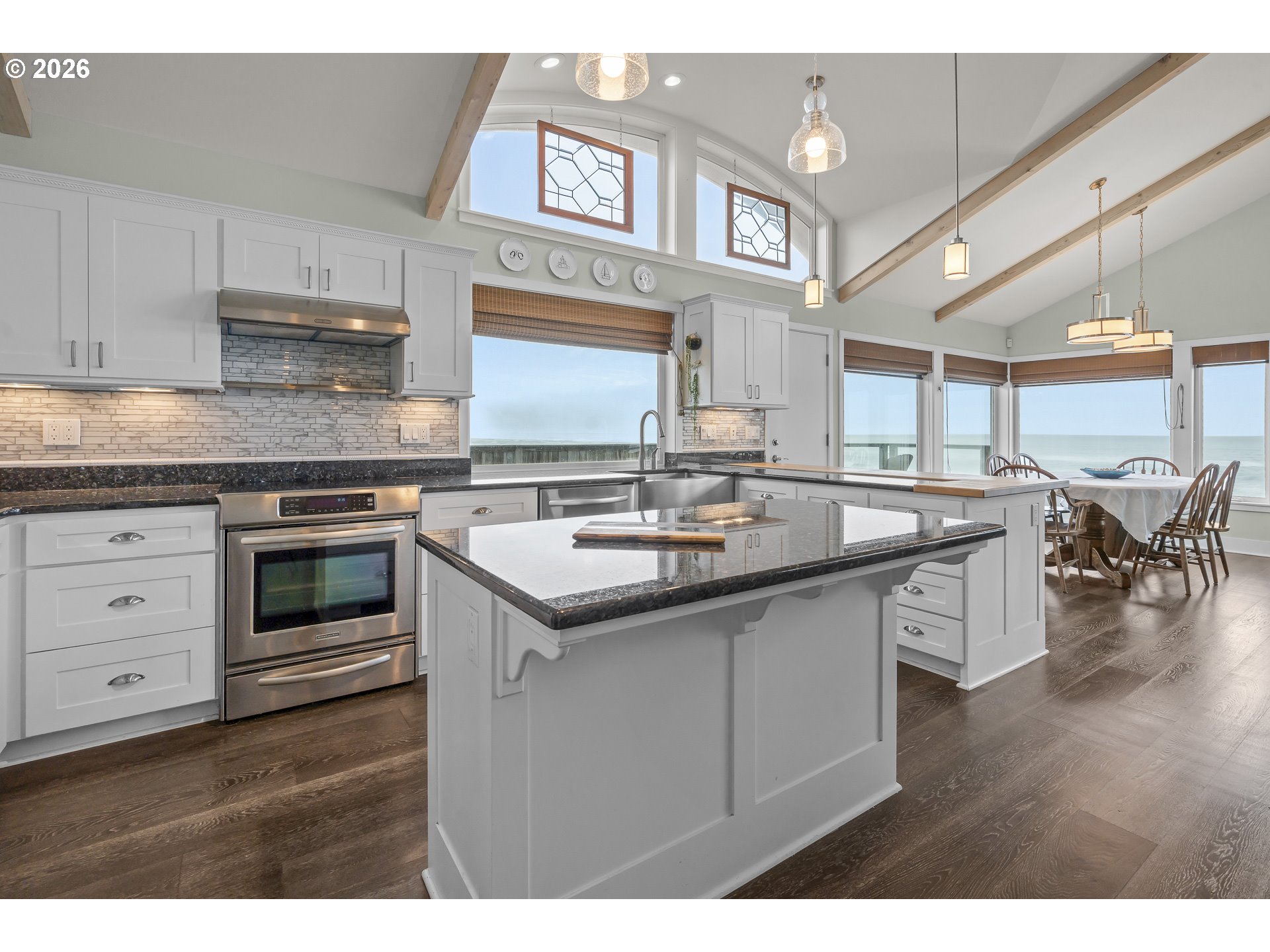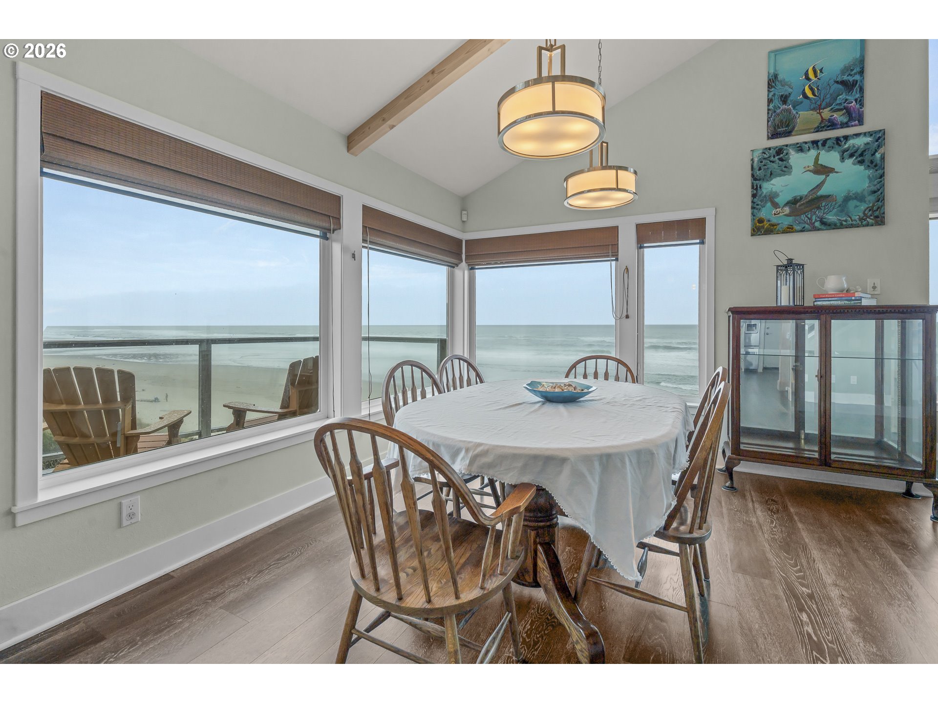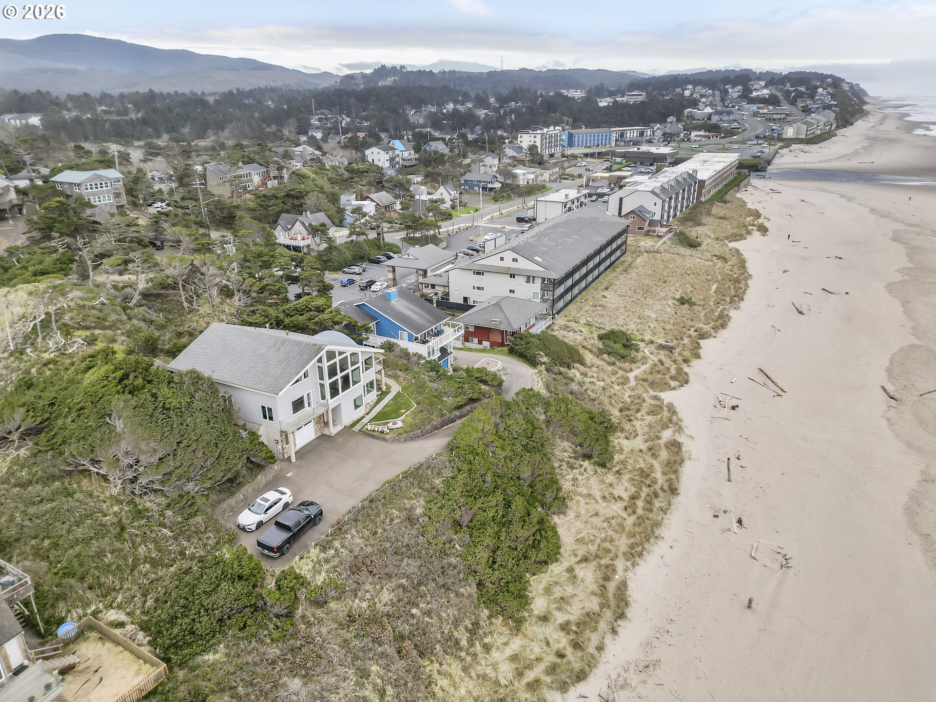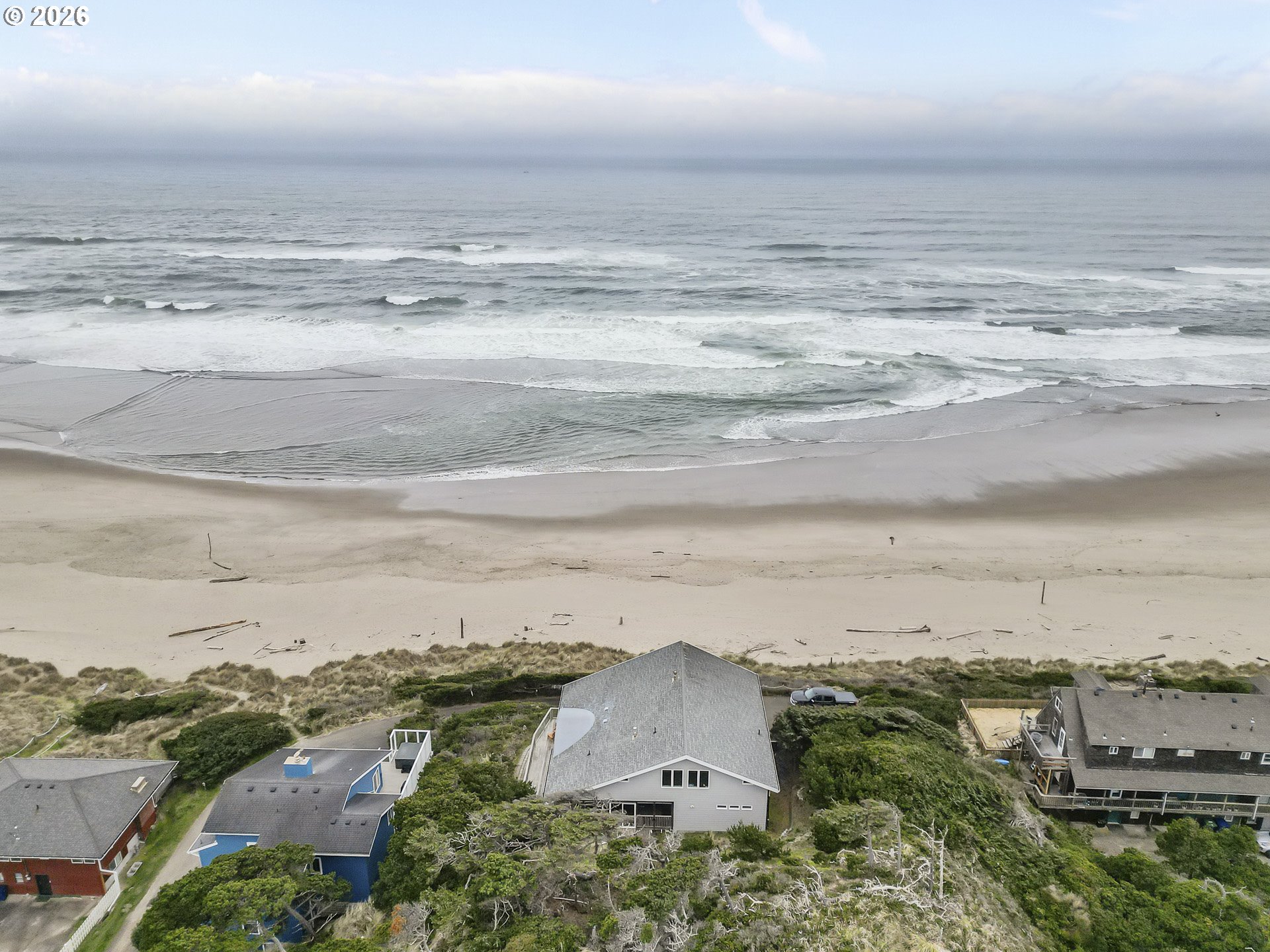 Stunning and thoughtfully curated first time ever offered — a true generational oceanfront estate with 100 feet of direct frontage in the heart of Lincoln City. Elevated 44 feet above sea level and positioned outside the FEMA flood zone, this 3,771 square foot residence was rebuilt in 2011 with structural integrity and long-term coastal resilience in mind.Designed for both elevated coastal living and long-term legacy ownership, the home offers six bedrooms, five bathrooms, and a flexible layout well-suited for multi-generational living or a vacation home. So many possibilities. Expansive ocean views are complemented by a 590 square foot Brazilian hardwood deck and seamless indoor-outdoor living. Enclosed deck off kitchen with hot tub for your enjoyment.Engineered specifically for the Oregon Coast environment, features include 12-inch structurally insulated roof panels (R50+), high wind-rated windows (100 mph), multi-zone radiant floor heating, supplemental forced air gas heat, high-performance windows, energy-efficient hot water design, three 1,100-gallon cistern tank.A double lot provides 100 feet of frontage, direct beach access, an oversized two-car garage, and off-street parking for several vehicles — an exceptionally rare combination for true oceanfront property.Conveniently located near commerce yet privately positioned away from high-traffic areas, this is a premier coastal estate offering elevation, engineering, and enduring value along one of Oregon’s most sought-after stretches of coastline.