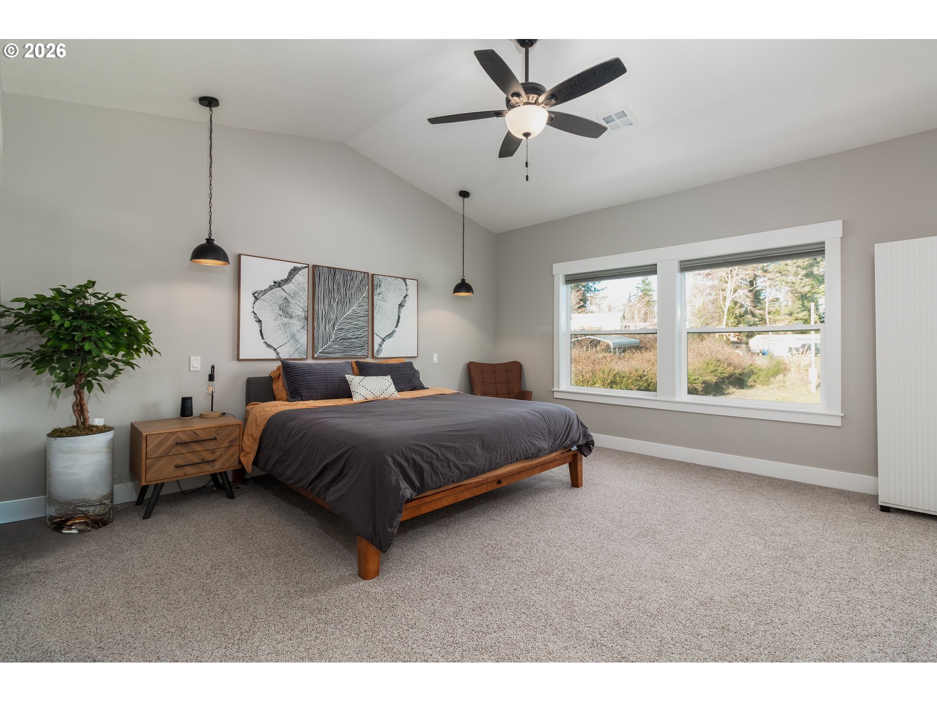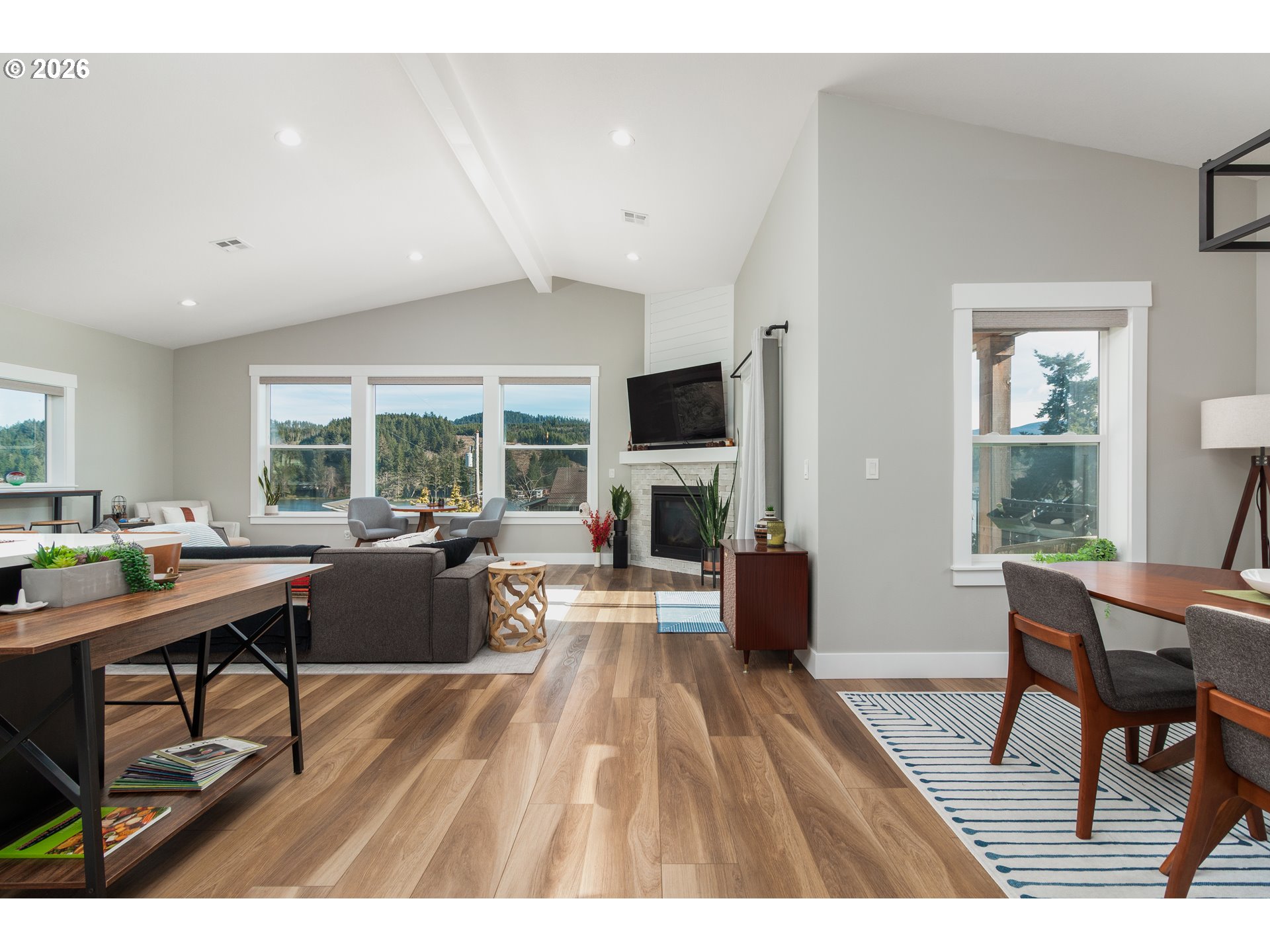 Perched above Devils Lake with breathtaking, unobstructed lake and mountain views, this exceptional 2022 custom-built home offers a rare blend of modern luxury, thoughtful design, and premier location just steps from Regatta Grounds. Enjoy convenient access to boat and SUP launching, scenic nature trails, Spring Lake Open Space, and just one mile to beach access providing effortless enjoyment of both lakefront recreation and ocean living. Designed to showcase the scenery from nearly every vantage point, the second-level great room serves as the centerpiece of the home, featuring abundant natural light, sweeping panoramic views, and a beautifully appointed gourmet kitchen with custom cabinetry, an expansive island, designer tile backsplash, and an elegant dining area ideal for entertaining. Extending the living space, the covered, gas-plumbed view deck includes a Blackstone grill and offers a front-row seat to sunrise, lake activity, and stunning mountain backdrops. The open-concept interior is both refined and inviting, while the primary suite provides a serene private retreat complete with blackout blinds, a spa-inspired en-suite bath, and its own dedicated washer/dryer. A second laundry hookup on the lower level adds flexibility and convenience. A highly desirable coastal upgrade, the home features a dedicated air conditioning system for true year-round forced-air comfort ensuring an ideal interior climate even during warm summer months. Outdoor amenities enhance both lifestyle and functionality, including full RV hookups, flexible RV or boat parking with detachable fence access, a hot tub hookup, and a fully fenced yard. A front yard spigot with hot and cold taps is perfect for rinsing off after lake or beach days, washing vehicles, or pet cleanup.Oversized garage offers generous space for vehicles, storage, and recreational gear, and is wired for electric vehicle charging. A home where elevated design,comfort,and Breathtaking views define the experience.