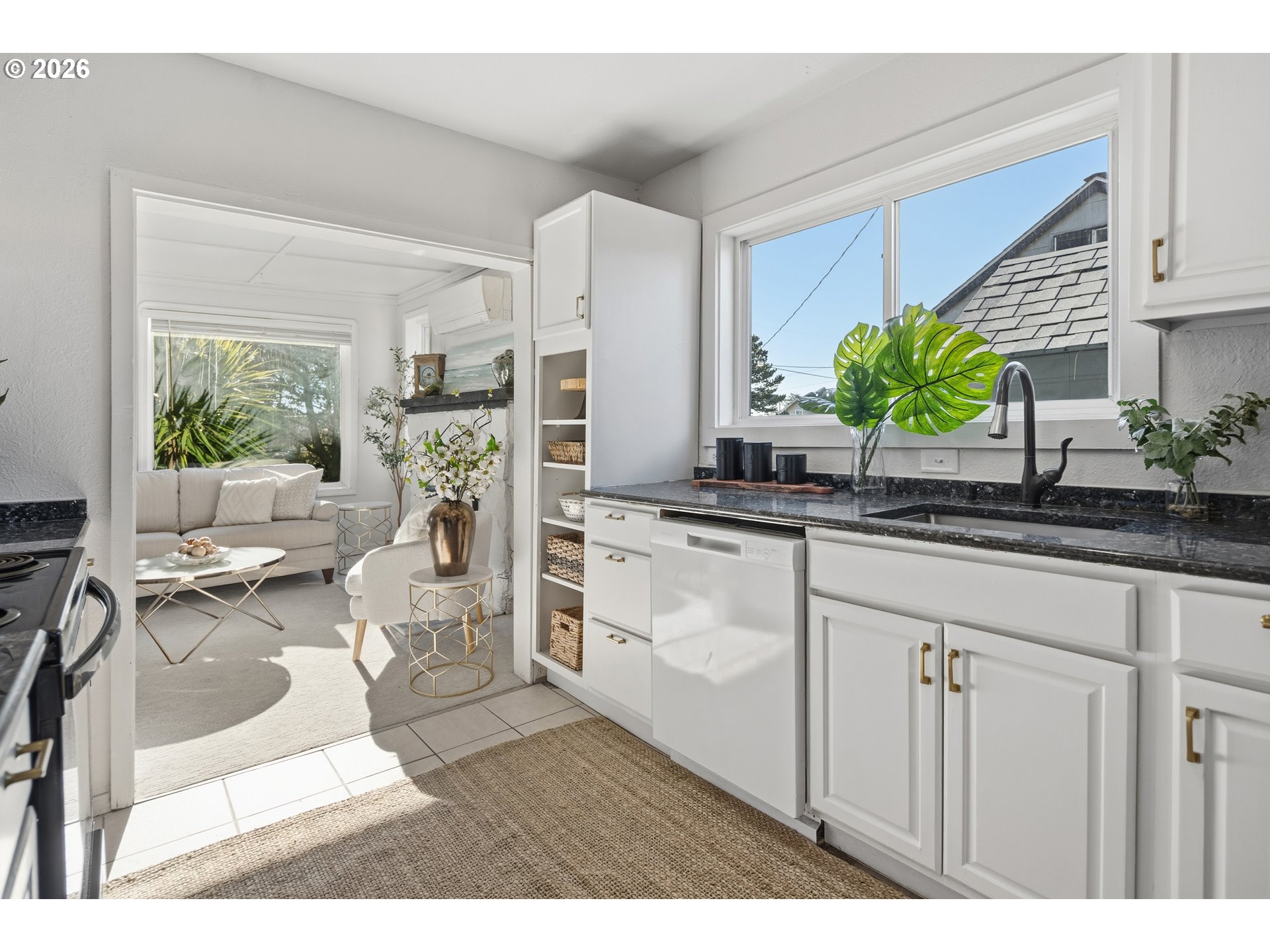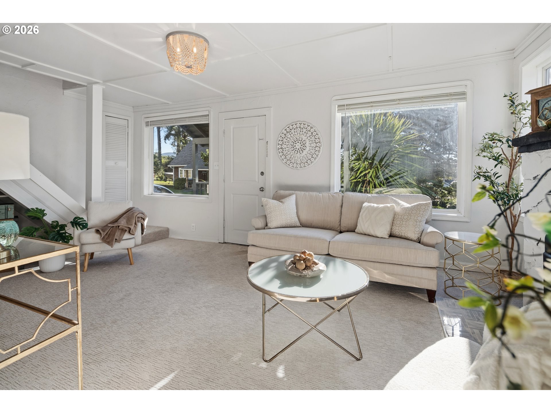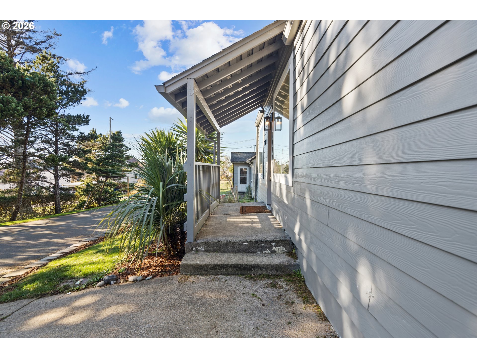Adorable beach bungalow move in ready with three nice bedrooms, oversized main level bedroom. Features, newer siding, windows. New carpets, lighting, fixtures and fresh paint in and out. Large lot with shop and tool shed. Clear day view of ocean from upper bedroom. Minutes walk to downtown. Great home, lot, location and price.