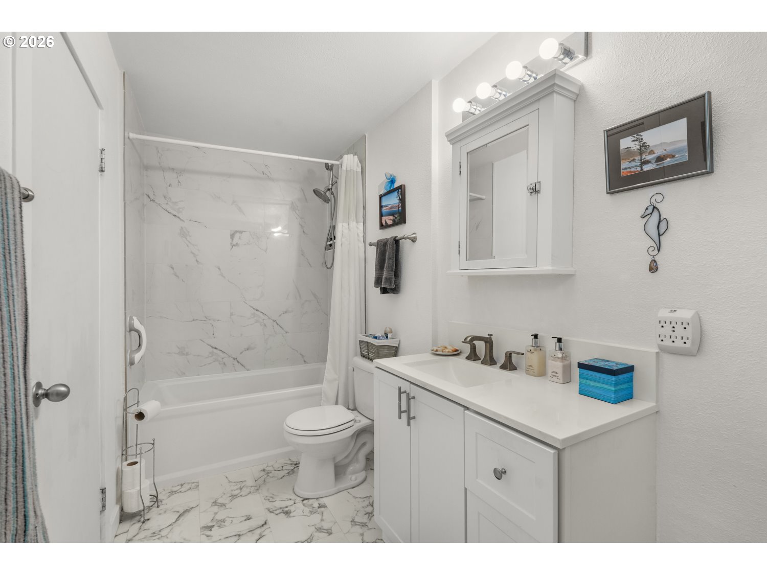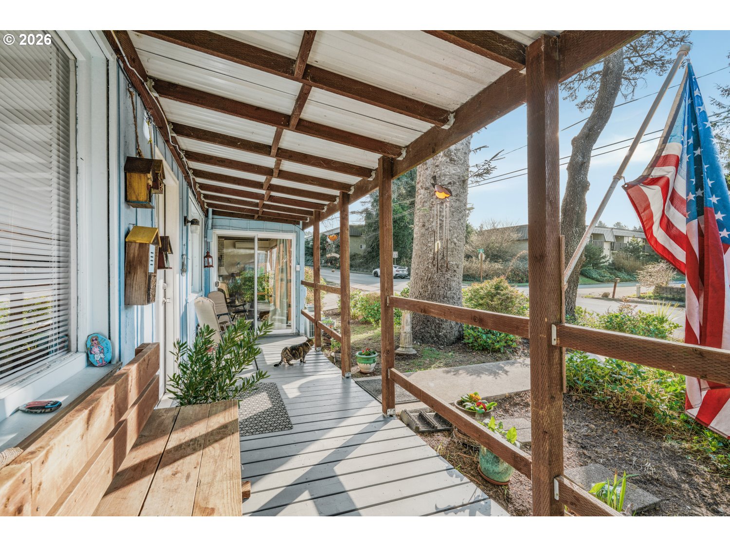 GREAT LOCATION! West of Hwy 101, only a few blocks from the ocean, in the heart of Lincoln City. This inviting 2-bedroom, 1-bath home blends character and function with thoughtful updates throughout. The living room is filled with natural light and showcases gorgeous, beamed ceilings and new laminate flooring, creating a warm, open feel. The kitchen and dining area continue the updated laminate flooring and fresh interior paint, and include a freestanding range, built-in dishwasher, and pantry for everyday convenience. The primary bedroom offers double closets and laminate flooring, while the second bedroom is non-conforming—ideal as a home office, guest space, or flex room. A utility and laundry room off the bathroom adds practicality and provides direct access to the backyard. Outside, enjoy a large yard with an in-ground fire pit—perfect for coastal evenings and entertaining. Close to beach access, shopping, dining, and all that Lincoln City has to offer, this home is a great opportunity for a full-time residence, second home, or coastal getaway.