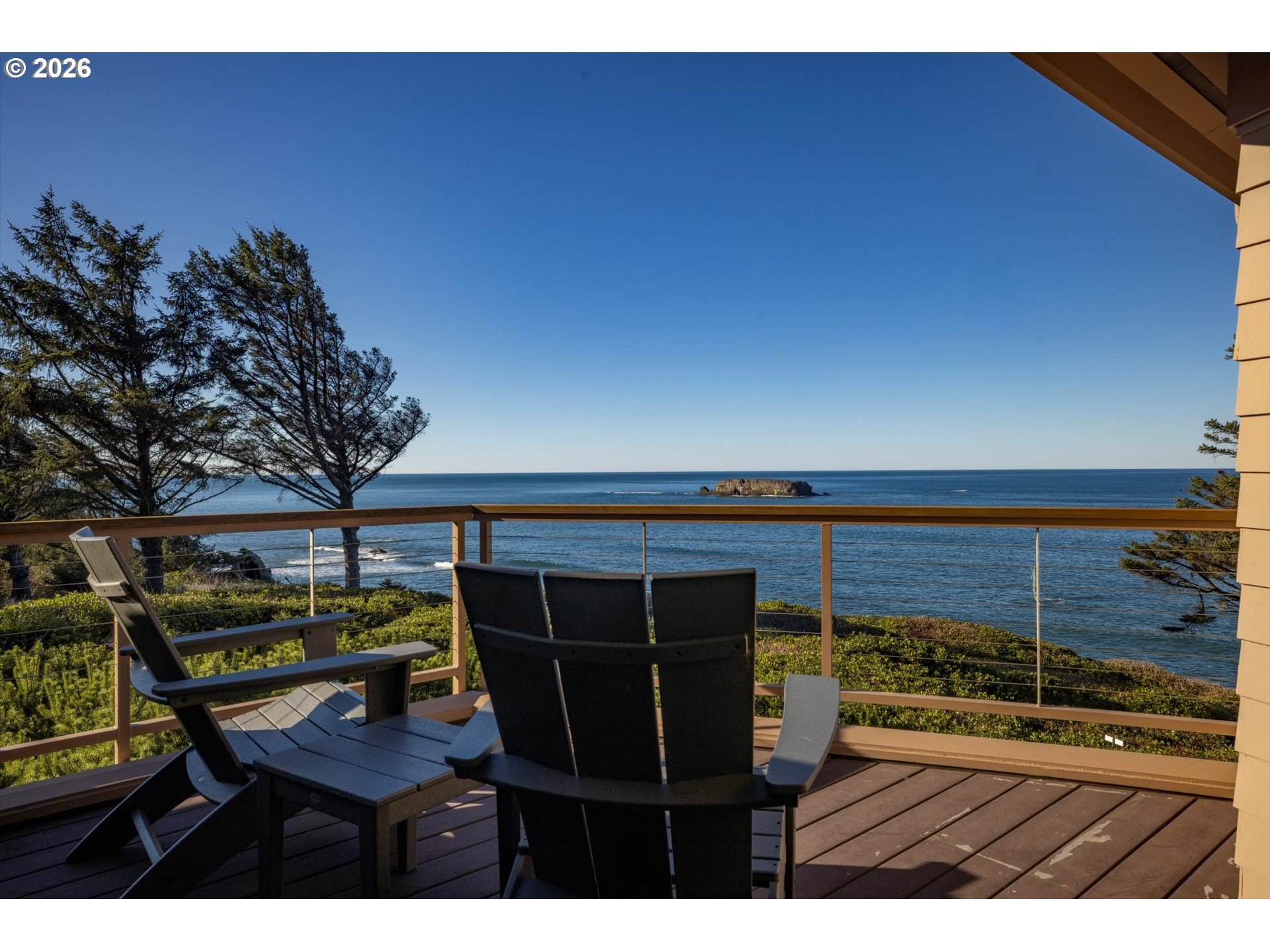 Set along a dramatic stretch of the Central Oregon Coast, this exceptional oceanfront residence offers a front-row seat to sweeping Pacific views, crashing surf, and ever-changing coastal skies. Located within the gated Sea Crest community in Otter Rock, the 3,416-square-foot home was designed by award-winning architect Michael Stueve and thoughtfully refreshed with new interior and exterior paint, updated landscaping, and a new roof. Walls of glass and an expansive deck create seamless indoor-outdoor living, while refined finishes and a light-filled great room with gourmet kitchen make the home ideal for both everyday comfort and entertaining. Three bedrooms, including a newly added main-level guest suite and an upstairs primary suite with ocean views, provide exceptional flexibility for guests or multigenerational living. The property also has two upstairs office spaces that could be converted into one large bedroom or two smaller ones. An adjacent lot under the same ownership is included in the sales price, offering a rare opportunity to enhance privacy or secure additional land in this coveted coastal setting.