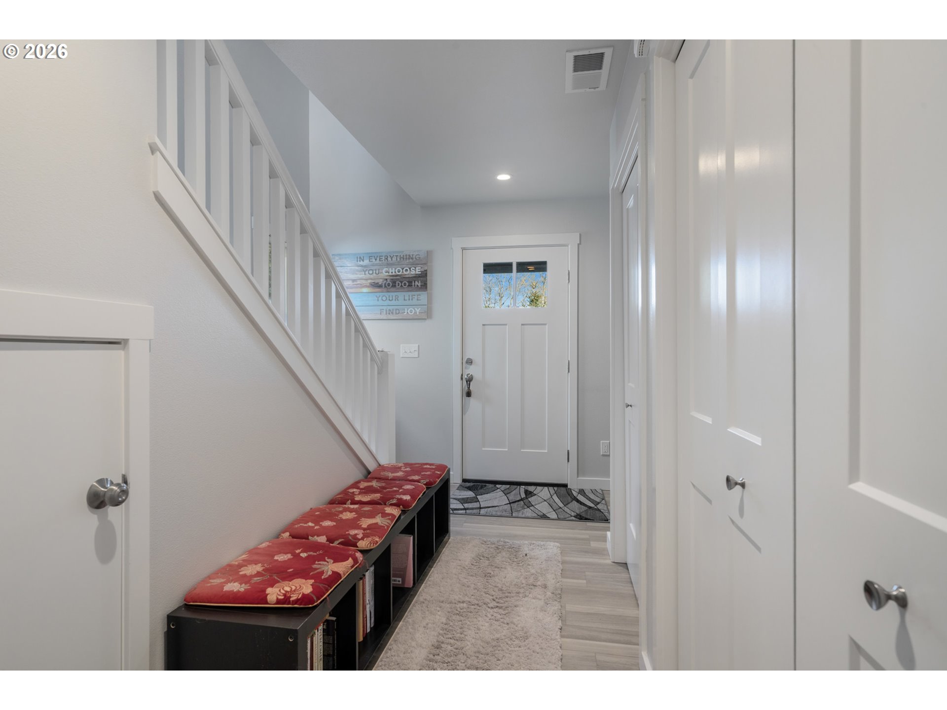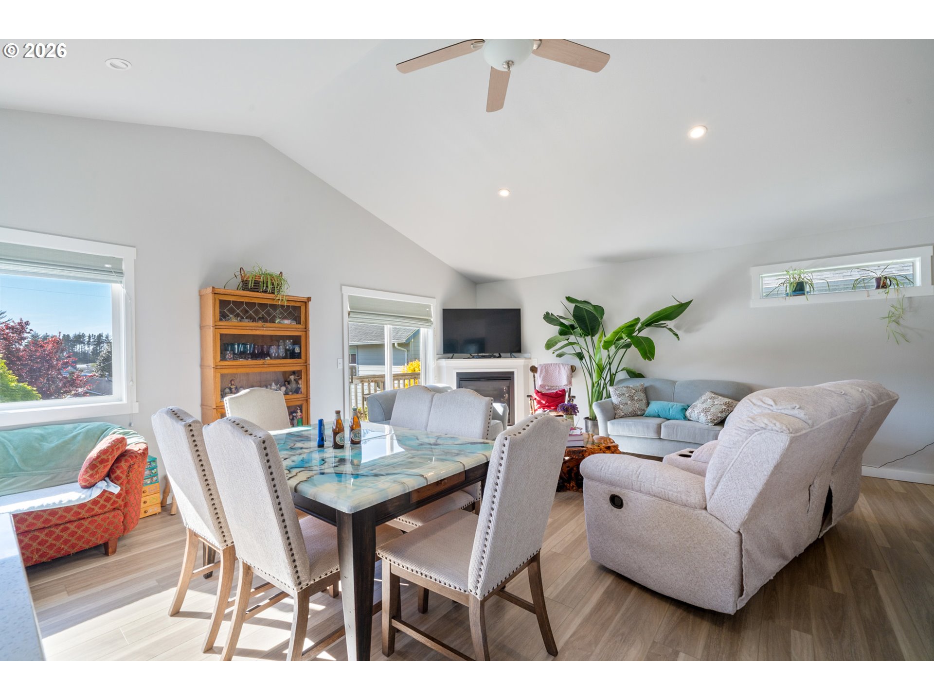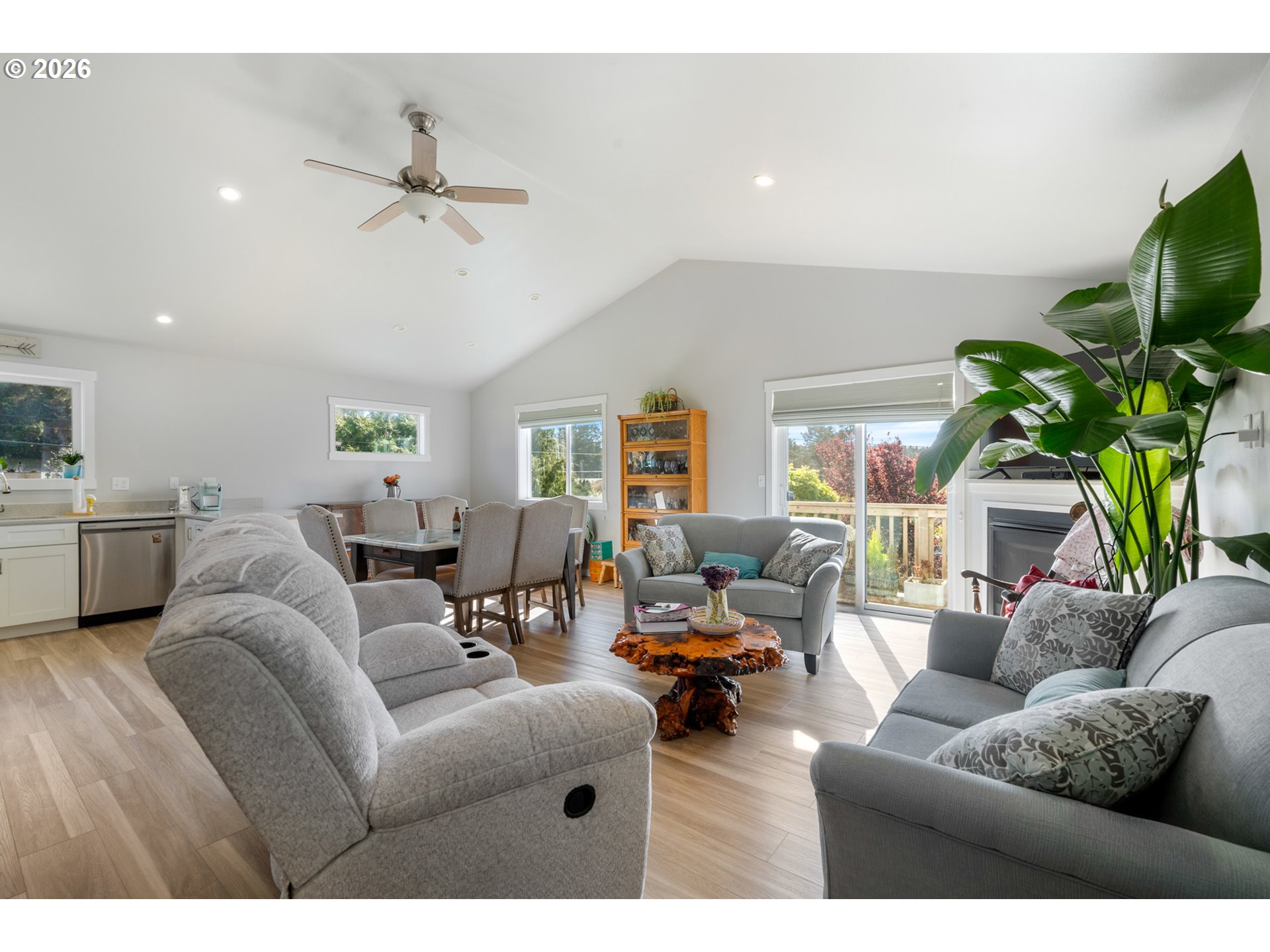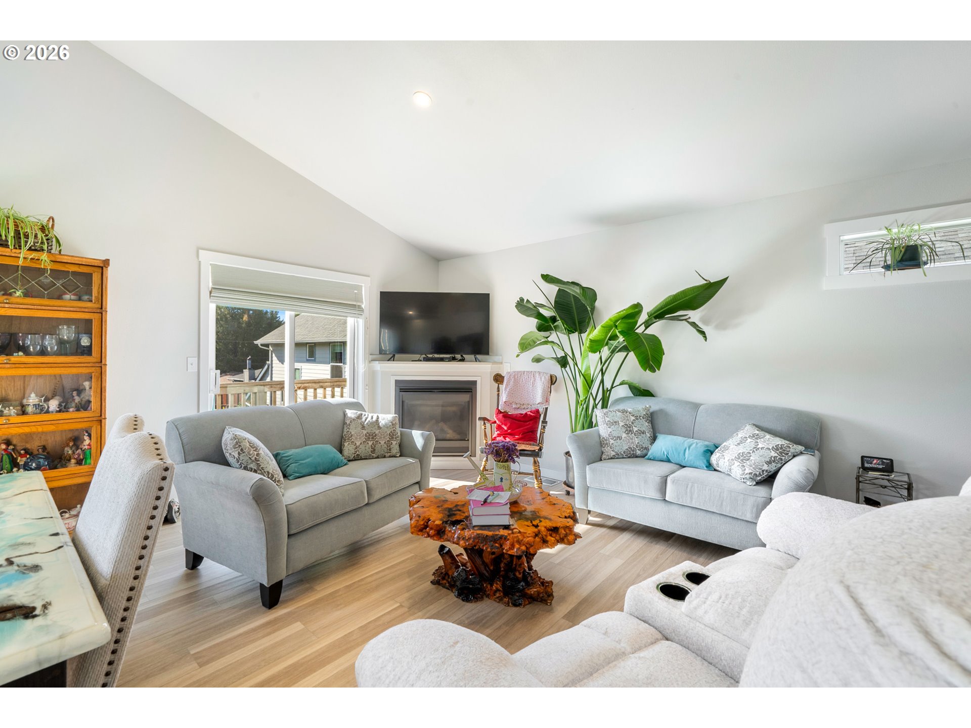 Welcome to this beautifully built 2021 two-story home offering 1,574 SF of light-filled living space in Lincoln City’s sought-after “Eaglet Neighborhood.” Designed for outdoor enthusiasts and nature lovers, this 3-bedroom, 2.5-bath home showcases serene views of a nearby Bald Eagle’s nest right from your window. Enjoy an unbeatable location just a 2-minute walk to the Lincoln City Public Dock, a 4-minute drive to the Devil’s Lake Boardwalk hiking trail—where Devil’s Lake is stocked with fish for a fisherman’s enjoyment—and only 5 minutes to beach and ocean access.Inside, you’ll find durable LVP flooring throughout and a bright, open feel, highlighted by vaulted ceilings in the living room and a cozy gas fireplace—perfect for relaxing on chilly coastal days. Step outside to the deck for gorgeous morning views w/ coffee or sunset relaxation. The kitchen is well-appointed with quartz countertops, an eat-bar, pantry, and stainless steel gas appliances, ideal for both everyday living and entertaining. The spacious owner’s bed features a walk-in closet, and a bath with double sinks.Additional highlights include generously sized bedrooms, a dedicated laundry area with built-ins, a stair chairlift with remote, and a garage equipped with a hot and cold water spigot—perfect for coastal living and cleanup after a day of adventure.