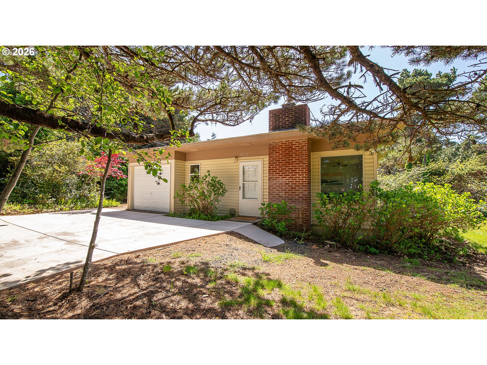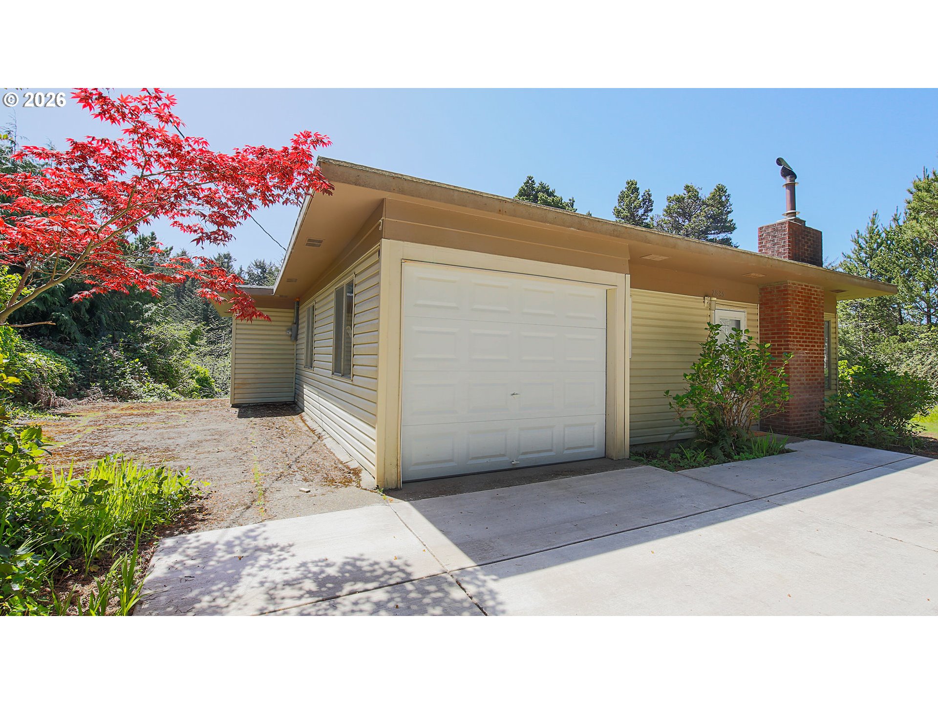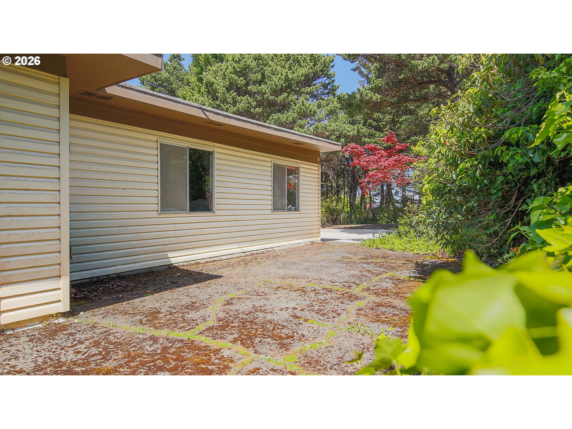 A rare coastal opportunity—this Mid-Century Modern Ranch offers not just a home, but exceptional flexibility with two separate tax lots. Just 0.1 miles from the beach, this one level residence sits on a combined 0.80 acres, offering close proximity to the ocean and a secluded lot that backs to wilderness. Upon entry, the living room features an abundance of natural light and a wood-burning fireplace that brings warmth and character to the living space. The adjacent 0.44-acre parcel is septic approved, presenting an ideal opportunity to build your dream home or create a multi-dwelling retreat. Surrounded by trees, this home truly captures the essence of Waldport, ‘Where The Forest Meets the Sea.’ Don’t miss out on this one-of-a-kind property that hasn’t been up for sale in 20 years.