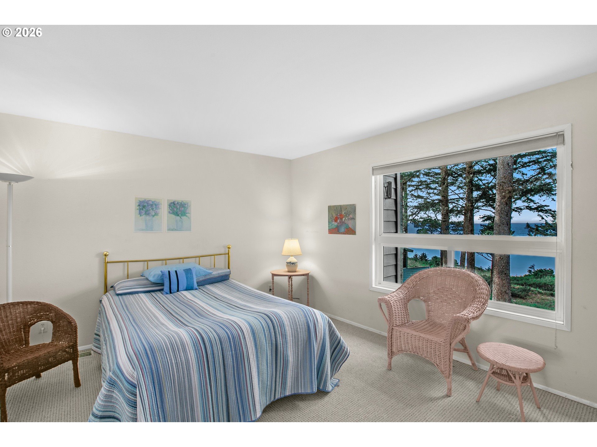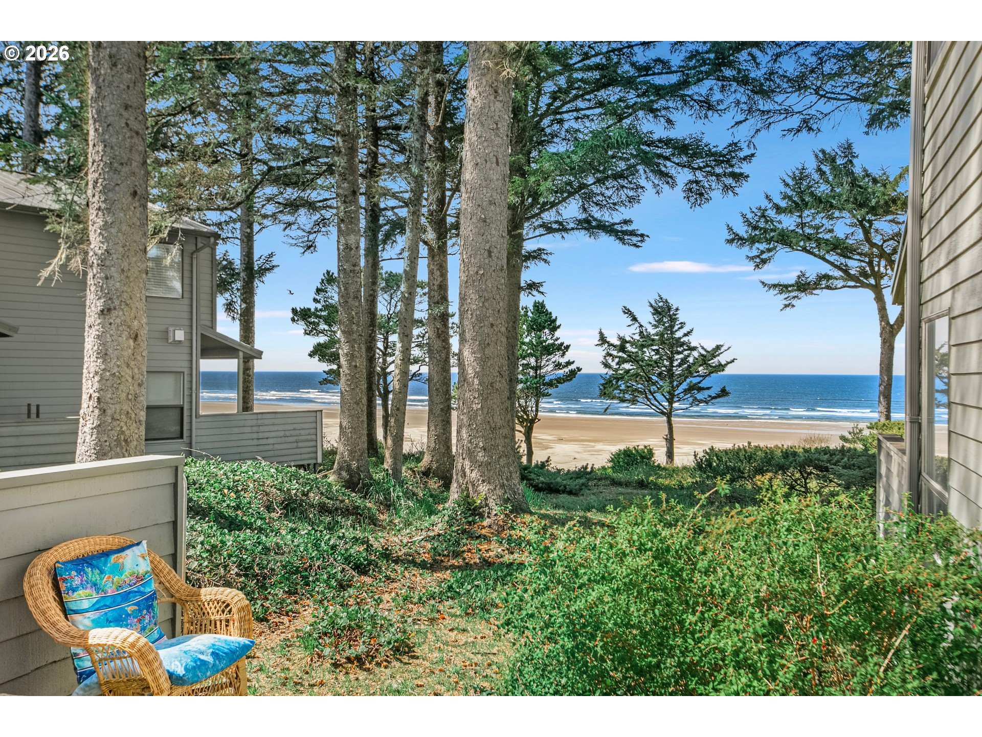 Welcome to your coastal retreat! This beautifully appointed 3 BR/2.5BA condo offers 1277 sq. ft of comfortable living space, perfectly designed to capture STUNNING OCEAN VIEWS from living room, dining room, deck, and upstairs bedroom. Wake up to the sound of the waves and enjoy breathtaking sunsets right from your own home. The open concept living area is filled with natural light and flows seamlessly onto a spacious deck, ideal for entertaining, relaxing, or simply soaking in the serene coastal scenery. The well-designed layout provides both privacy and funtionality. Nestled in a quiet, smaller condo complex, this home offers a peaceful setting surrounded by lush trees, creating a sense of seclusion while still being close to everything you need, and offering a blend of comfort, beauty and tranquility. Lot across the street is owned by the HOA so no one can build there so your view is unobstructed.