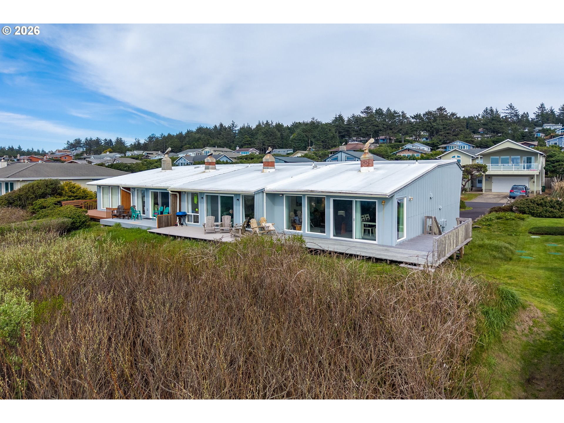 Enjoy breathtaking sunsets and seasonal whale watching from this stunning oceanfront condominium nestled in the highly sought-after Sandpiper neighborhood. Cherished by its original family owners, this beautifully maintained end unit offers 3 bedrooms and 2 full baths across 1,264 square feet. Picture sitting outside on the expansive wrap-around deck, perfectly positioned to capture unobstructed ocean views. Inside, a cozy wood-burning fireplace creates the perfect gathering space after a day on the beach, complemented by a spacious layout. Recent upgrades include new siding and new windows, enhancing both comfort and efficiency. A private trail provides easy access down to the beach, while outside storage adds convenience for all your coastal gear. This is a rare opportunity to own a true oceanfront retreat with, warmth and timeless appeal.