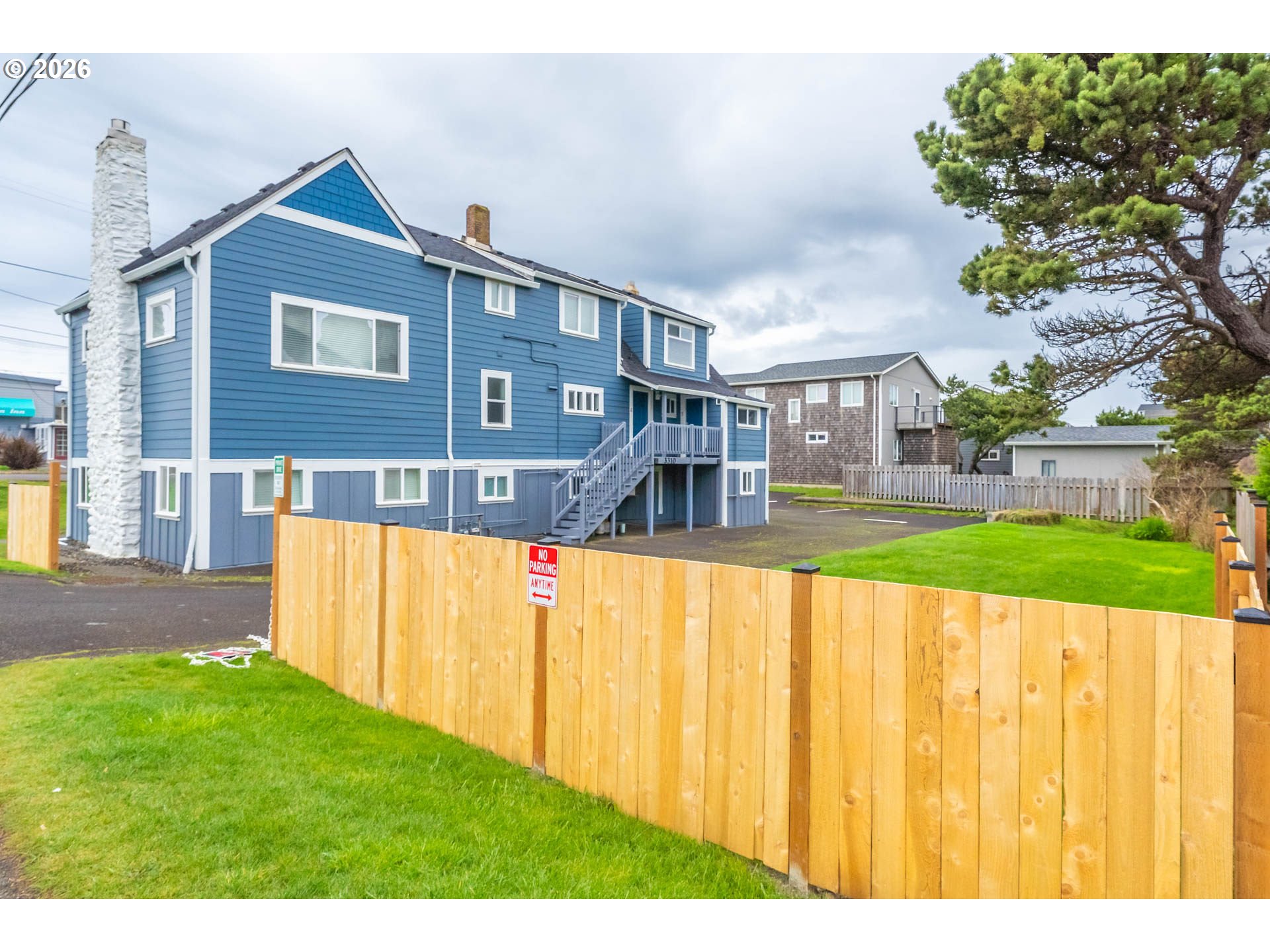 This is an Ocean view Gem! Completely remodeled inside and out. Clean and neat, modern in a wonderful Cape Cod condo. Small with big efficient use of space. 2 bedrooms upstairs, 1 has crashing surf ocean views. Rock fireplace in the living room also has horizon sunsets views. Kitchen and bath room are complete home runs fully tiled new cabinets, toilet, flooring. clean carpet, fresh paint, kitchen is all new, counters, back splash, light fixtures, stainless appliances. This is a must see! Across the street is the public beach access and ocean. You can live here full time or rent monthly. This has a private yard with East side new fencing for a quiet space for you, friends and pets. Building has a common laundry area on site too! You will love this! Unit 1 is also for sale 399,000 and units 1 and 2 may be purchased together for a savings. Easy to show!