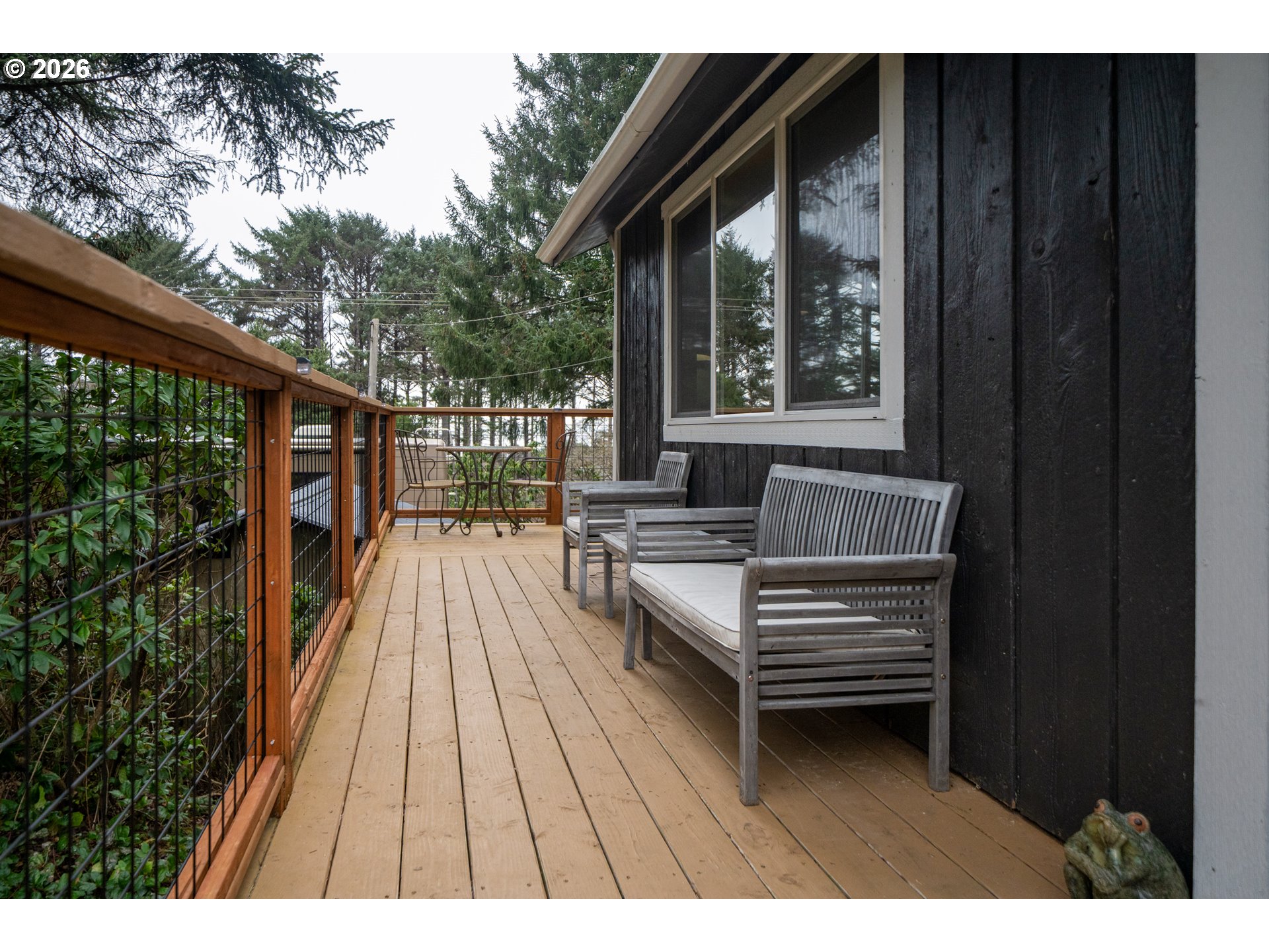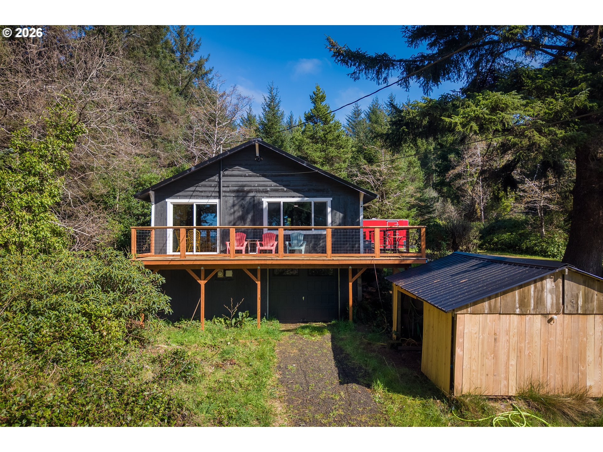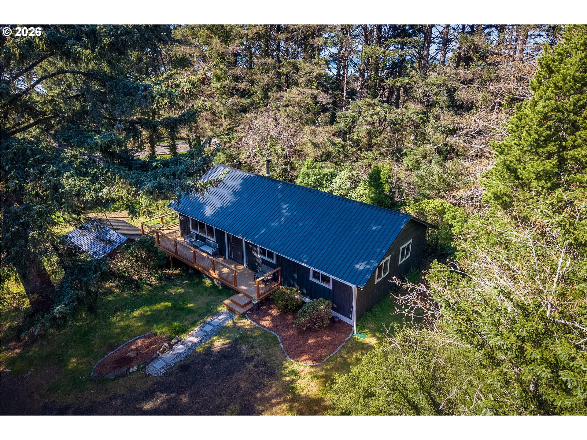 Tucked away in a lush forest setting, this completely remodeled coastal retreat offers the perfect blend of privacy, comfort, and ocean views. Set on .21 acres, this 1,196 SF home features 3 bedrooms and 2 bathrooms, thoughtfully updated with stylish LVP flooring, new carpet, and modern finishes throughout. The inviting kitchen showcases stainless steel appliances, beautiful butcher block countertops, and a warm, functional layout ideal for everyday living or entertaining. Enjoy the expansive wrap-around deck where you can take in peaceful ocean views, listen to the sound of the waves, and enjoy the surrounding greenery in total privacy. The property is rich with natural beauty, including established blueberry bushes and a serene forest backdrop that creates a true coastal escape. Beach access is across the Hwy. Additional highlights include RV hookup and a spacious 3-car garage, offering ample room for vehicles, toys, and storage. Whether you're looking for a full-time residence, vacation getaway, or investment opportunity, this home captures the essence of coastal living with comfort and seclusion.