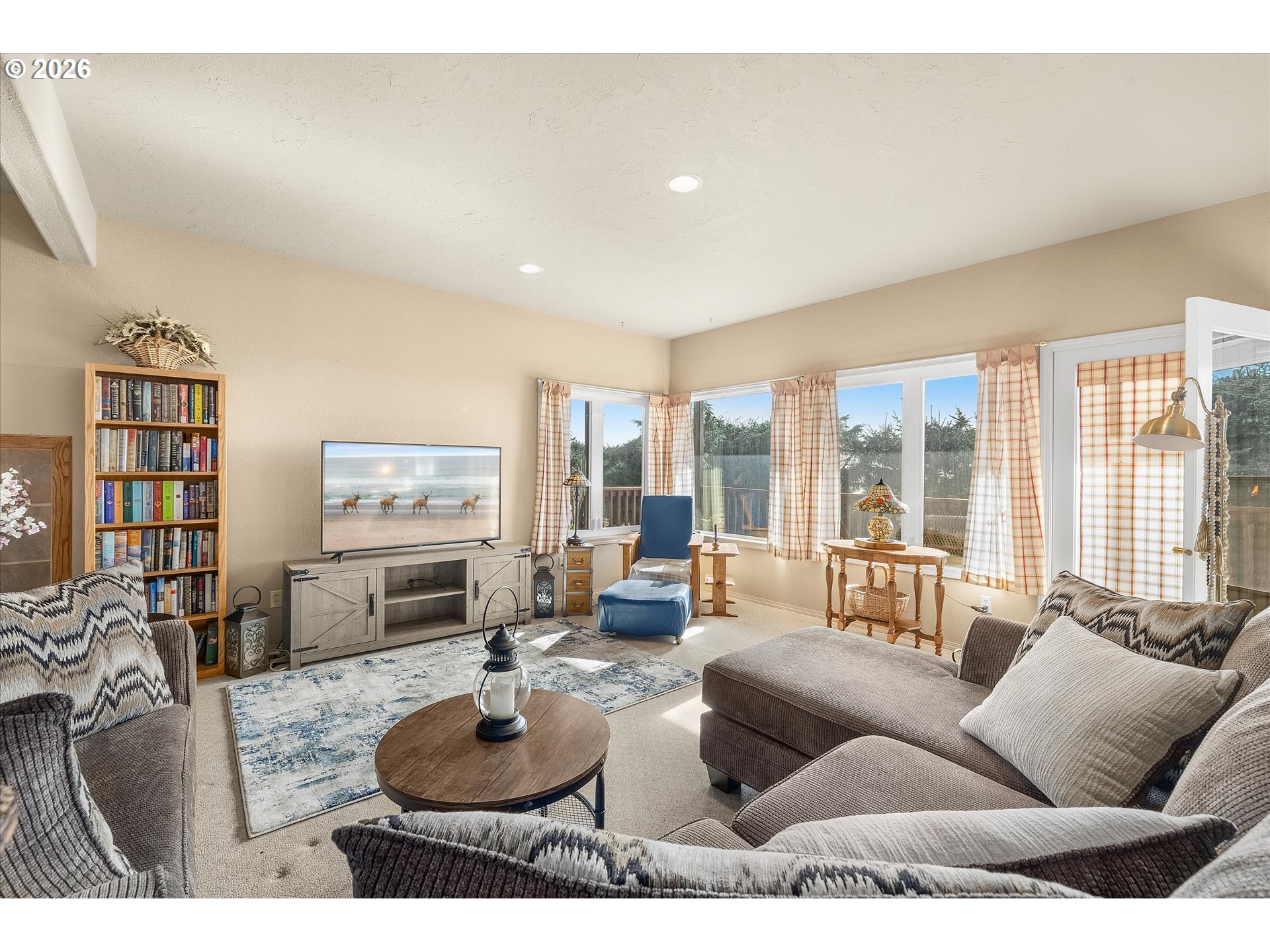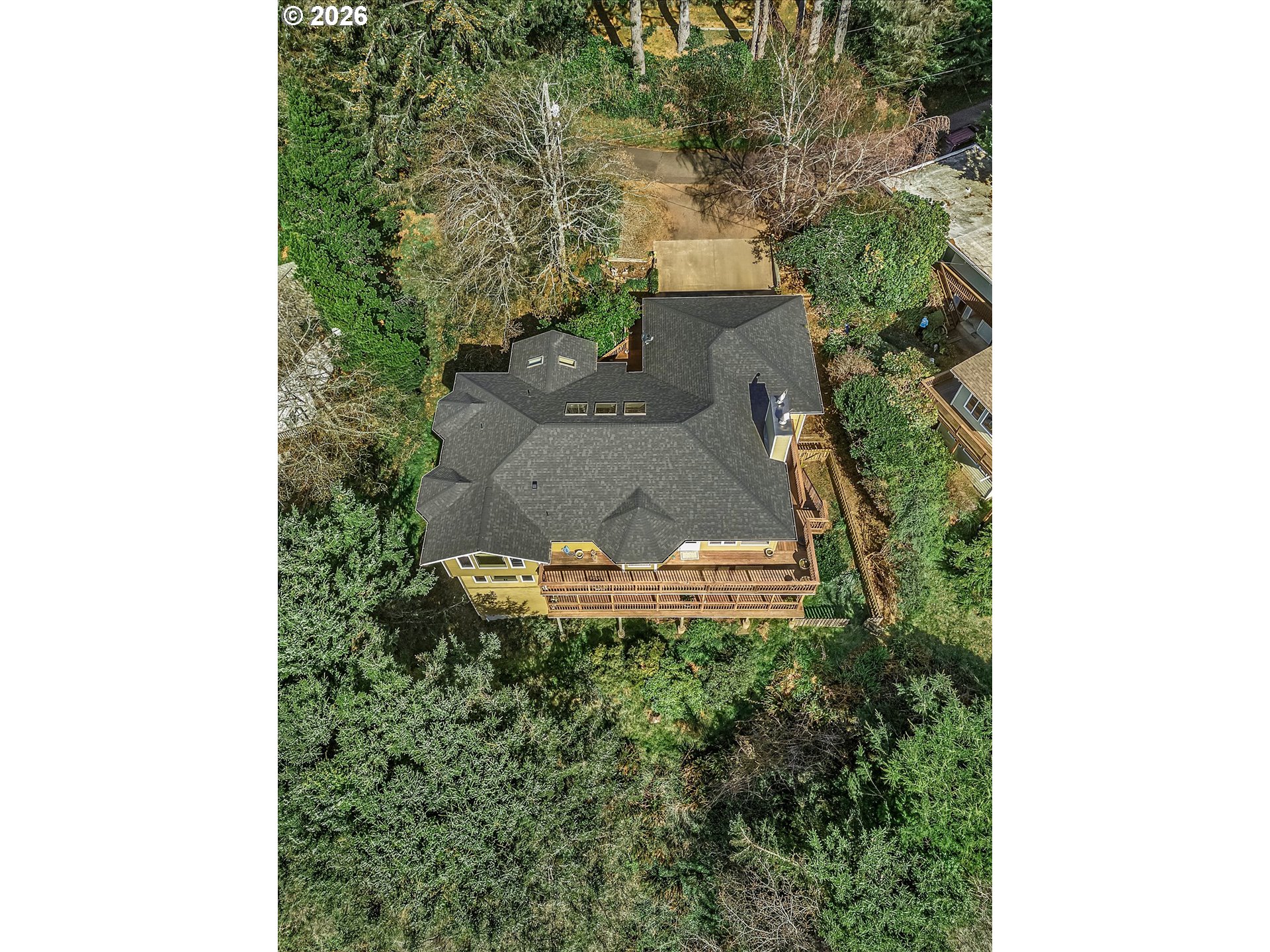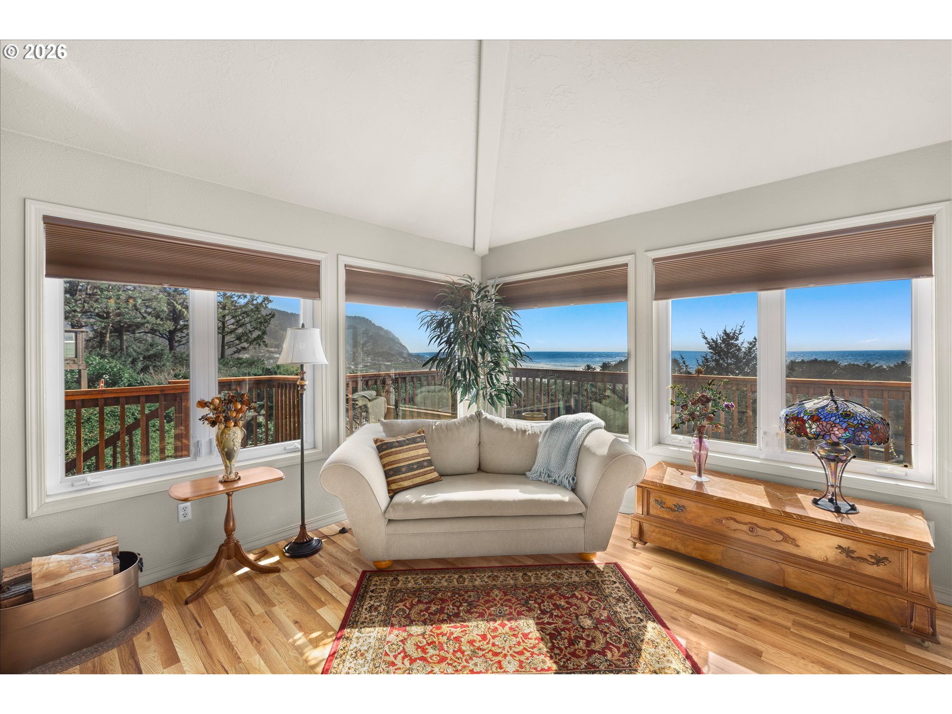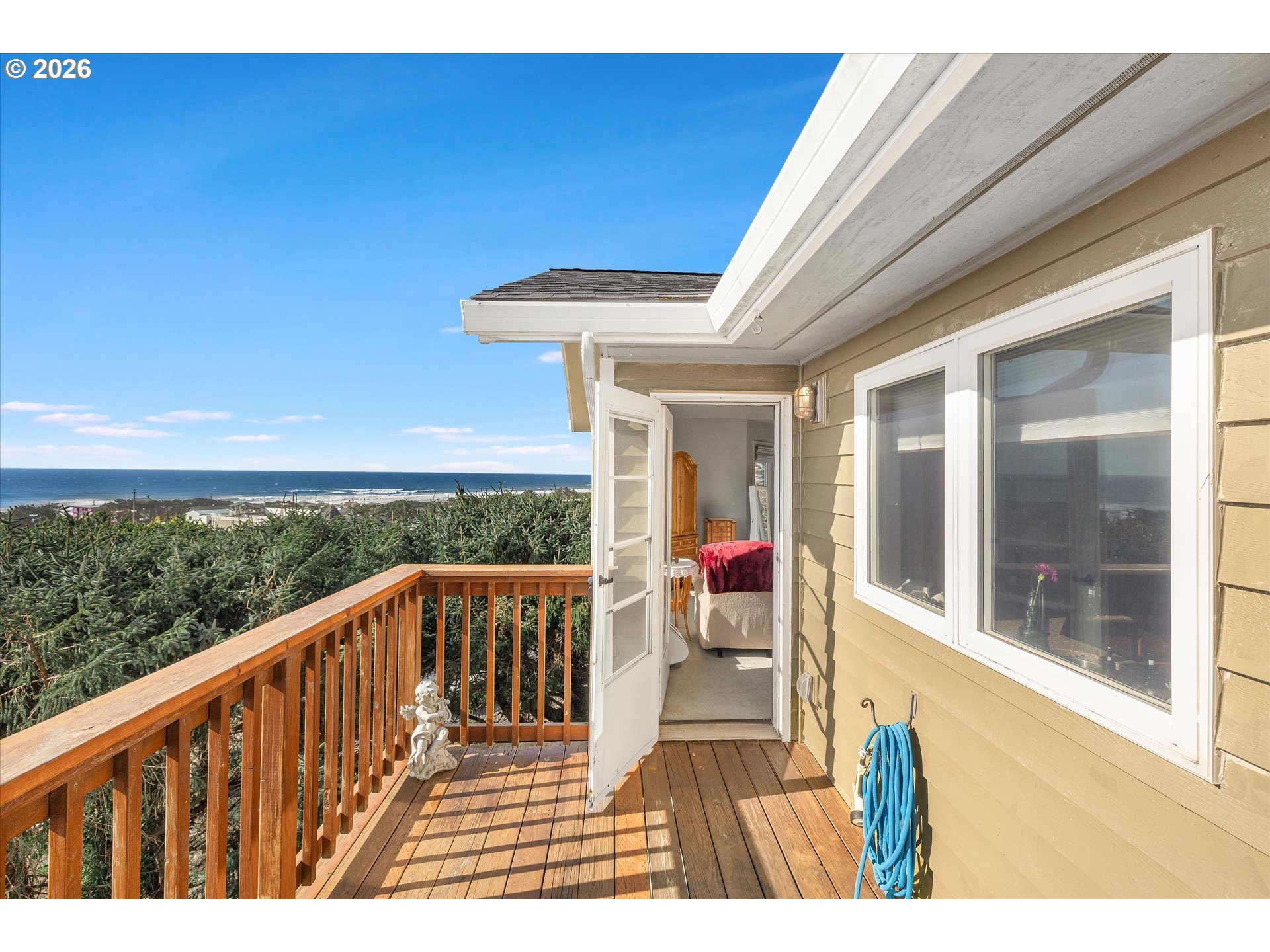 Perched in the heart of Yachats, this custom 3,820 sq ft home captures sweeping ocean views and offers effortless access to the village's shops, dining, and scenic coastline. Thoughtfully designed for both comfort and entertaining, this 3-bedroom, 3.5-bath residence blends coastal charm with spacious living. The main level, conveniently accessible from the street, features an open-concept layout with vaulted ceilings, expansive windows, and abundant natural light. The living area is anchored by a cozy fireplace, while the gourmet kitchen showcases quartz countertops, custom cabinetry, and generous workspace—ideal for gatherings and everyday living. Step outside to the expansive wraparound deck, perfect for taking in stunning ocean vistas and fresh coastal air. The lower level provides additional living space, including a large family room and well-appointed guest accommodations, along with access to a second wraparound deck that extends the home's outdoor living. A substantial 728 sq ft finished storage area adds even more versatility. Situated on two lots, this property offers a rare combination of privacy and a central location in one of Yachats' most desirable areas. A new roof in 2023 adds peace of mind, complementing the home's thoughtful design and exceptional coastal location.