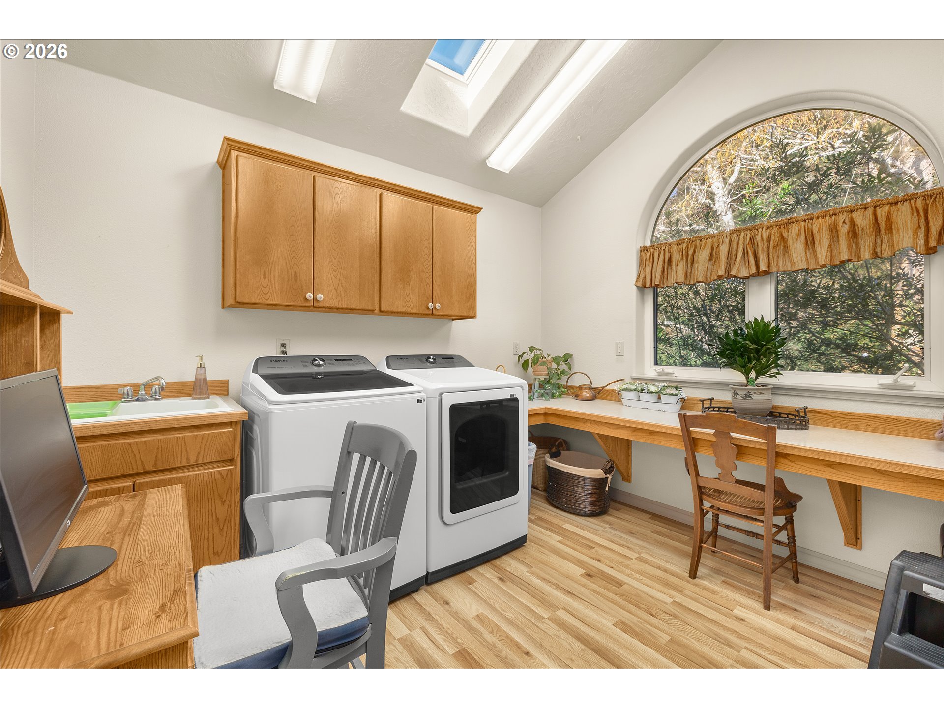 CeilingFan, GarageDoorOpener, JettedTub, LaminateFlooring, Laundry, Quartz, Skylight, TileFloor, VaultedCeil