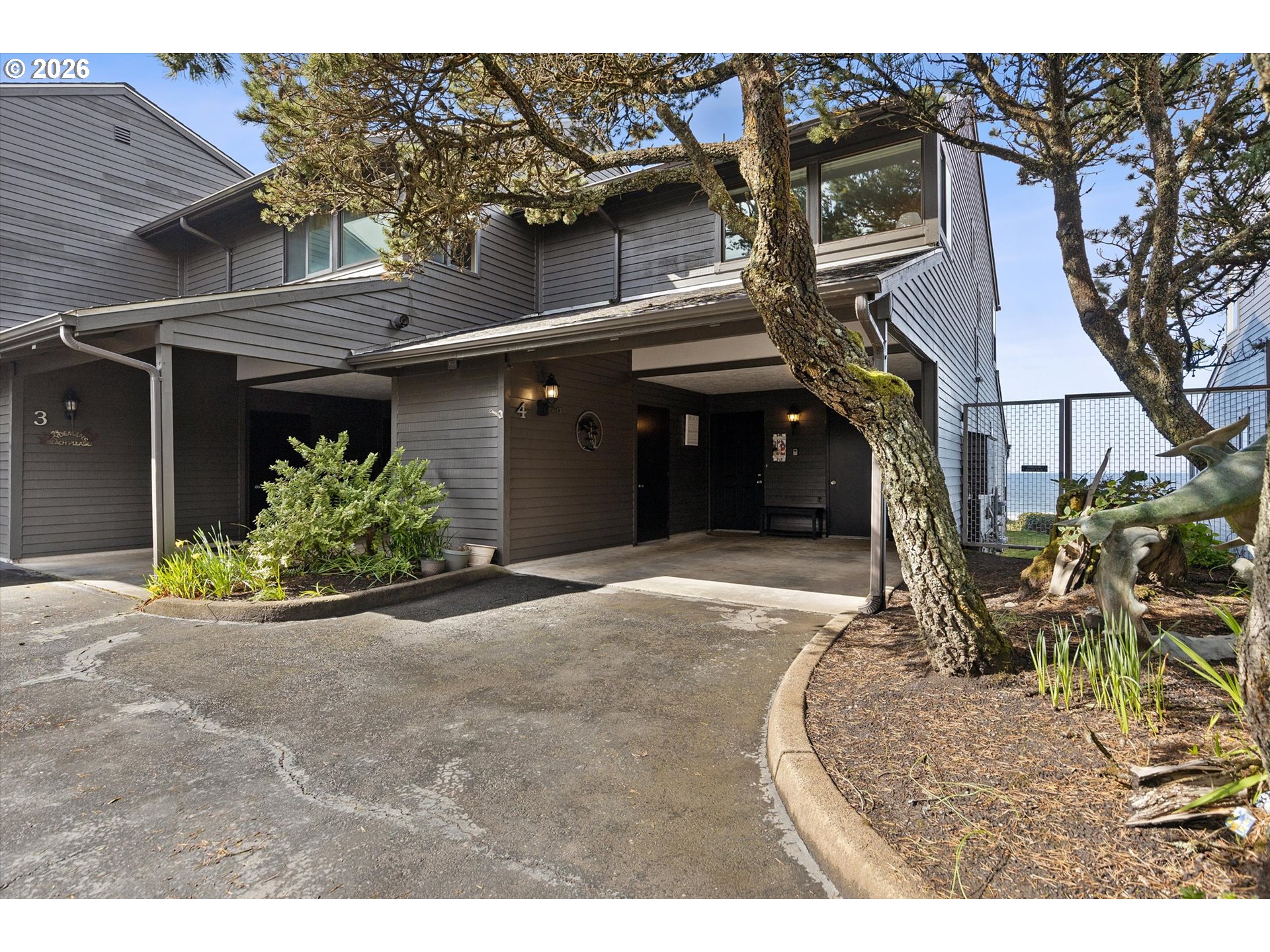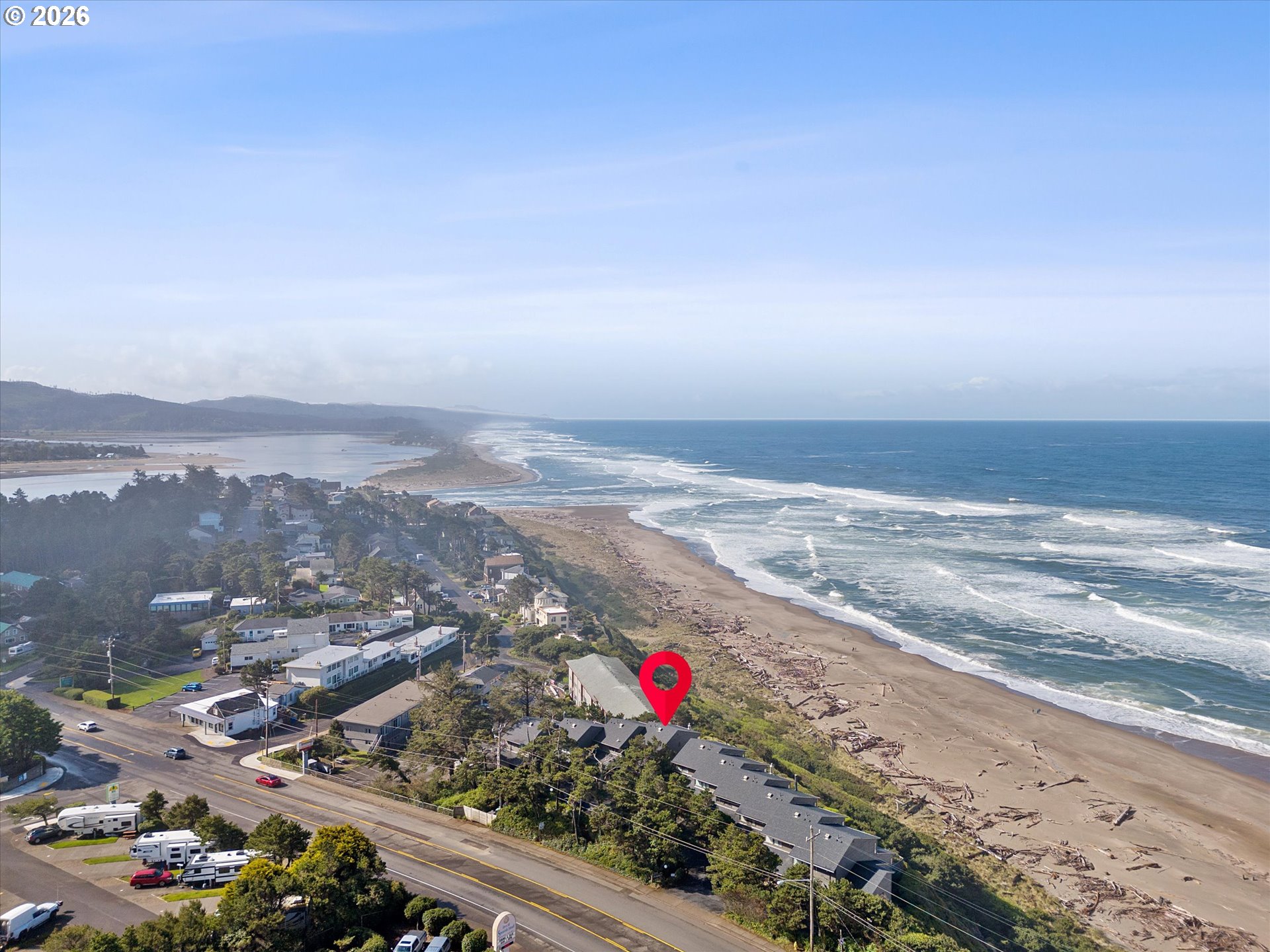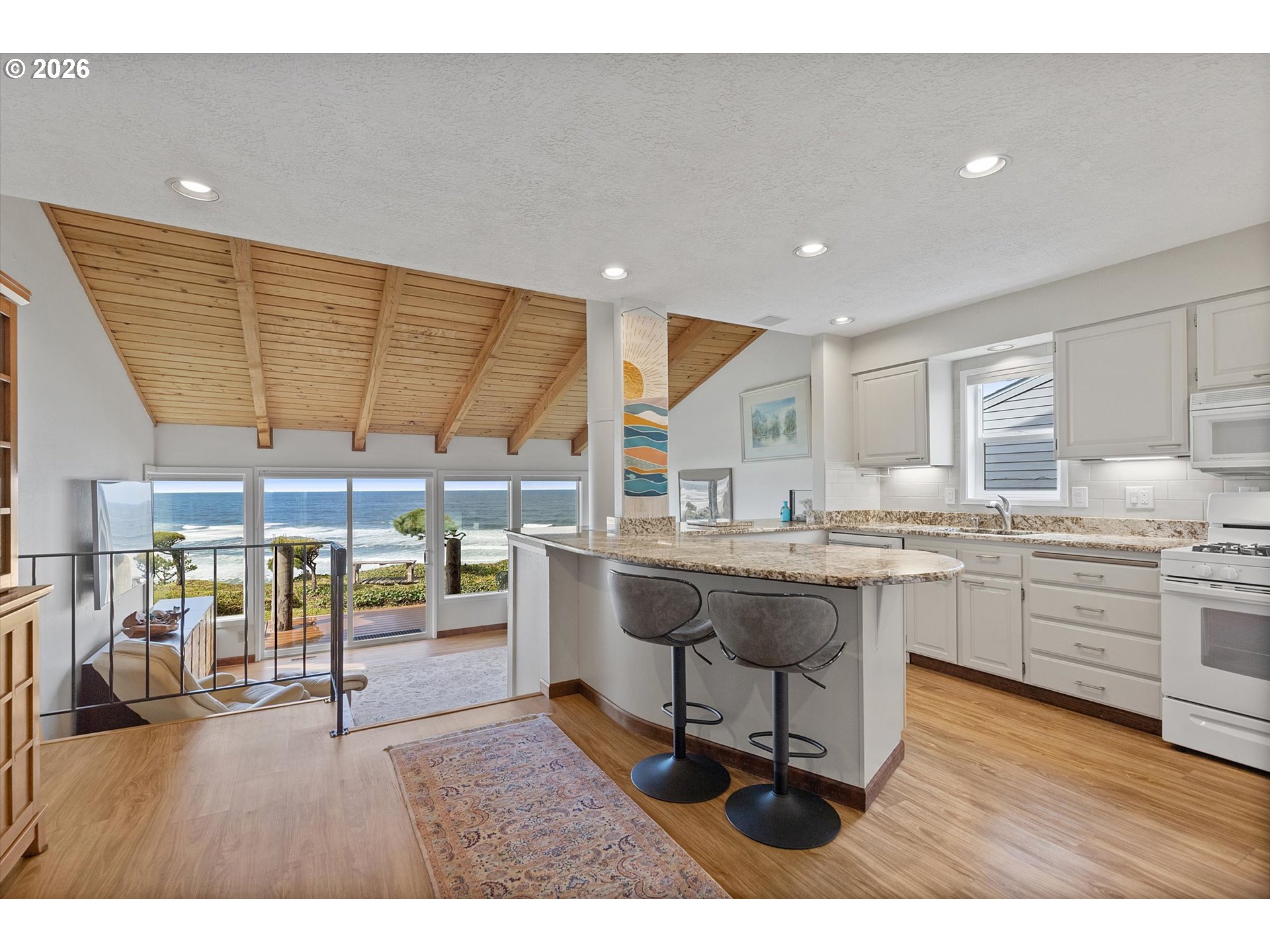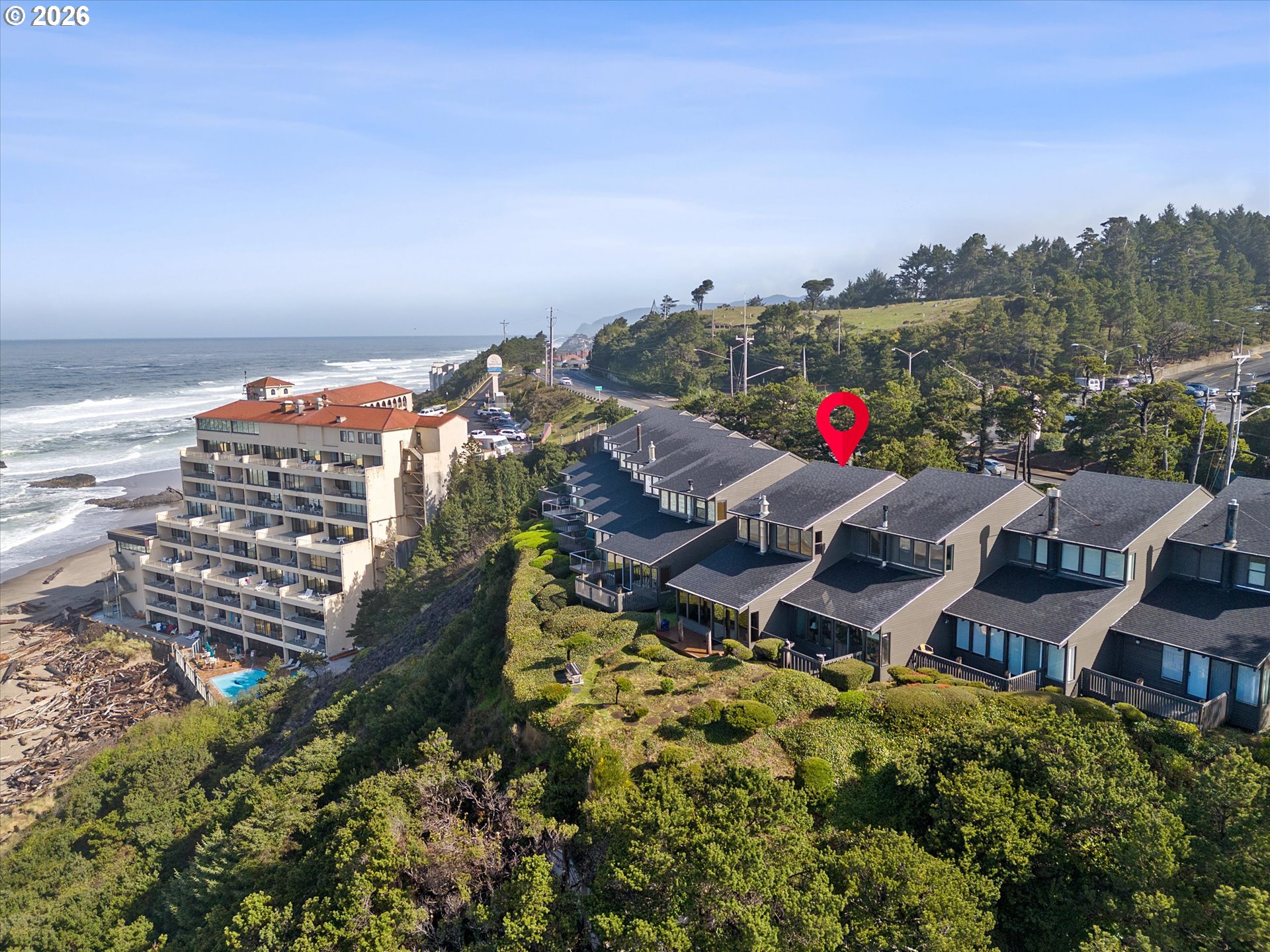 WORLD CLASS PANORAMIC VIEWS of the mighty Pacific Ocean, Taft beach all the way to Boiler Bay State Park from this premier OCEAN FRONT Condo. Experience the endless sunsets and ultimate coastal living this summer. Exceptional 2 bedroom, END UNIT with wall to wall windows in the primary bedroom and living room. Renovated and updated!! Kitchen features gorgeous granite countertops, tile backsplash, under cabinet lighting and gas cooktop. Living room has a slider leading to the deck and a cozy gas fireplace. Upstairs the large guest bedroom has a walk in closet. Primary bedroom has breathtaking views! Upstairs bath has been fully remodeled with a step-in tile shower. LVP Flooring throughout and new carpet on the stairs. Full size Laundry and plenty of storage. Two additional private storage closets and covered carport. This is an unrivaled ownership opportunity of only 10 units, the last sale in the complex was in 2019. New roof was completed in 2022 and exterior painting/caulking in 2025. Low monthly HOA fees of $350/month. Private stairs to the beach, well-maintained grounds and parking. A fantastic second home opportunity or live here full-time! No rentals allowed. Located high above the Tsunami zone but close to all the Taft Beach activities of glass blowing, food trucks, grocery market and coffee shops!