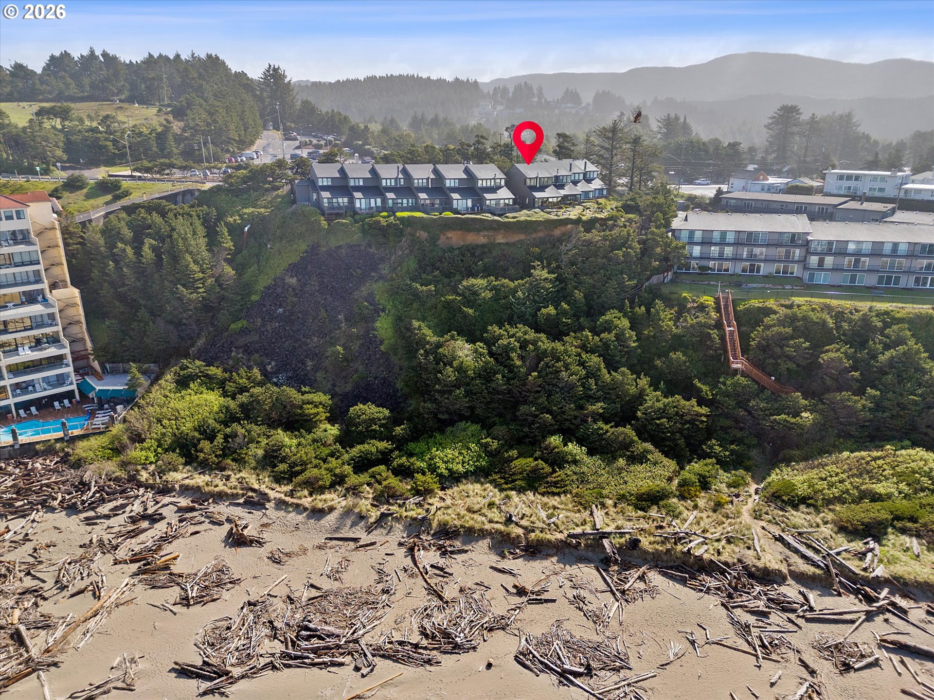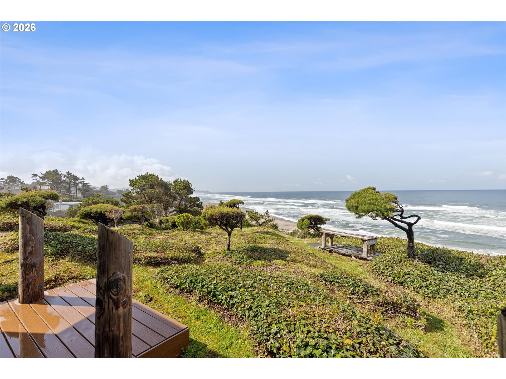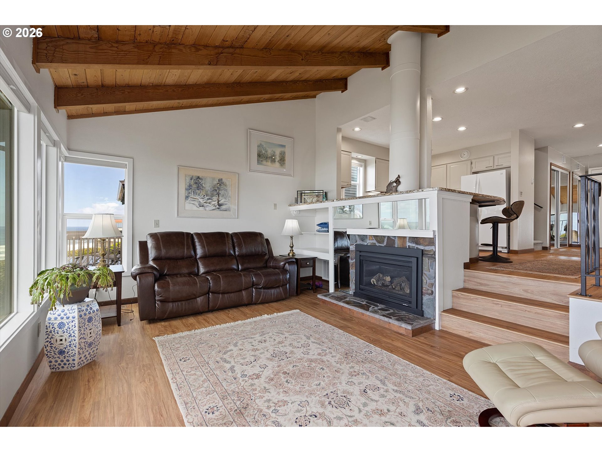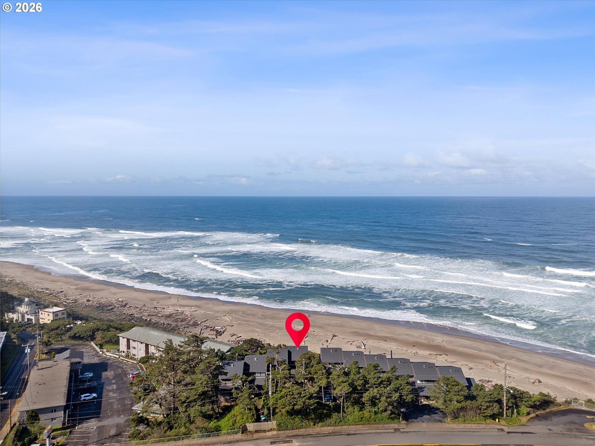 WORLD CLASS PANORAMIC VIEWS of the mighty Pacific Ocean, Taft beach all the way to Boiler Bay State Park from this premier OCEAN FRONT Condo. Experience the endless sunsets and ultimate coastal living this summer. Exceptional 2 bedroom, END UNIT with wall to wall windows in the primary bedroom and living room. Renovated and updated!! Kitchen features gorgeous granite countertops, tile backsplash, under cabinet lighting and gas cooktop. Living room has a slider leading to the deck and a cozy gas fireplace. Upstairs the large guest bedroom has a walk in closet. Primary bedroom has breathtaking views! Upstairs bath has been fully remodeled with a step-in tile shower. LVP Flooring throughout and new carpet on the stairs. Full size Laundry and plenty of storage. Two additional private storage closets and covered carport. This is an unrivaled ownership opportunity of only 10 units, the last sale in the complex was in 2019. New roof was completed in 2022 and exterior painting/caulking in 2025. Low monthly HOA fees of $350/month. Private stairs to the beach, well-maintained grounds and parking. A fantastic second home opportunity or live here full-time! No rentals allowed. Located high above the Tsunami zone but close to all the Taft Beach activities of glass blowing, food trucks, grocery market and coffee shops!