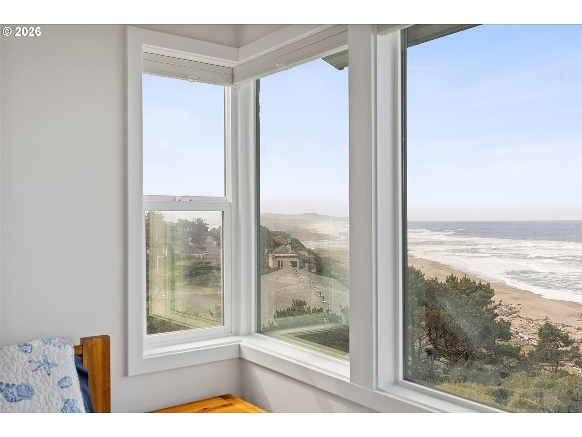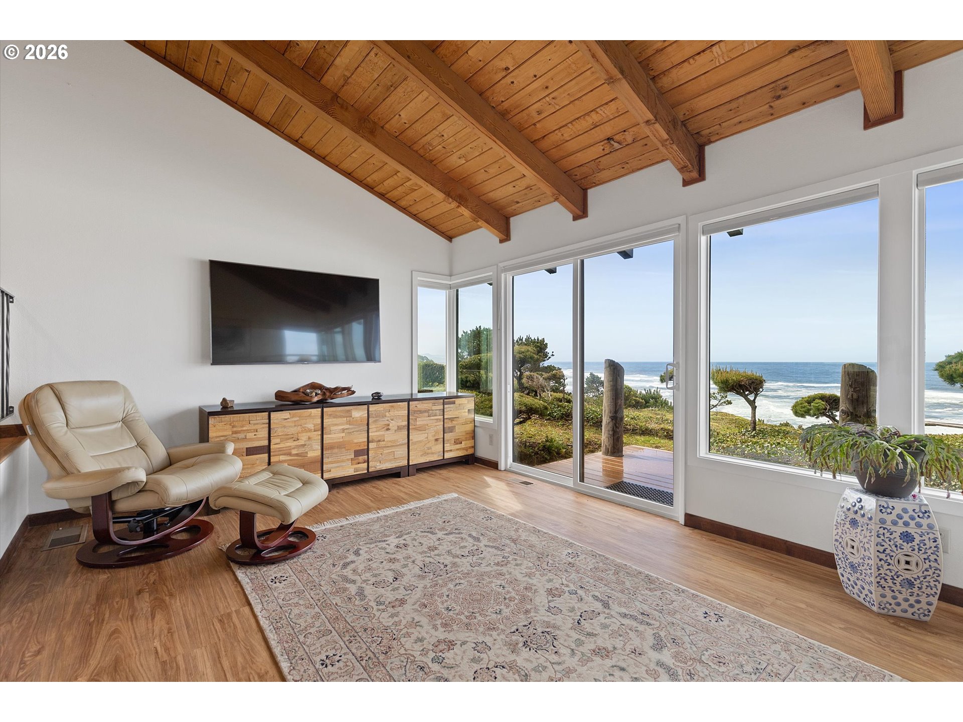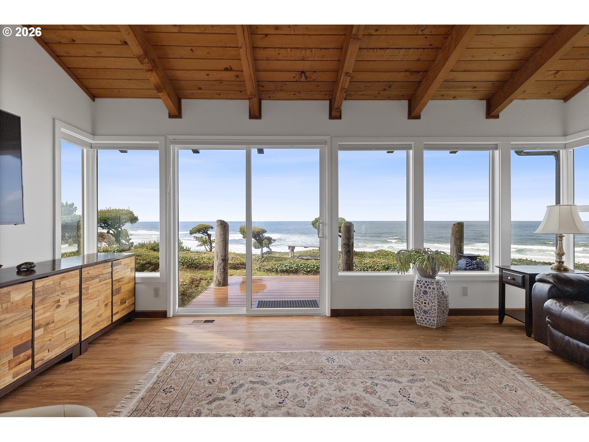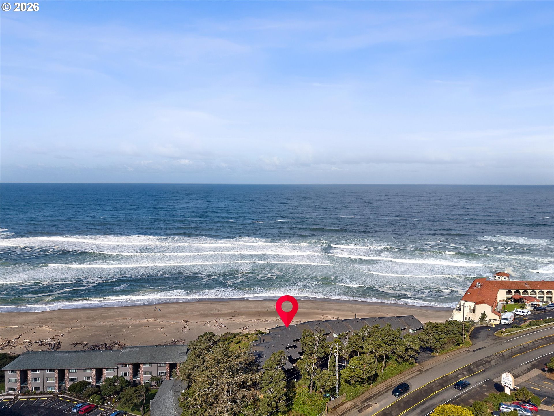 WORLD CLASS PANORAMIC VIEWS of the mighty Pacific Ocean, Taft beach all the way to Boiler Bay State Park from this premier OCEAN FRONT Condo. Experience the endless sunsets and ultimate coastal living this summer. Exceptional 2 bedroom, END UNIT with wall to wall windows in the primary bedroom and living room. Renovated and updated!! Kitchen features gorgeous granite countertops, tile backsplash, under cabinet lighting and gas cooktop. Living room has a slider leading to the deck and a cozy gas fireplace. Upstairs the large guest bedroom has a walk in closet. Primary bedroom has breathtaking views! Upstairs bath has been fully remodeled with a step-in tile shower. LVP Flooring throughout and new carpet on the stairs. Full size Laundry and plenty of storage. Two additional private storage closets and covered carport. This is an unrivaled ownership opportunity of only 10 units, the last sale in the complex was in 2019. New roof was completed in 2022 and exterior painting/caulking in 2025. Low monthly HOA fees of $350/month. Private stairs to the beach, well-maintained grounds and parking. A fantastic second home opportunity or live here full-time! No rentals allowed. Located high above the Tsunami zone but close to all the Taft Beach activities of glass blowing, food trucks, grocery market and coffee shops!