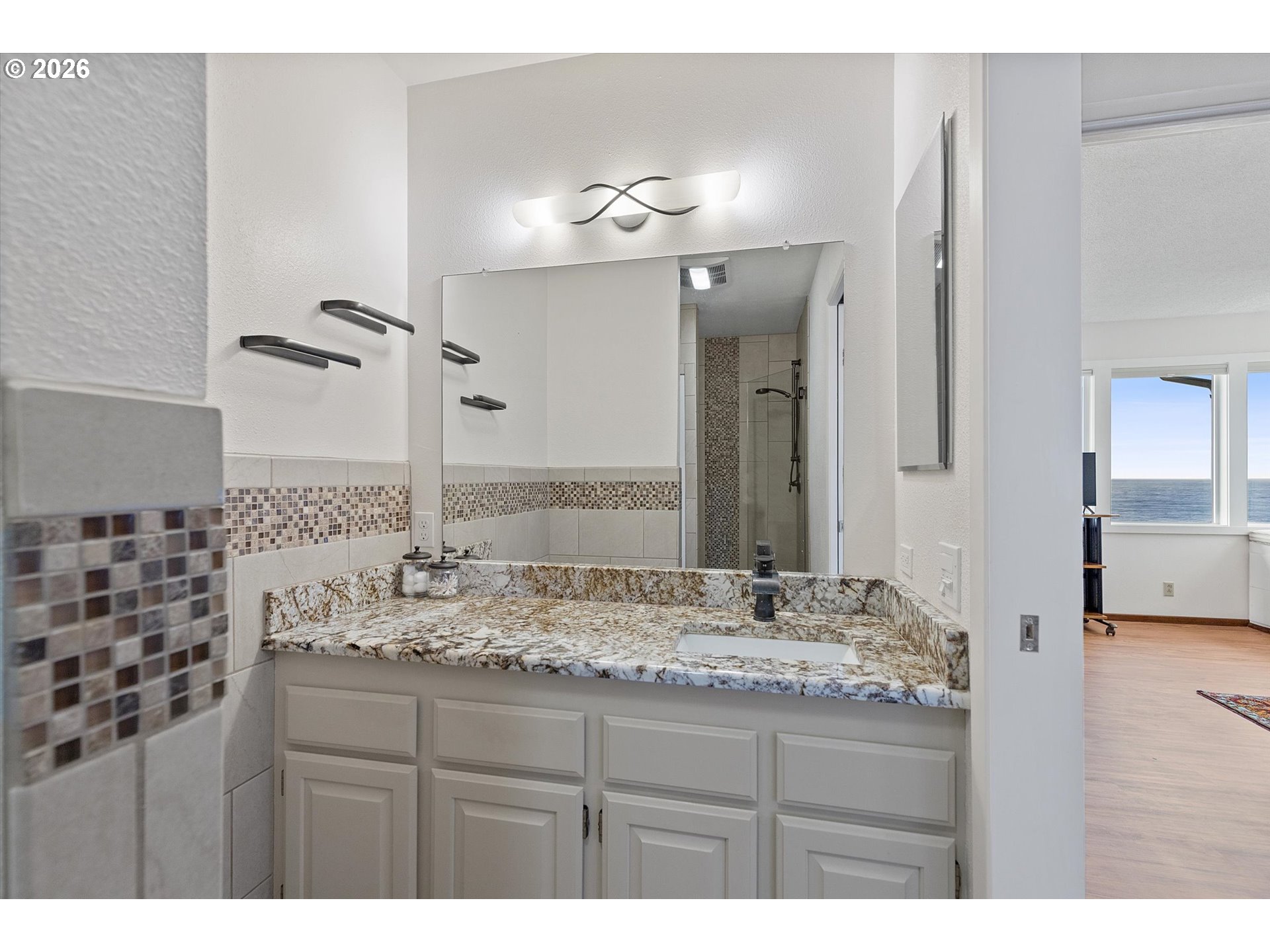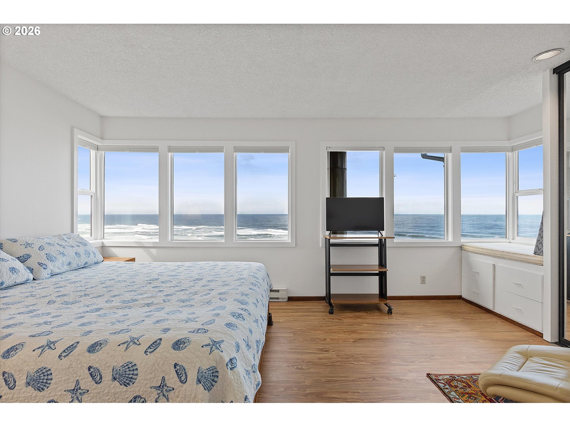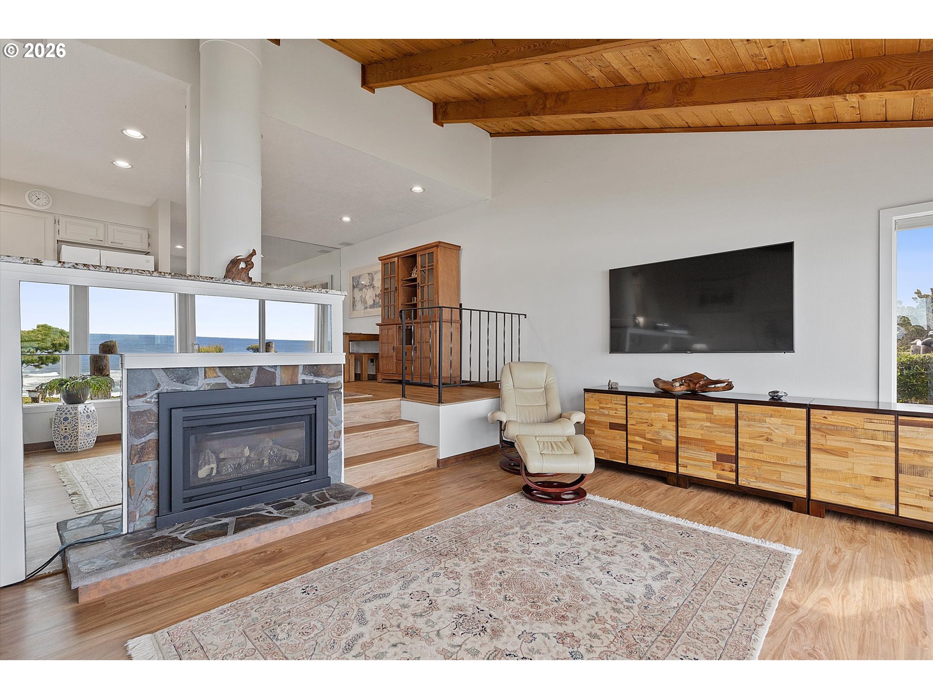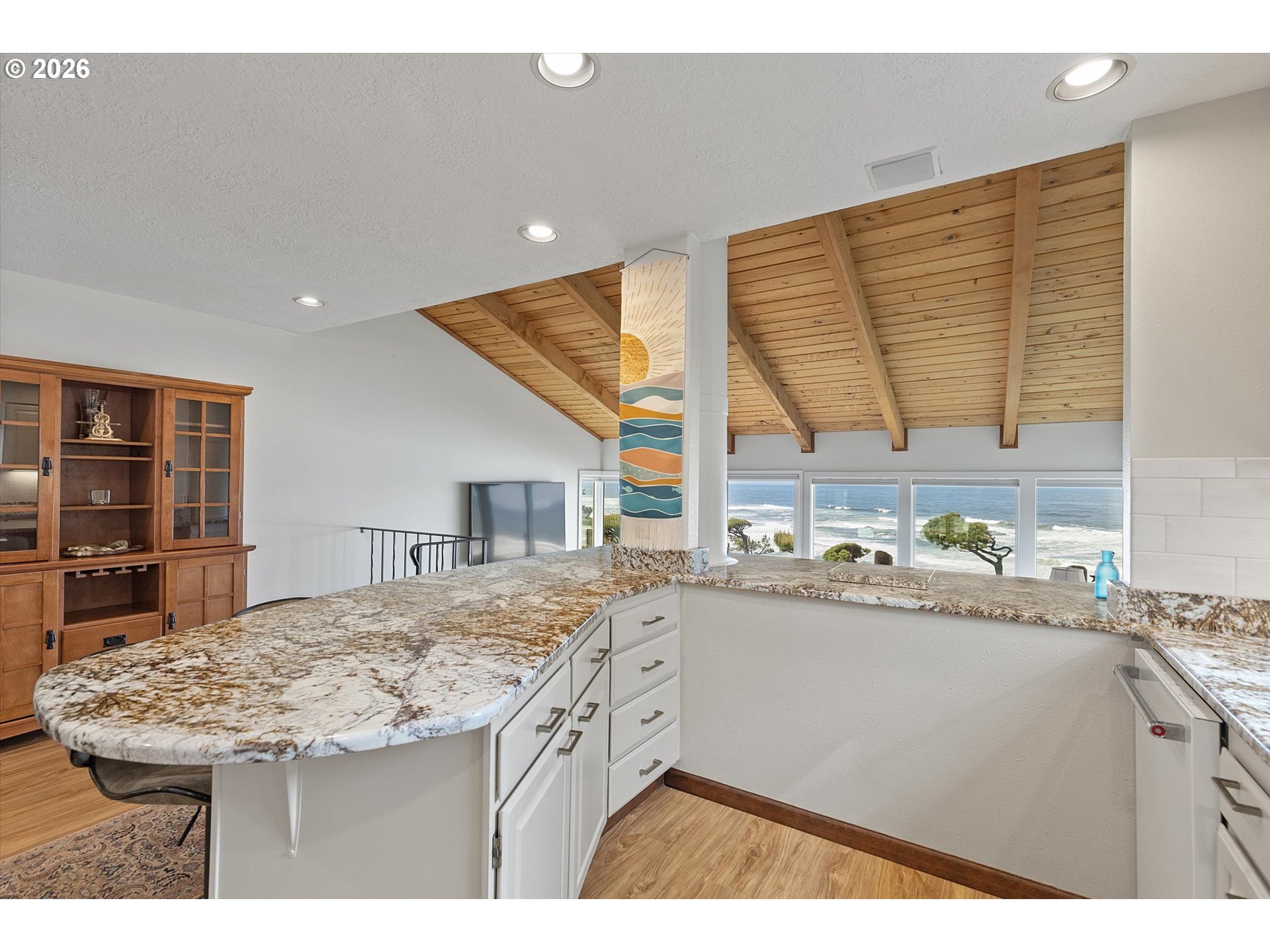 WORLD CLASS PANORAMIC VIEWS of the mighty Pacific Ocean, Taft beach all the way to Boiler Bay State Park from this premier OCEAN FRONT Condo. Experience the endless sunsets and ultimate coastal living this summer. Exceptional 2 bedroom, END UNIT with wall to wall windows in the primary bedroom and living room. Renovated and updated!! Kitchen features gorgeous granite countertops, tile backsplash, under cabinet lighting and gas cooktop. Living room has a slider leading to the deck and a cozy gas fireplace. Upstairs the large guest bedroom has a walk in closet. Primary bedroom has breathtaking views! Upstairs bath has been fully remodeled with a step-in tile shower. LVP Flooring throughout and new carpet on the stairs. Full size Laundry and plenty of storage. Two additional private storage closets and covered carport. This is an unrivaled ownership opportunity of only 10 units, the last sale in the complex was in 2019. New roof was completed in 2022 and exterior painting/caulking in 2025. Low monthly HOA fees of $350/month. Private stairs to the beach, well-maintained grounds and parking. A fantastic second home opportunity or live here full-time! No rentals allowed. Located high above the Tsunami zone but close to all the Taft Beach activities of glass blowing, food trucks, grocery market and coffee shops!