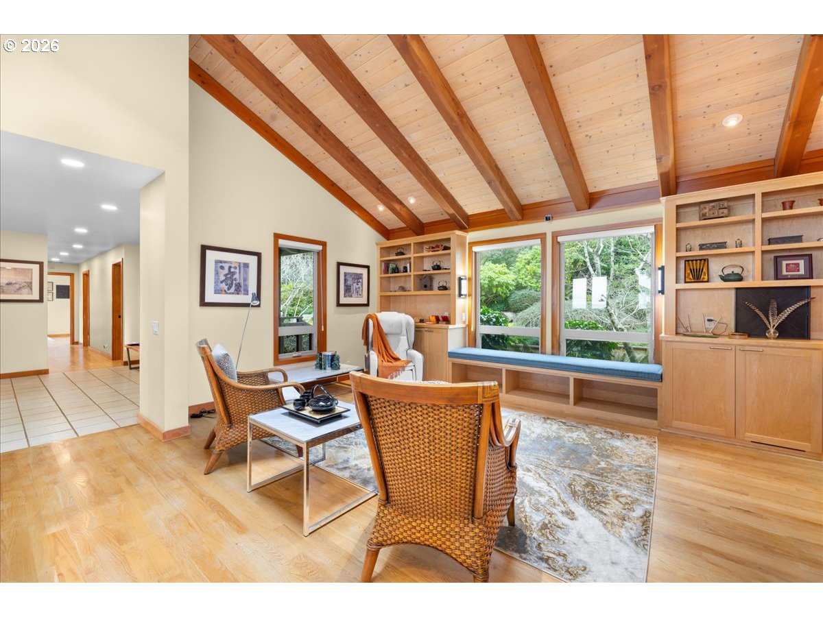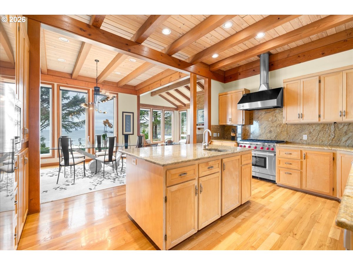 Contemporary Oceanfront Retreat on Agate Beach Experience front-row Pacific Ocean living in this striking contemporary oceanfront home overlooking a quiet stretch of Agate Beach. Expansive newer view windows frame dramatic sunsets and rolling waves, flooding the 2,498 sq ft interior with natural light and ever-changing coastal scenery. Warm natural woodwork, stone accents, and vaulted ceilings create an inviting atmosphere, while the open layout effortlessly draws your eye to the ocean beyond. The updated granite kitchen features high-end appliances and ocean views, making everyday meals feel like a luxury. Step outside to your private deck to dine, relax, or simply listen to the surf. The primary suite is a true sanctuary with sweeping ocean views, a generous walk-in closet, and an expansive en suite bath. A bonus bedroom offers a third sleeping space, while the office/second family room off the kitchen provides flexibility for work, guests, or entertaining. Beautifully landscaped grounds include a fenced area, RV parking, and a private trail leading toward the vegetation line for peaceful ocean observing. Enjoy frequent eagle flyovers, pelican squadrons gliding along the shore, king tide drama, and the occasional early-morning clam diggers below — all in a quiet, peaceful neighborhood with no HOA. A rare opportunity to own a serene oceanfront escape where nature puts on a show every single day.