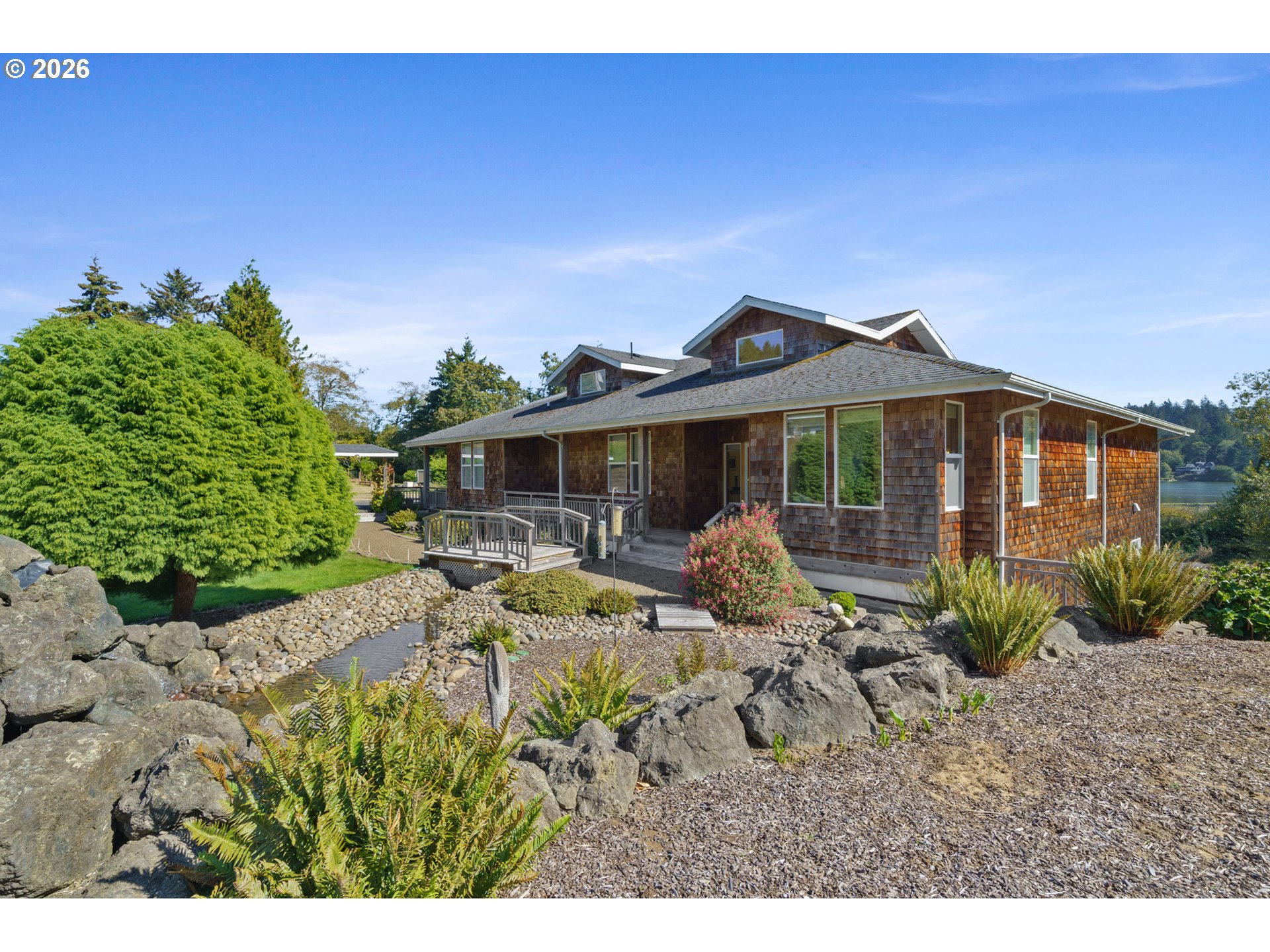Gorgeous Devil's Lake views anchor this thoughtfully designed, custom-built Neotsu home, perfectly capturing Lincoln City's beloved "stay and play" lifestyle. Natural light fills the elegant yet approachable formal living and dining spaces, flowing seamlessly into the spacious kitchen designed for real life. Enjoy leisurely brunches in the breakfast nook overlooking the lake, or busy weekday mornings at the breakfast bar: this is a home built for gathering and memory-making. The primary suite is generously sized and thoughtfully sound-insulated- a forward-thinking touch inspired by the original owner that future generations will appreciate. A walk-in closet and spacious en suite support comfortable daily living, just like the well-placed laundry room with exterior access- ideal for muddy paws, sandy shoes, and garden days. Two additional bedrooms on the main level are large and well-appointed, while the office was intentionally designed for easy conversion to a fourth bedroom if desired. Downstairs, the fun continues: an oversized rumpus room sets the stage for game days, sleepovers, or gymnastics practice. Hobby and flex spaces branch off to include a wine cellar, greenhouse/potting room with plumbed sink and growing tables, a standalone office with exterior entry, plus a double garage and additional workshop. Ample storage is tucked throughout: dry, warm, and fully accessible. ADA accessibility is seamlessly integrated, not an afterthought. From extra-wide hallways and doorways to no-threshold showers and complete main-level living, this home was intentionally designed to support comfort, ease, and long-term livability for all. Set near Devil's Lake, the golf course, and Lincoln City's beaches, this exceptional property offers lake views, flexible living spaces, and a rare blend of thoughtful design and everyday functionality.