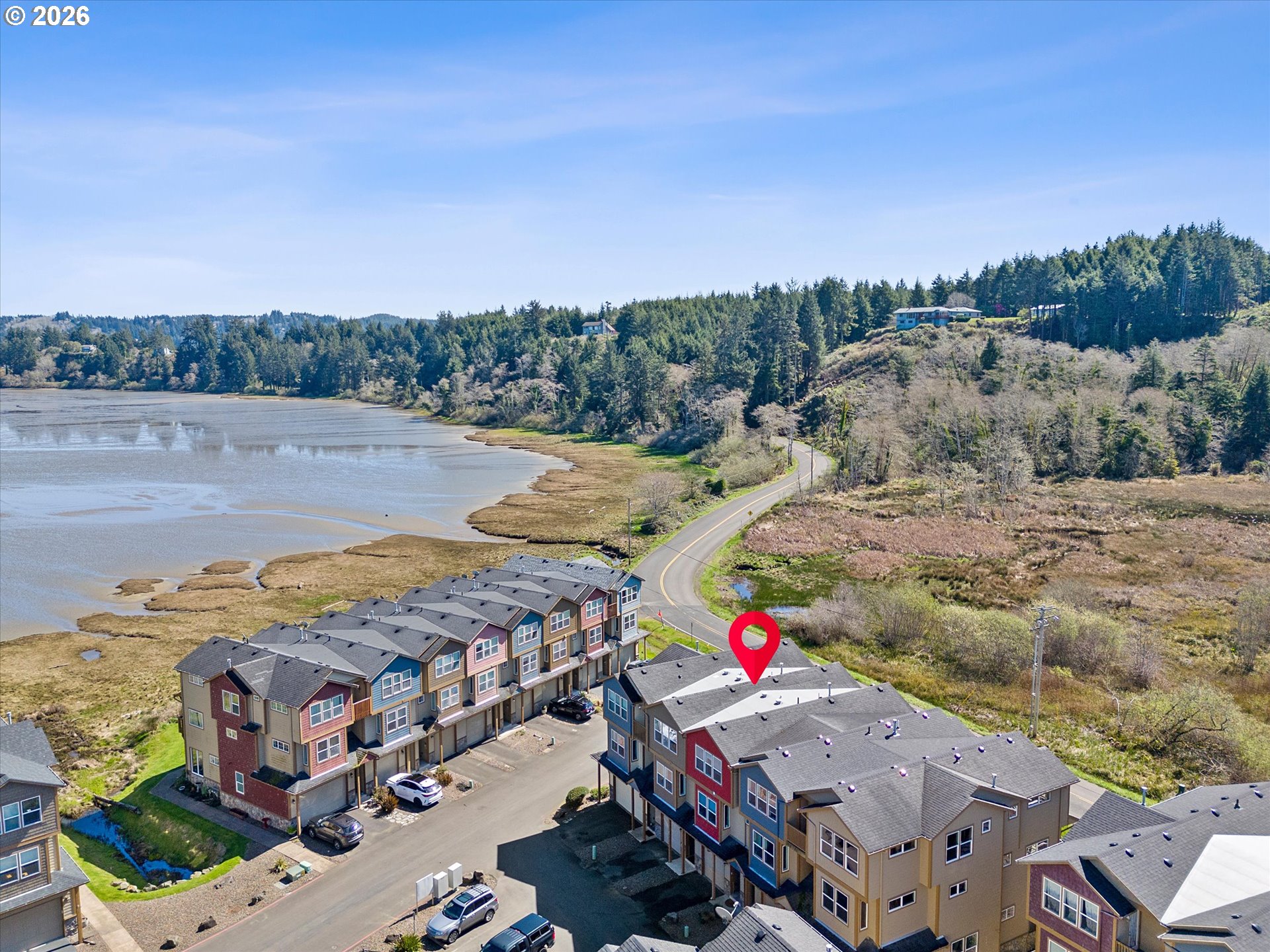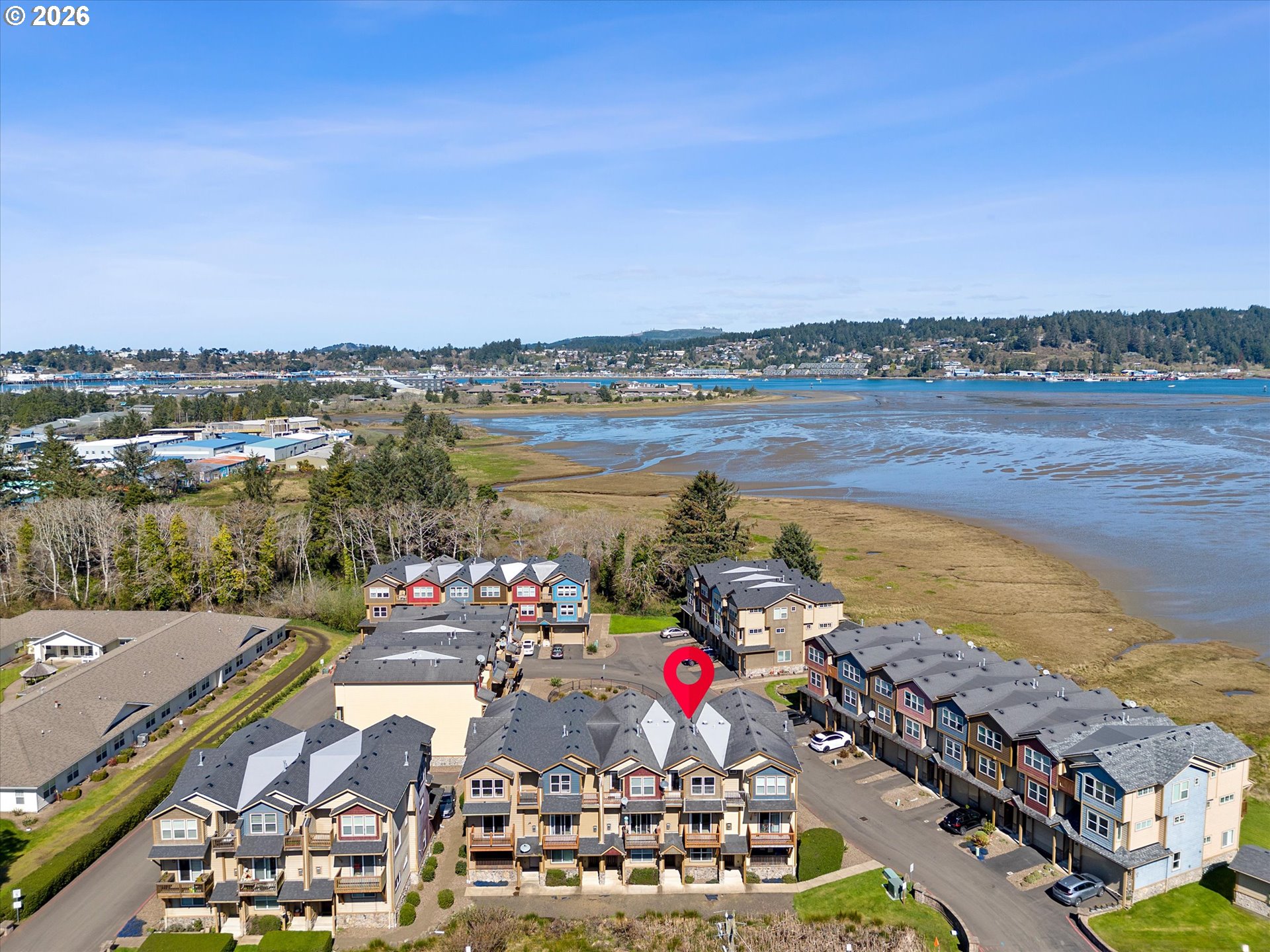 Tap into the tranquility at Neolha Point, a bay-front community! This spacious townhome offers 2 bedrooms PLUS a den/office area that could be a 3rd bedroom - no closet. Delight the chef with the large kitchen with stainless steel appliances and plenty of storage. Cozy gas fireplace in the living room with slider to deck. Upper level has primary bedroom with ensuite bath, guest bedroom, bath, and laundry. Attached one car garage with storage loft. Two decks overlook the bay and estuary, enjoy all the different species of marine birds and wildlife! Great birdwatching! Nearby South Beach State Park offers miles of sandy beach and hiking trails. Conveniently located by the Newport Aquarium and South Beach Marina. Easy access to boating, fishing, crabbing, and clamming can be yours!